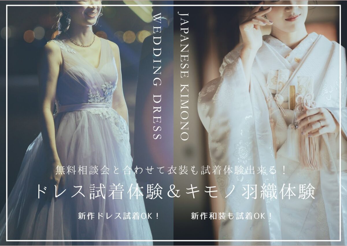 新作ドレスも新作和装も対象の試着体験がついてくるご相談会が開催中です!
