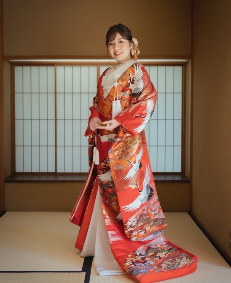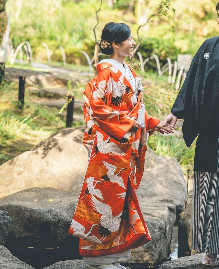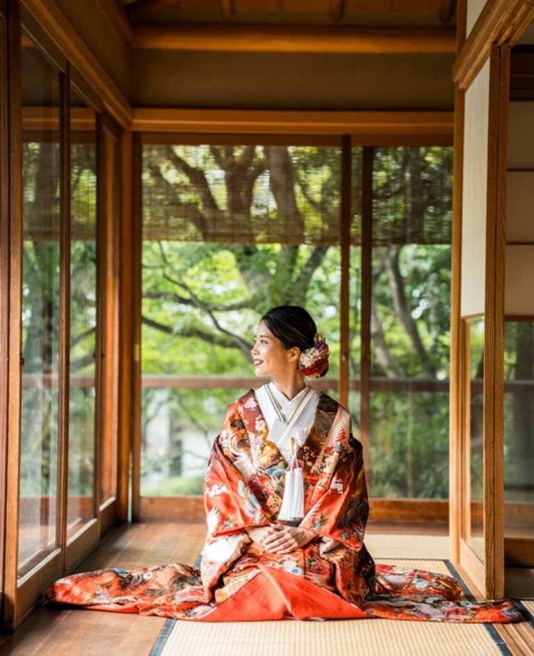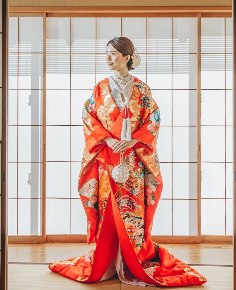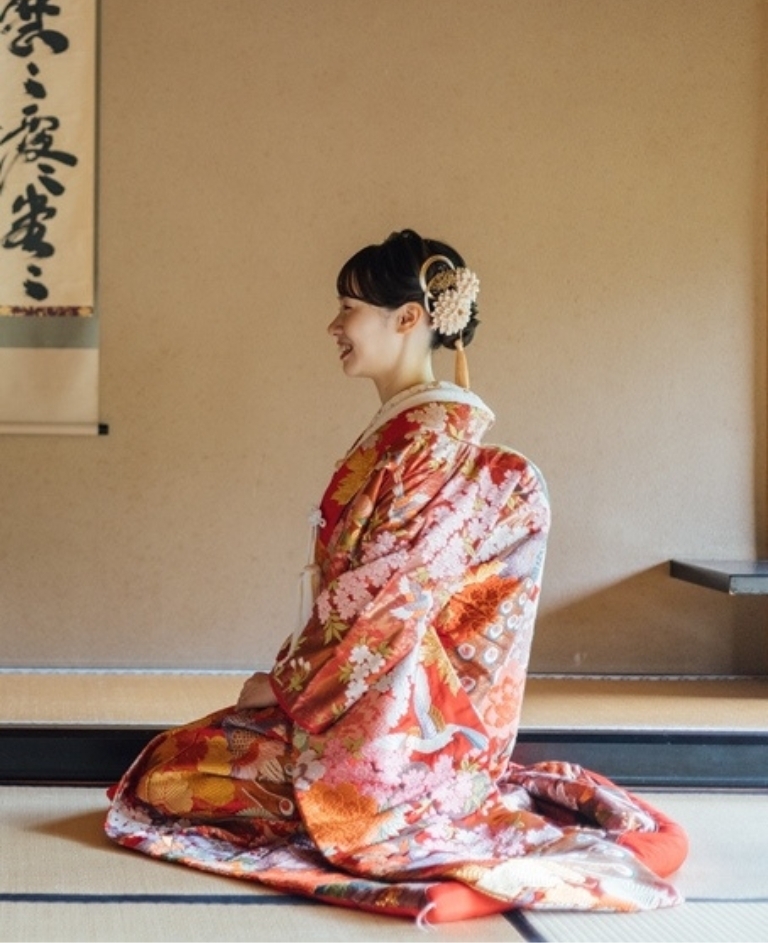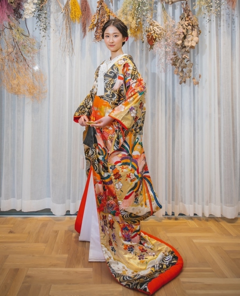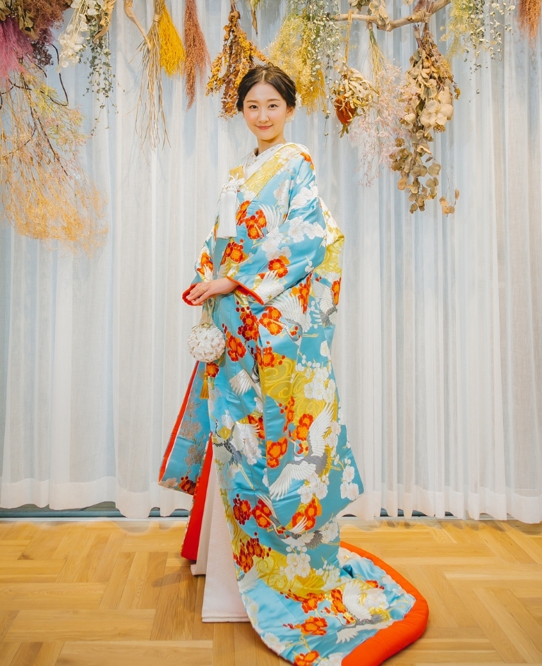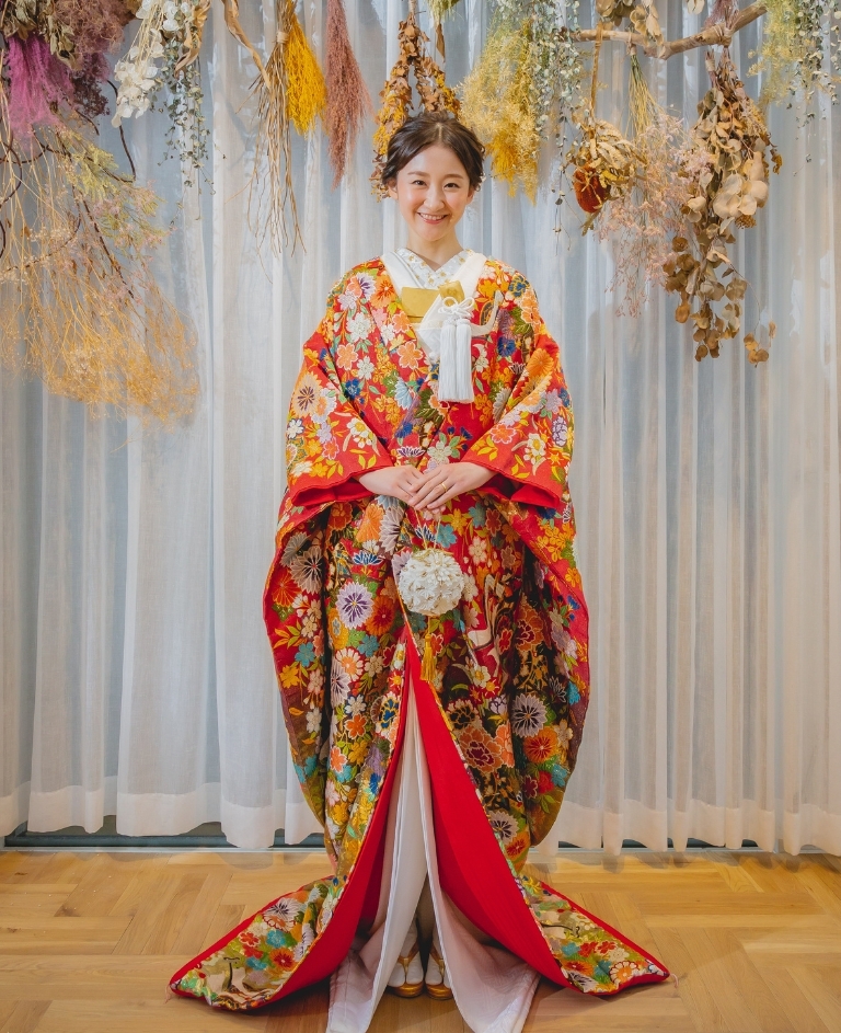 色打掛・白無垢は、個々に合わせてコーディネートを。伝統的な古典衣装から、ナチュラルな淡い色味の打掛まで、多種多様な柄をご用意しています。ヘッドアクセサリーなどの小物を加えることで最新の和装コーディネートが完成します。
