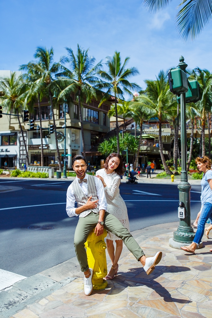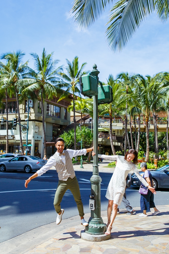 ハワイの街並みを舞台に、ワクワク溢れるデート風のお写真はいかがでしょう??
