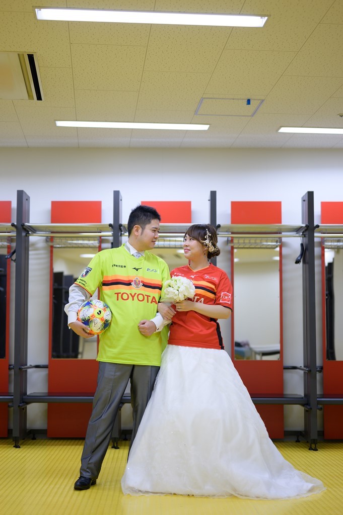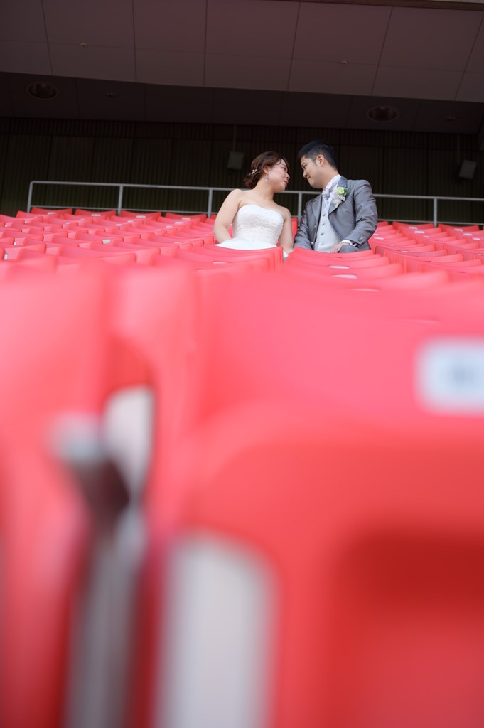 スポーツ観戦が大好きなお2人には、スタジアムでの撮影がぴったりです。