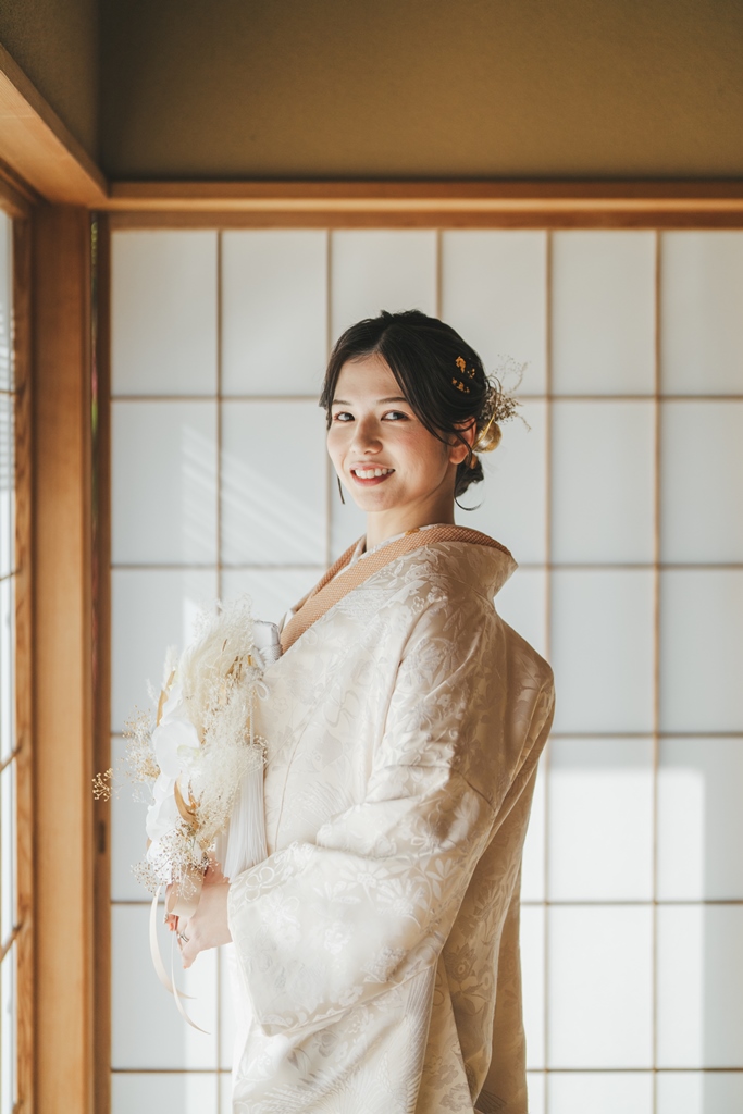 理由としては前撮りのできる場所を探していたところ、和装ができロケーション撮影ができるとのことから当店を選ばせていただいた。