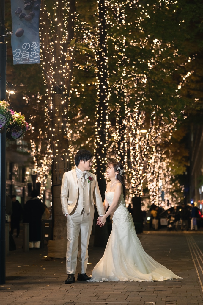 イルミネーションをバックにお撮りいただいたお写真は、お写真いっぱいにキラキラで可愛いお写真になりましたね!