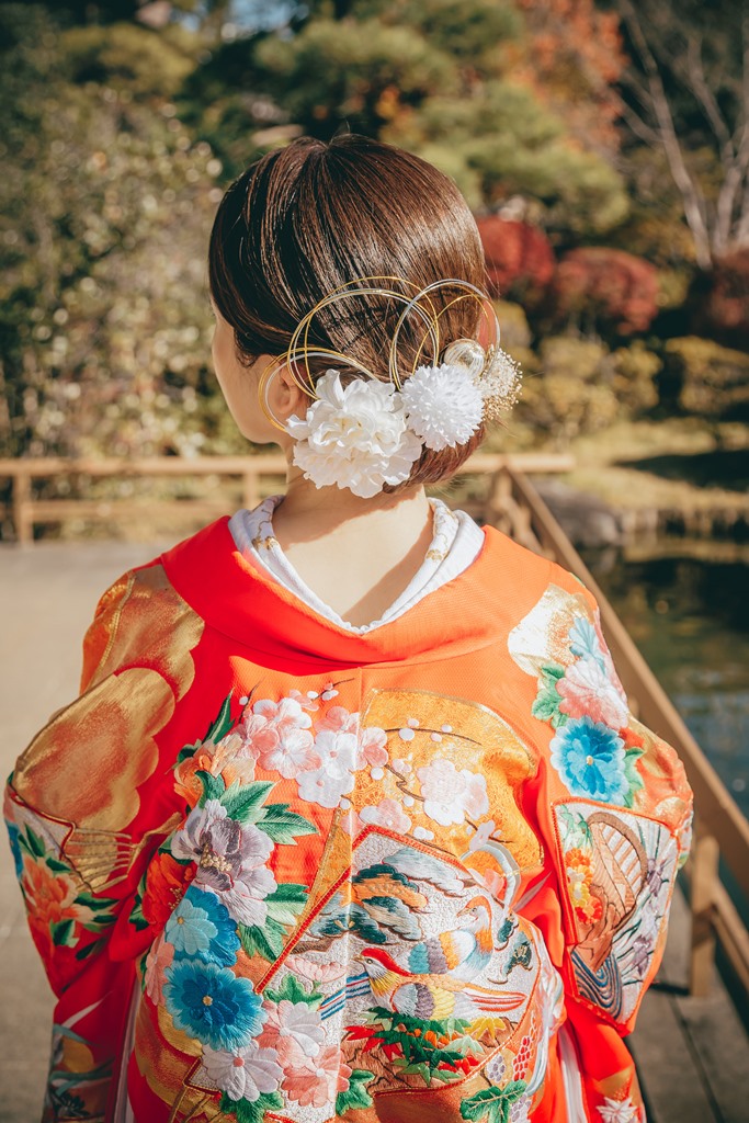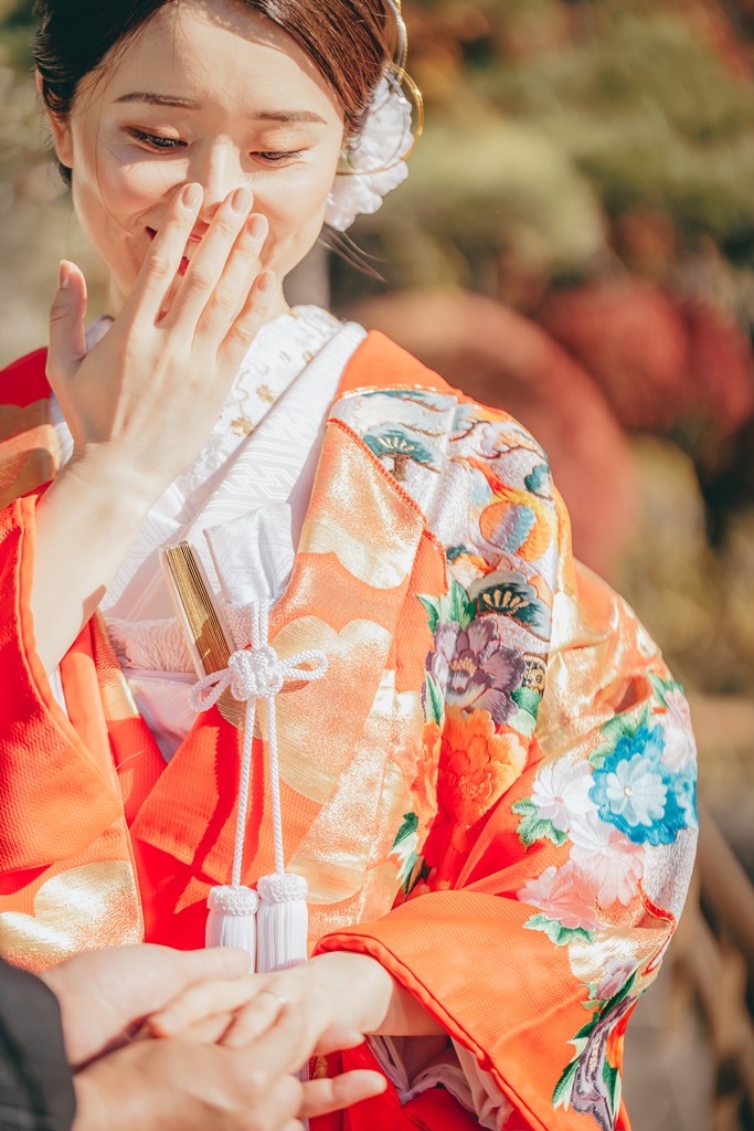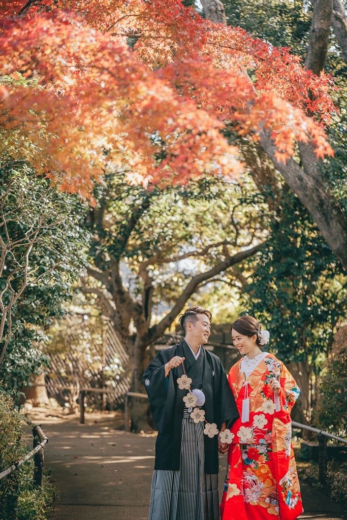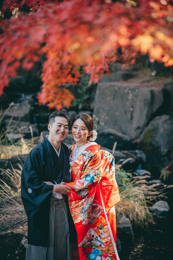平成庭園で紅葉をバックに和装フォト🍁
