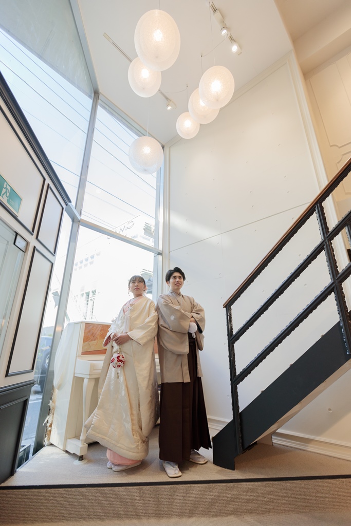 ご新郎様もベージュの紋付をご着用いただき、すごくお似合いですね!