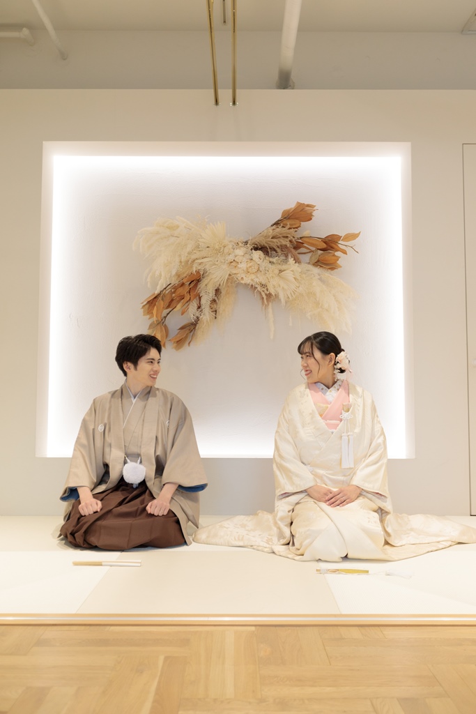 検索していく中で、レンタル類や、洋装・和装の種類、特にドライフラワーの壁が気に入り、こちらで撮影してみたいと思いました。