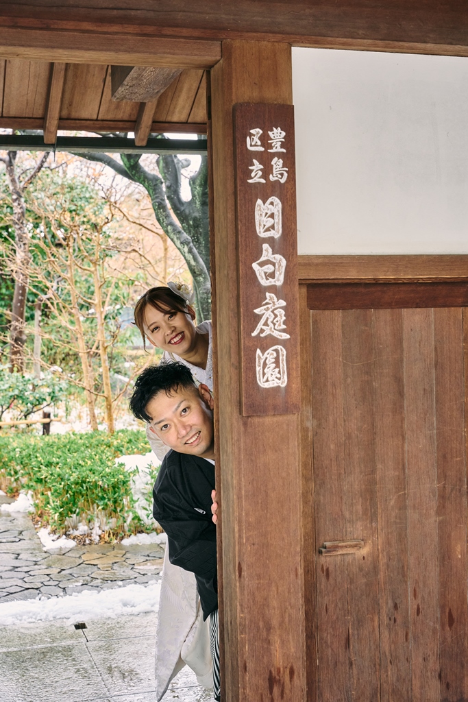雪が積もった目白庭園での撮影になりましたが、雪と撮影できることも珍しく、素敵なお写真になりましたね(^^)/