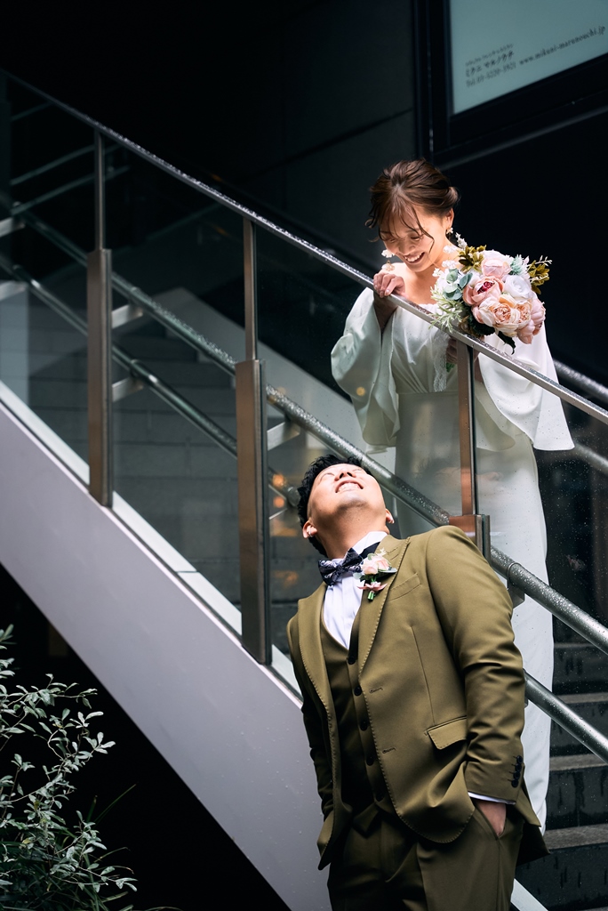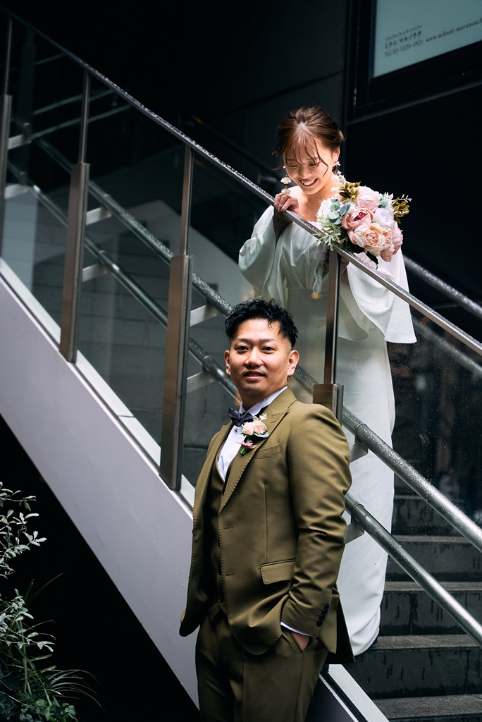 ドレスとカーキのタキシードもとてもお似合いで、素敵です✨