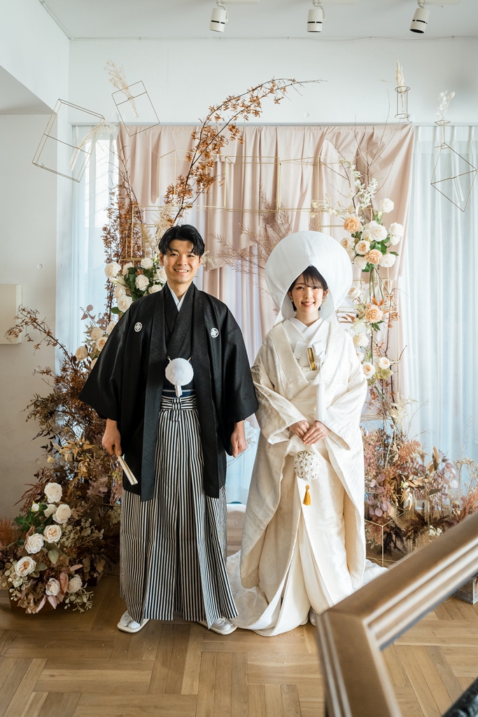 ラウンジスタジオでの和装撮影、本当にお疲れさまでした!!お2人の穏やかで幸せに満ちた笑顔が溢れる、温かなひととき。