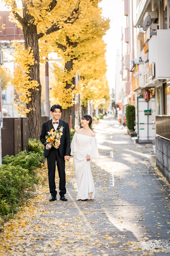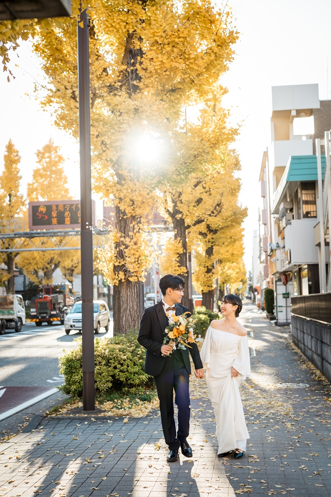 お2人の思い出の場所、西八王子周辺での撮影、改めてお疲れ様でした☆彡秋を感じさせるイチョウ並木を歩く、哀愁溢れるワンシーン♡