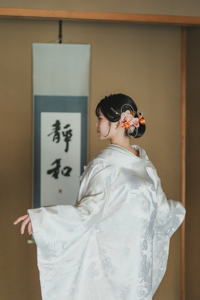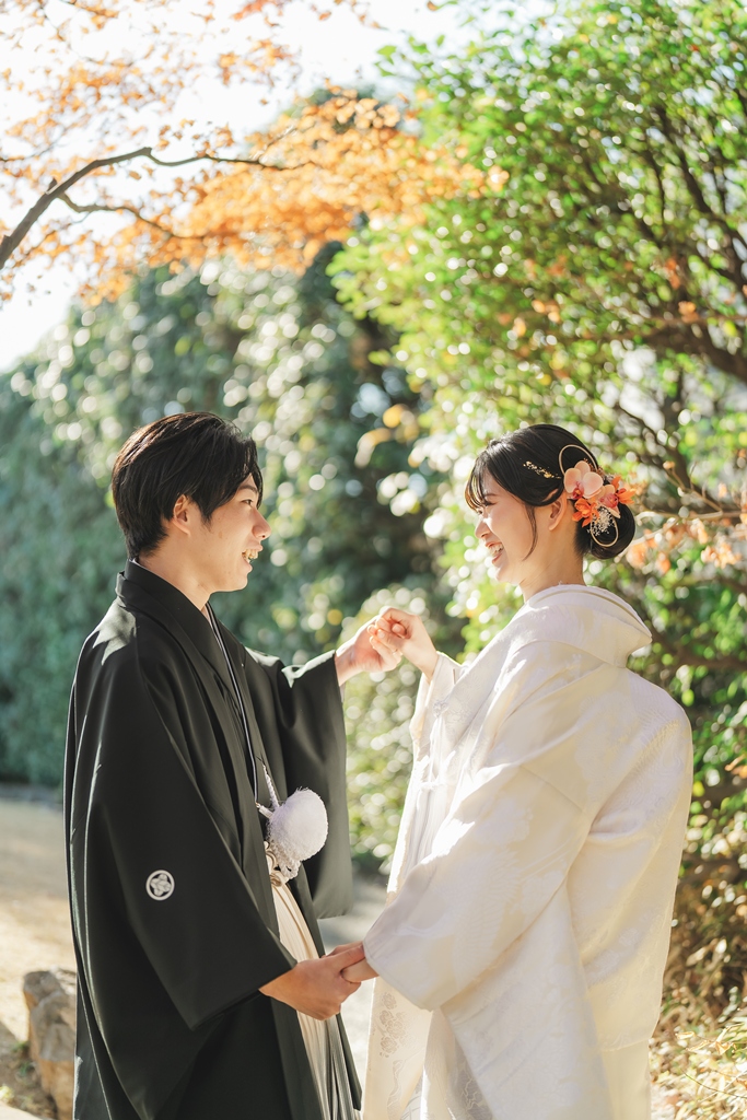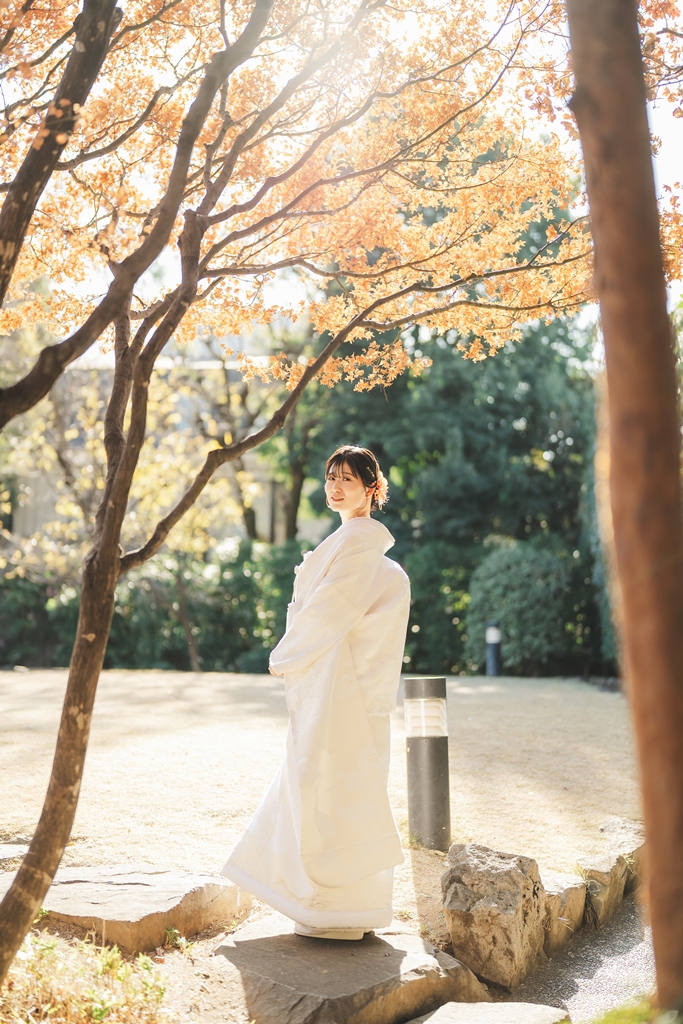 白無垢の目白庭園の相性はもちろんお持込みいただいたヘッドパーツがご新婦様のとてもお似合いで可愛かったです。この度は数多くあるスタジオの中から当店をお選び、誠にありがとうございました。