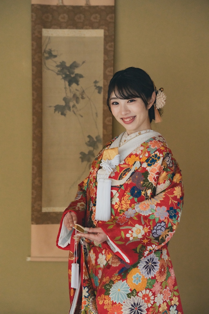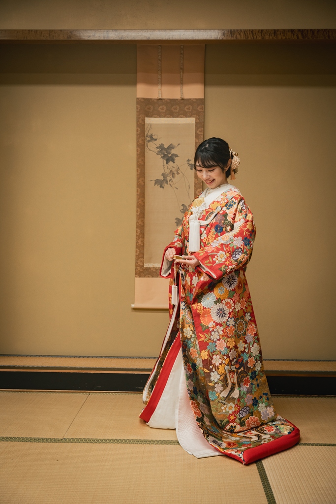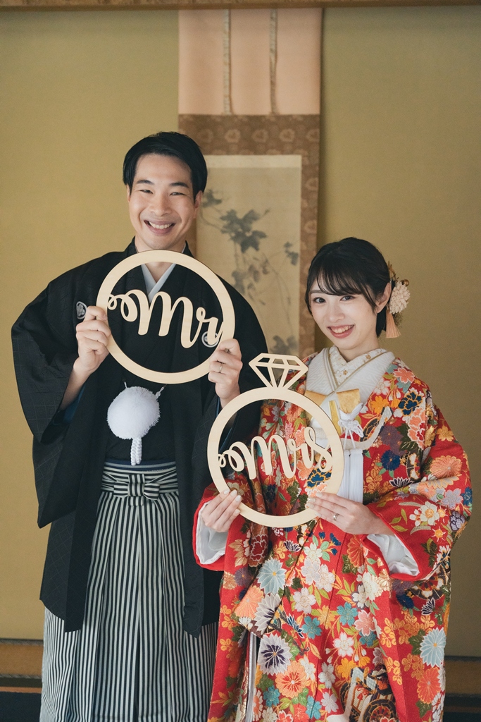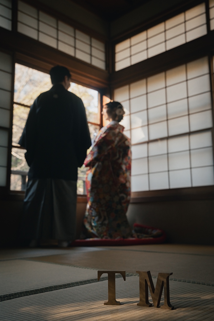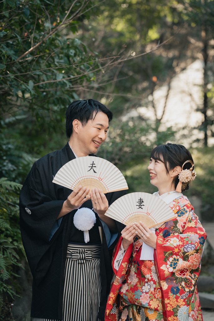 歴史ある日本庭園の静寂な雰囲気の中、新婦様の華やかで上品なお着物姿と、新郎様の凛々しい袴姿が見事に調和していましたね。四季折々の自然に囲まれた小石川後楽園の美しい風景が、お二人の特別な一日をより一層引き立てていました。