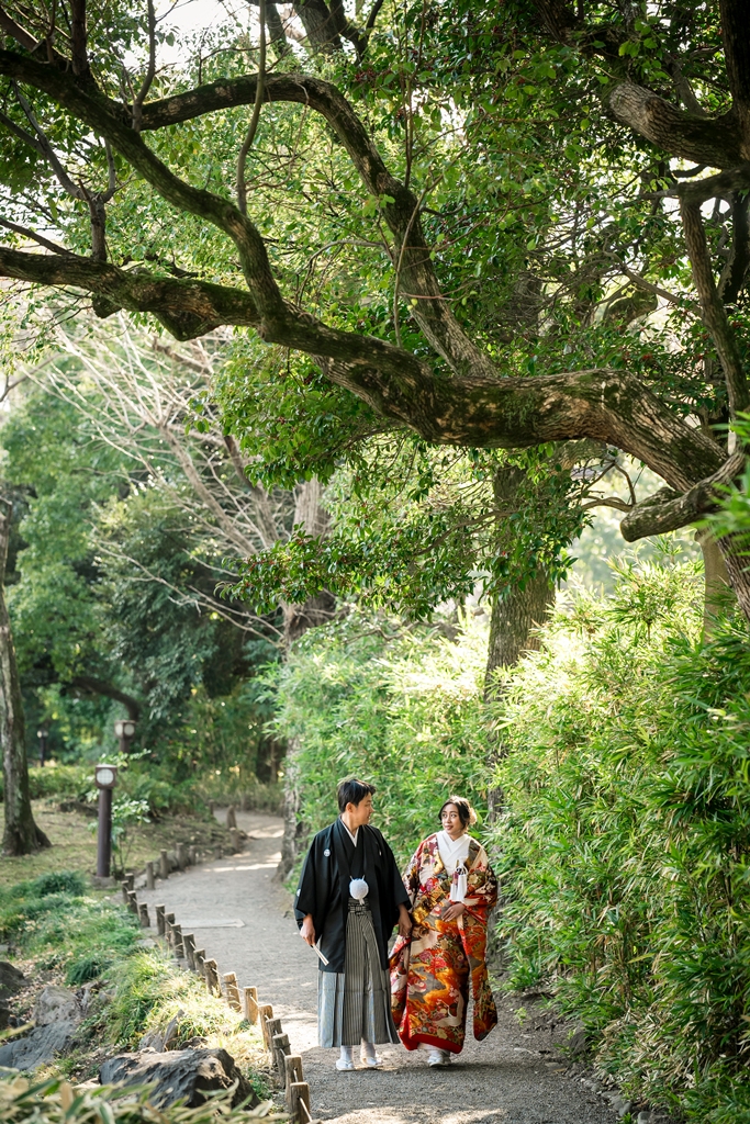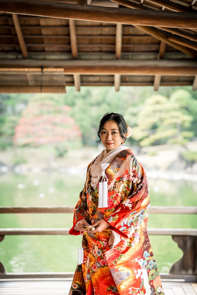 幸せいっぱいの表情が弾ける☆彡風流という言葉が似合う日本庭園での撮影♡