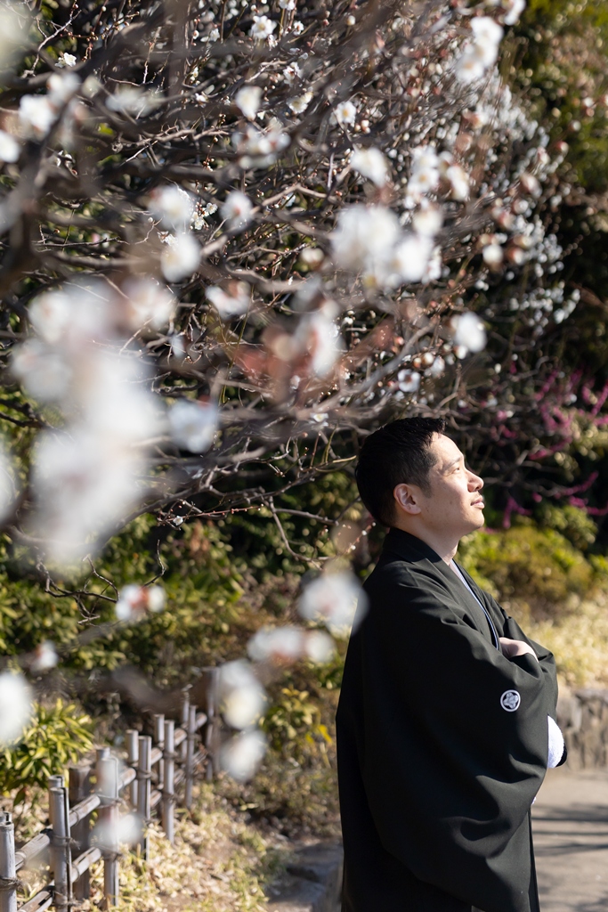 目白庭園でのロケーション撮影だったのですが、カメラマンさんも場所に慣れていて映える撮影スポットや構図をどんどん考えて撮影してくれたので、緊張することなくリラックスして写真を撮っていただけました。同行したヘアメイクさん、着付け師さんも明るい方達だったので終始楽しく和気藹々とした中で撮影が進みました。ヘアメイクさん、着付け師さん、カメラマンさんの3名を秋の海外挙式に同行していただきたいくらい素晴らしいプロフェッショナルな方々でした!