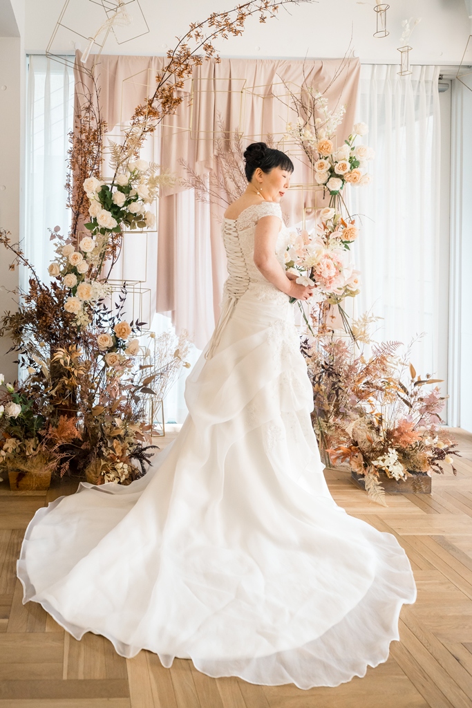 洋装は、和装に比べて身軽でしたが、ドレスは長いので、それはそれで動きが大変ではありました。ですが、洋装のときも、メイクご担当の方が、とてもテキパキかつ、こまめに気遣って下さり、本当に助かりました。