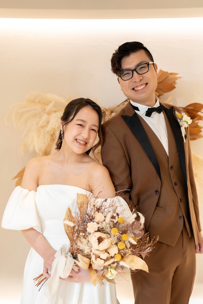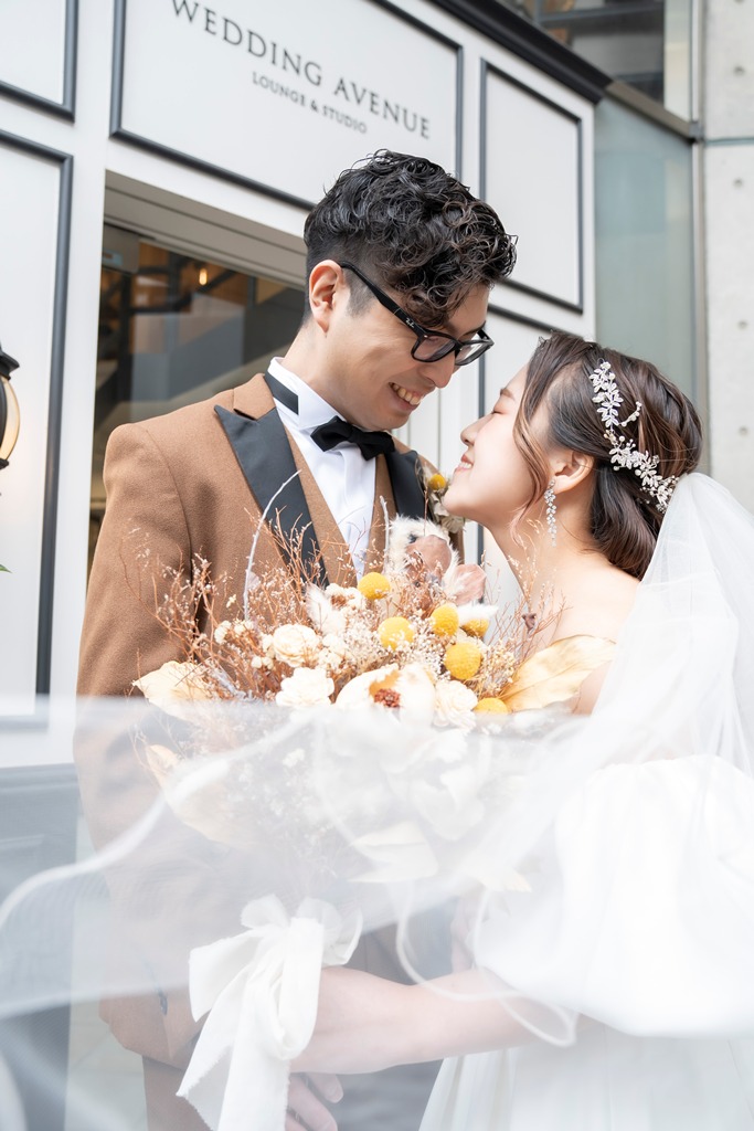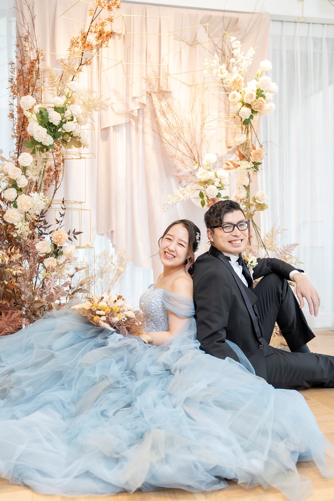 スタジオの扉を開けた瞬間から、おふたりの輝きがあふれていて、撮影が始まる前から私たちスタッフもワクワクが止まりませんでした!ドレス姿もタキシード姿も本当に素敵で、ひとつひとつのポージングやふとした笑顔に、おふたりだけの物語が感じられて、シャッターを切るたびに感動の連続でした。