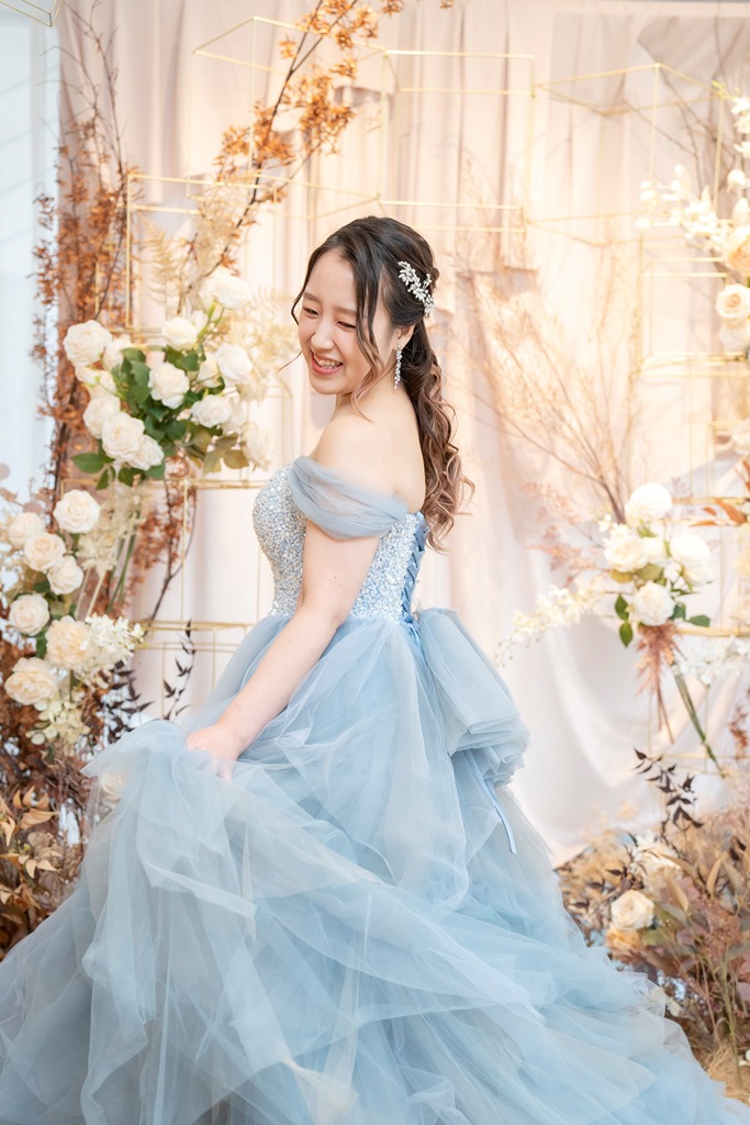 洋装でやりました。ファーストミートは緊張したけど、音楽をかけてくれて雰囲気が出たので盛り上がりました。動画もお願いしたら良かったなと思いました。写真もスピーディなのにこちらの意図をくんでくれてよかったし、あまりこだわりが無いほうだったけど撮影の方の言うことを聞いていたらいい写真になったのも良かったです。ドレスも可愛くて満足でした。