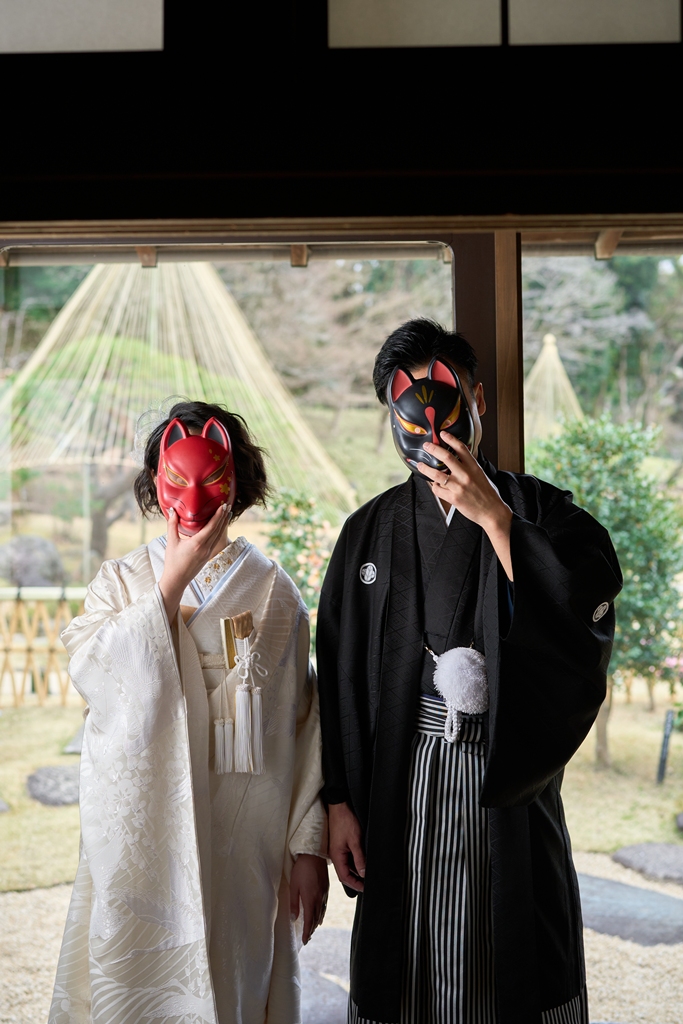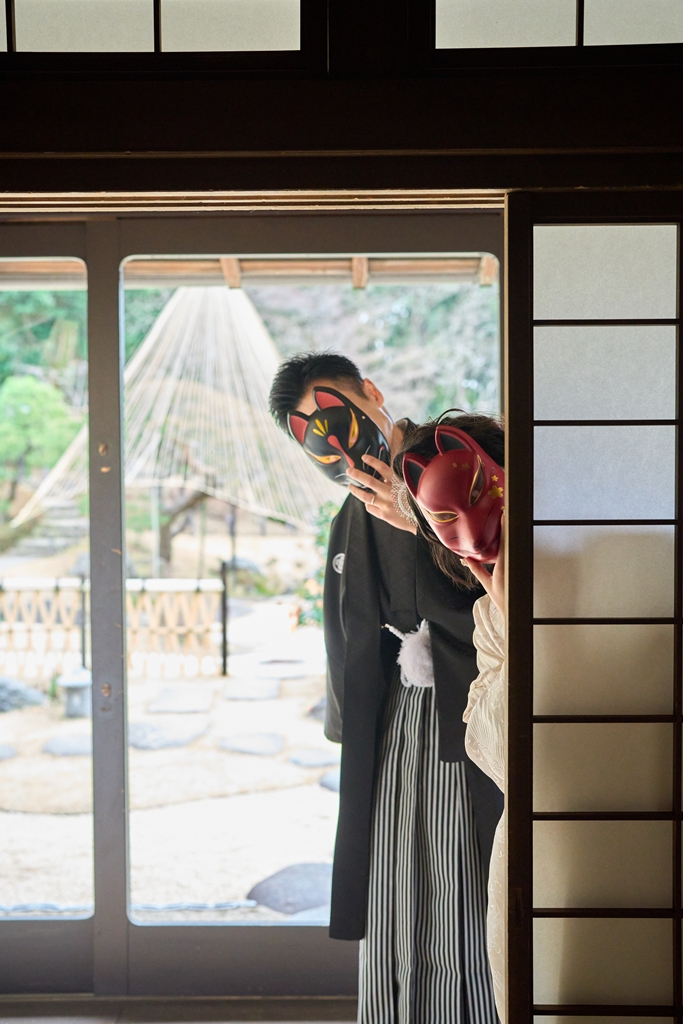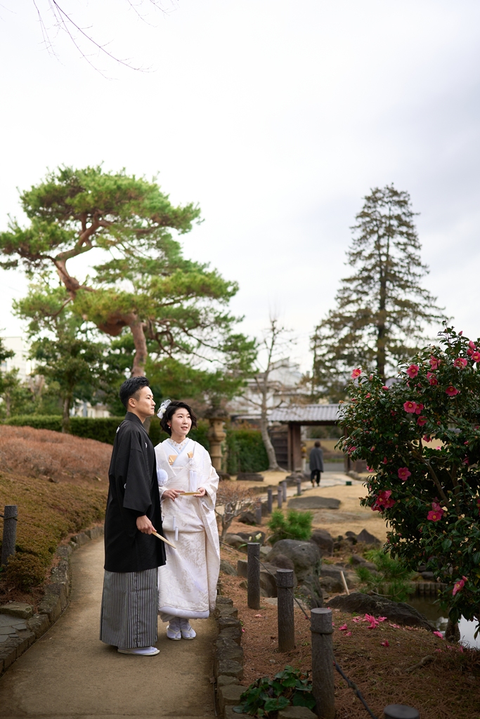 そして肥後細川庭園での撮影、本当にお疲れさまでした☆彡四季折々の自然に包まれた静寂の庭園で、和装のおふたりが佇む姿は本当に美しく、印象的なシーンに!