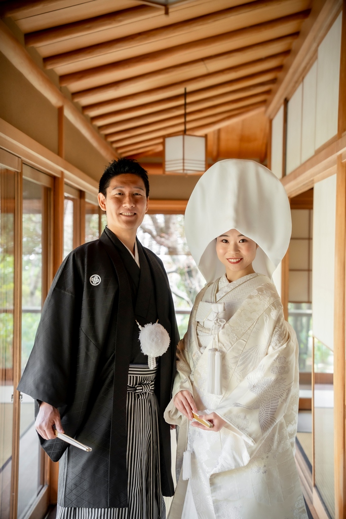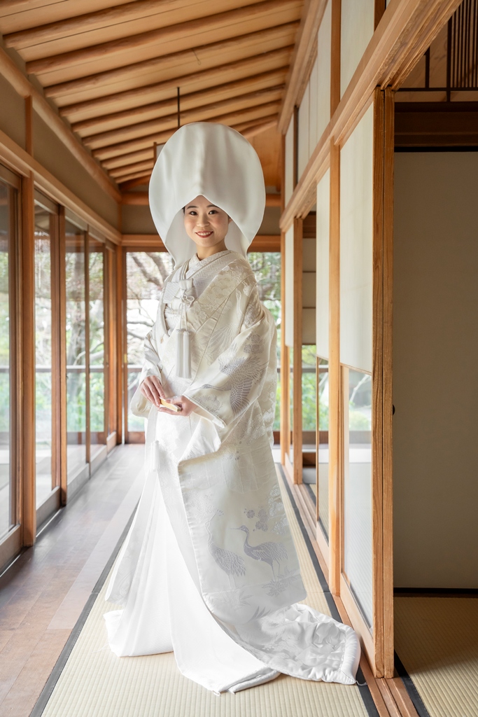 雅な衣装に身を包んだおふたりが、庭園の四季折々の自然と溶け合い、一歩一歩進まれるたびに、その場の空気がまるで祝福しているかのようでした。