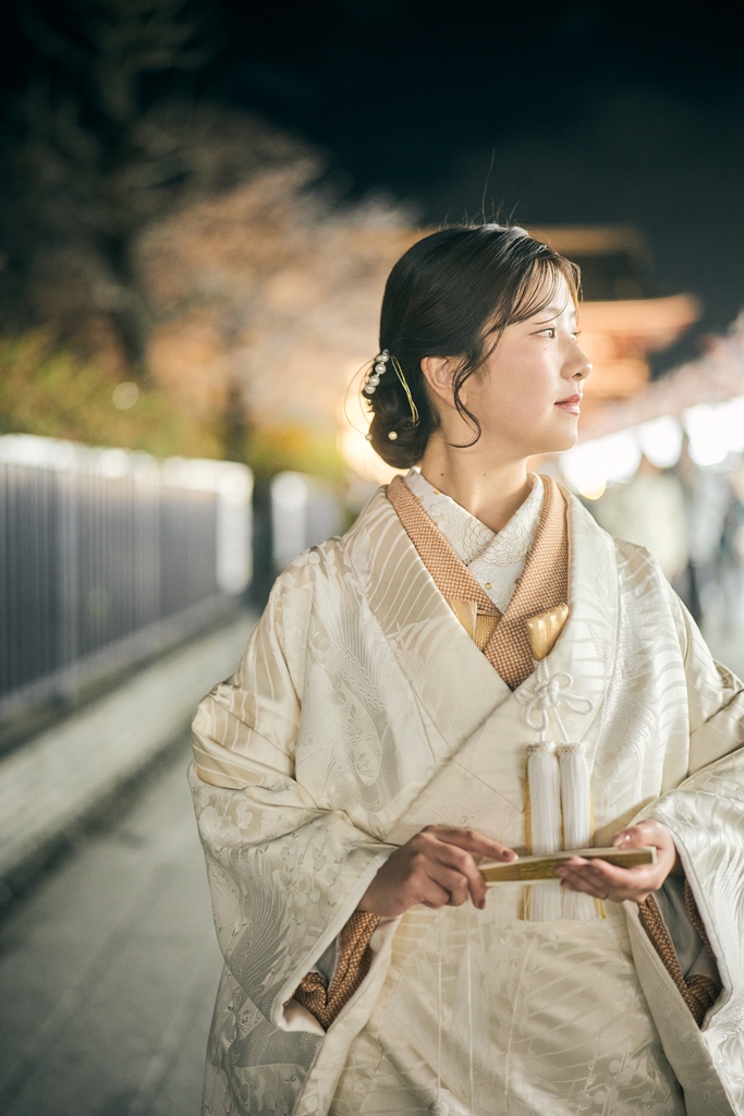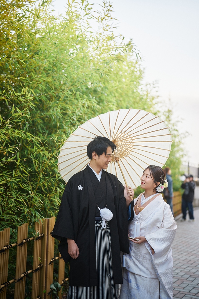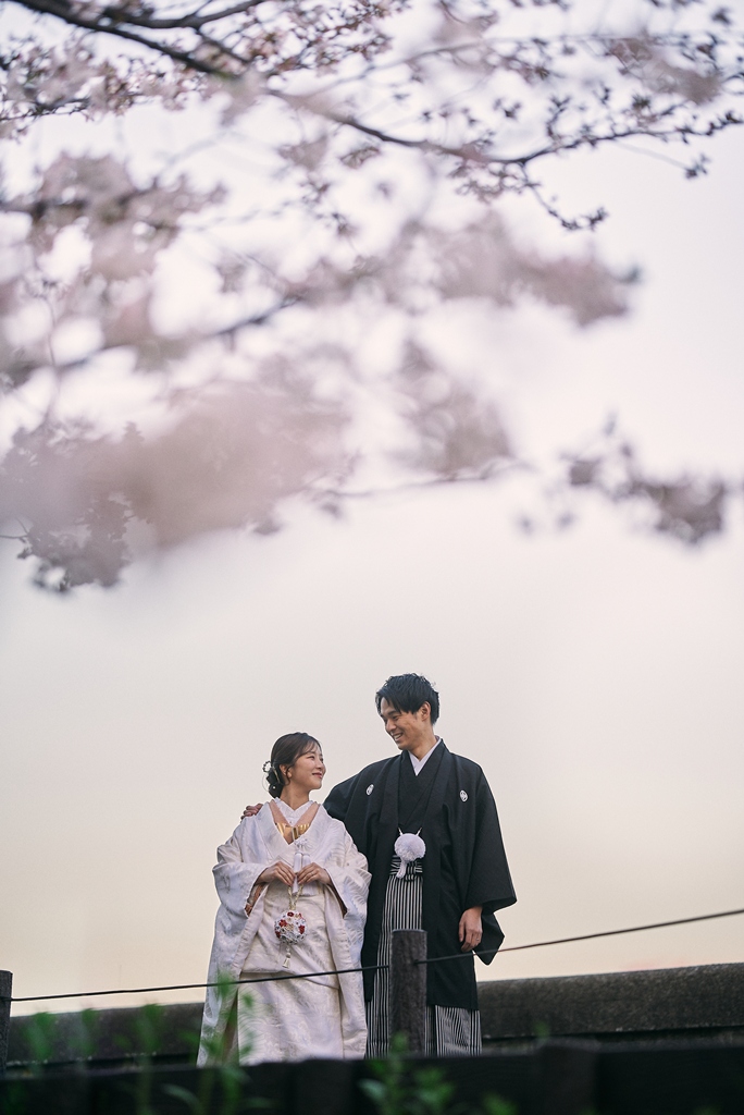 天候にも恵まれ、自然光に包まれたおふたりの表情はとても柔らかく、風になびく着物の裾までもが物語を語っているようでした。シャッターを切るたびに「今、この瞬間を永遠に残したい」と思わせてくれる、かけがえのないワンシーンの連続でした。