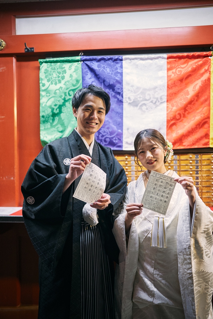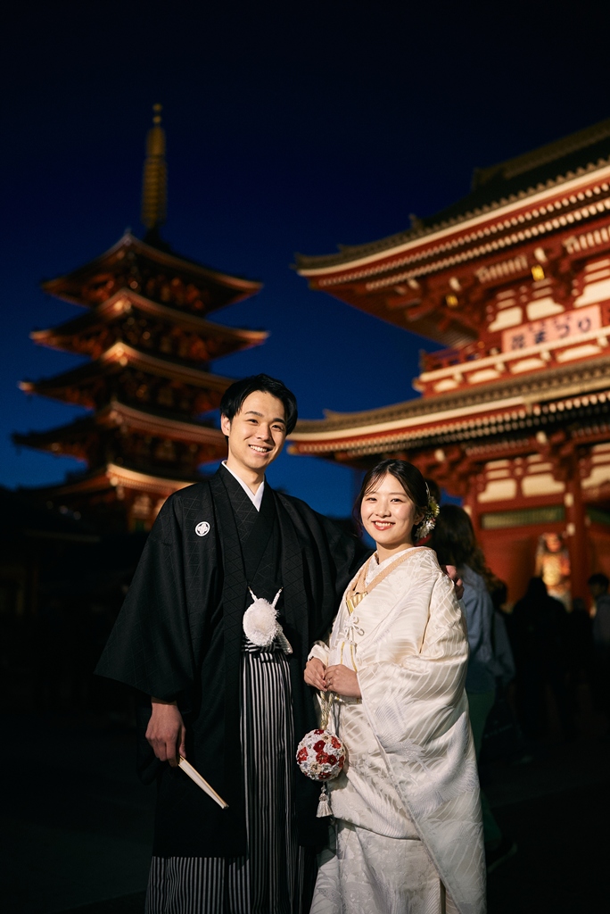 和装には、日本の伝統とともに「家族をつなぐ」「未来を祝う」といった深い意味が込められています。そんな装いを纏いながら、浅草という歴史ある場所でおふたりが歩まれたこの一日は、まさに人生の節目にふさわしい尊い時間でした。