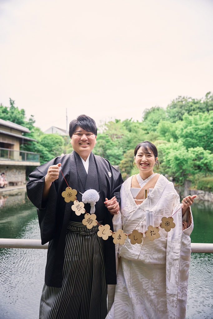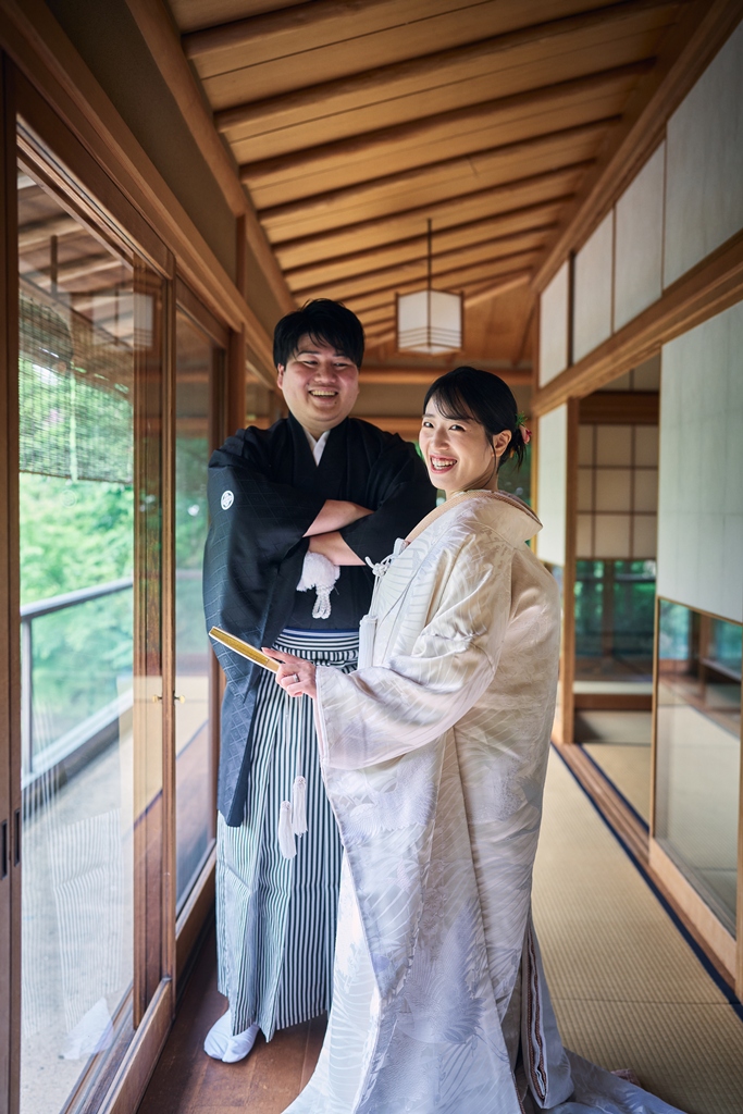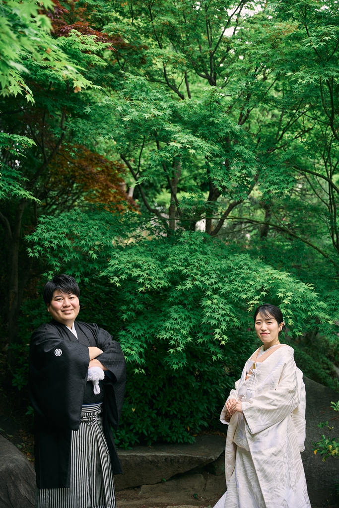 気温25度を超えるような日で、暑さが心配でしたが、日本庭園は風通しも良く木陰もたくさんあったので撮影は快適に行えました。和装での撮影は、普段はなかなか機会がない体験なので、結婚を機にチャレンジできてとても良かったです。