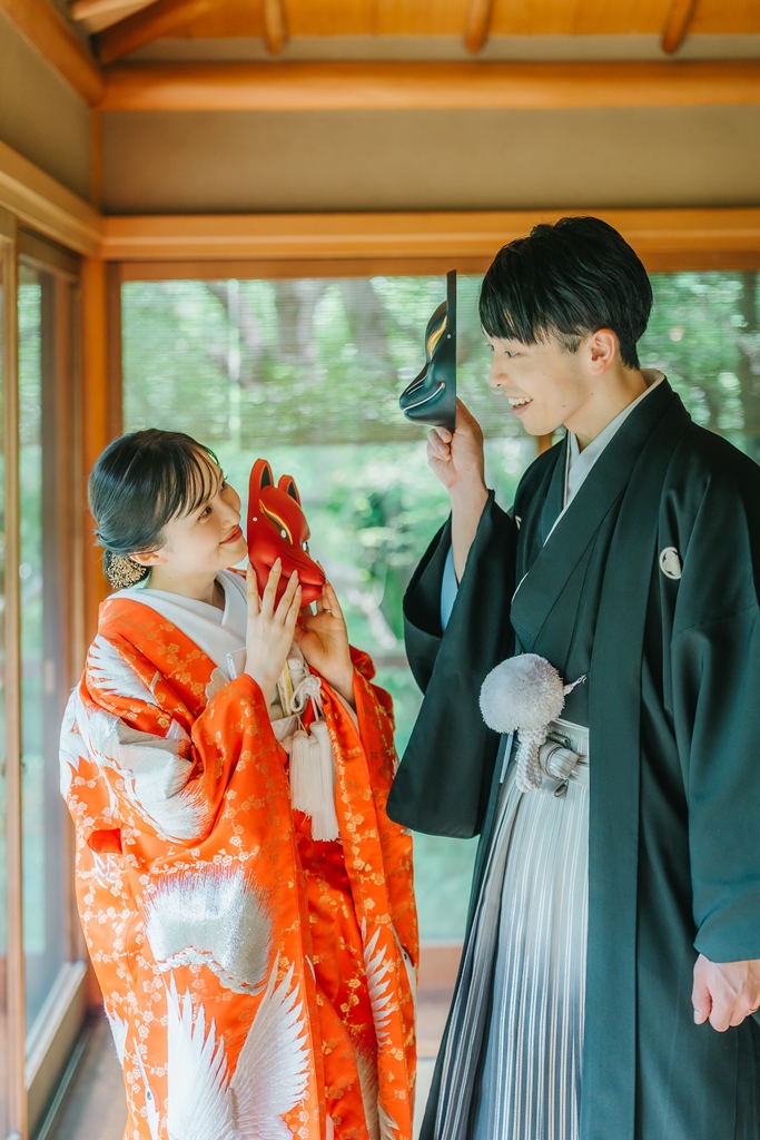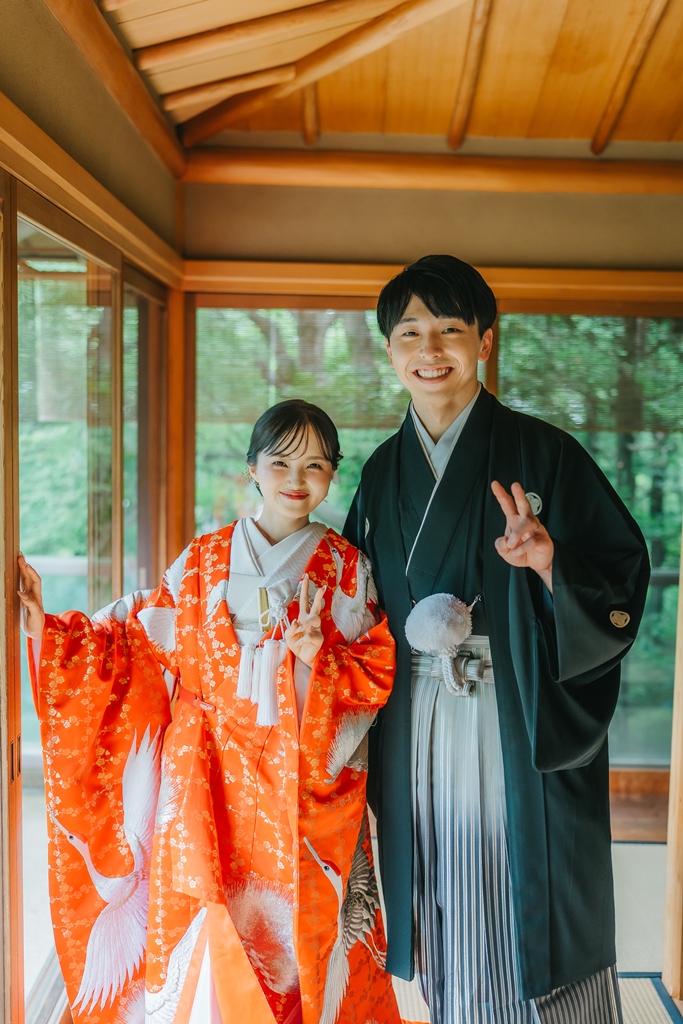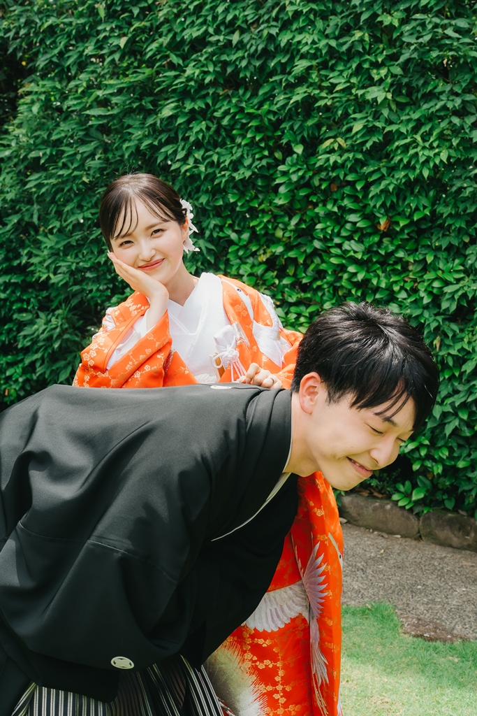 同じおふたりでも、洋装と和装、チャペルと庭園というまったく異なる世界観で撮影することで、結婚という特別な節目をより多面的に、豊かに表現することができたのではないでしょうか。それぞれのロケーションと衣装が生み出す雰囲気の違いが、おふたりの魅力を最大限に引き出し、きっとこれからも何度も見返したくなる思い出として心に刻まれることと思います。