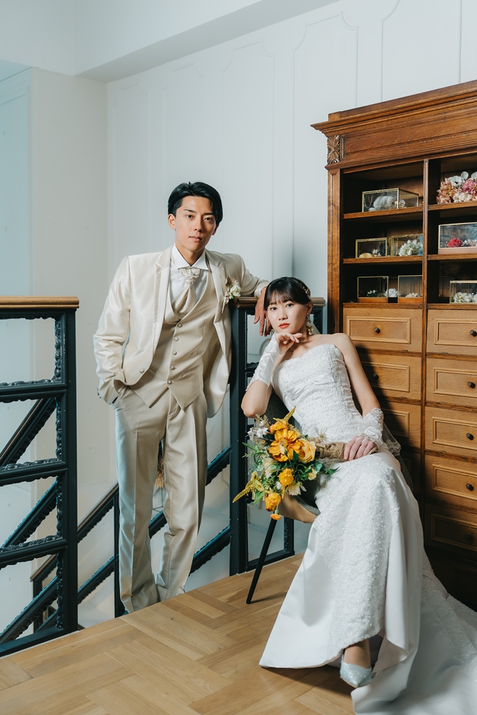 都会的な洗練に包まれた表参道のスタジオで、おふたりの纏う洋装の輝きと笑顔が重なり合い、その瞬間はどの場面も本当に絵画のようでした。お互いを見つめる優しいまなざしや自然にこぼれる笑顔からは、これから歩んでいく人生への確かな決意と、揺るぎない絆が伝わってきました。