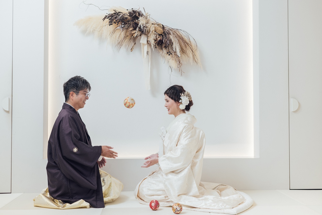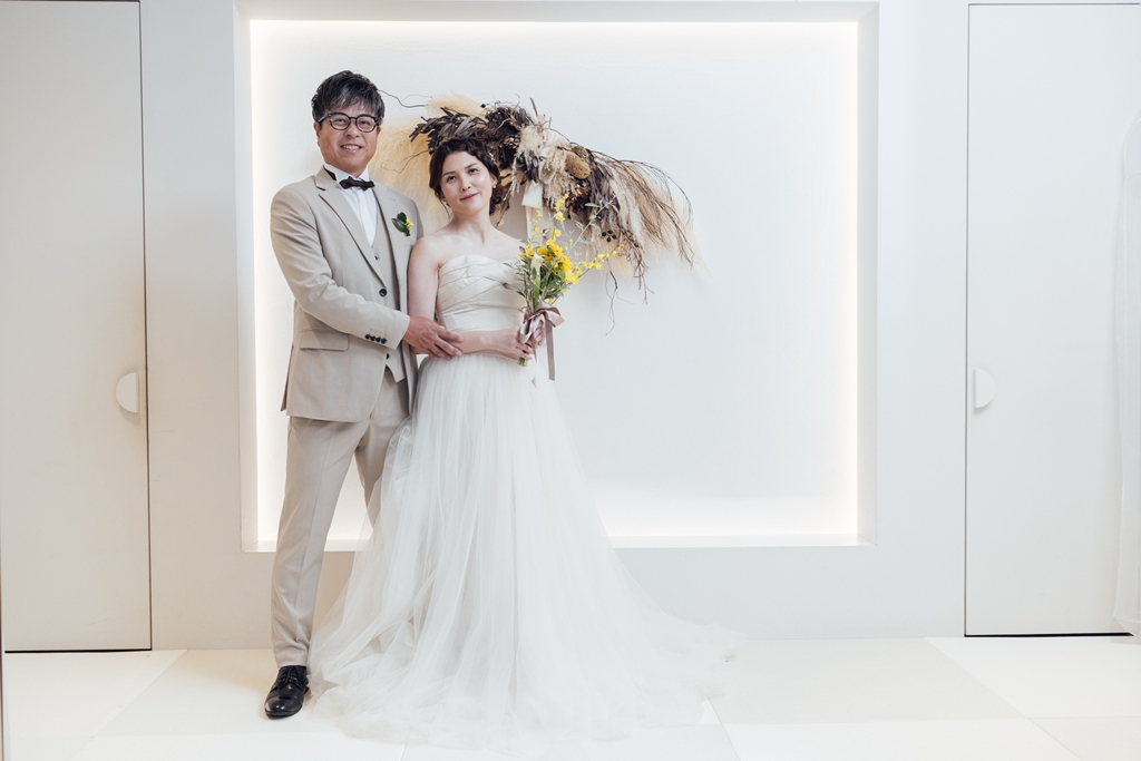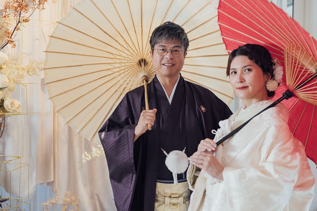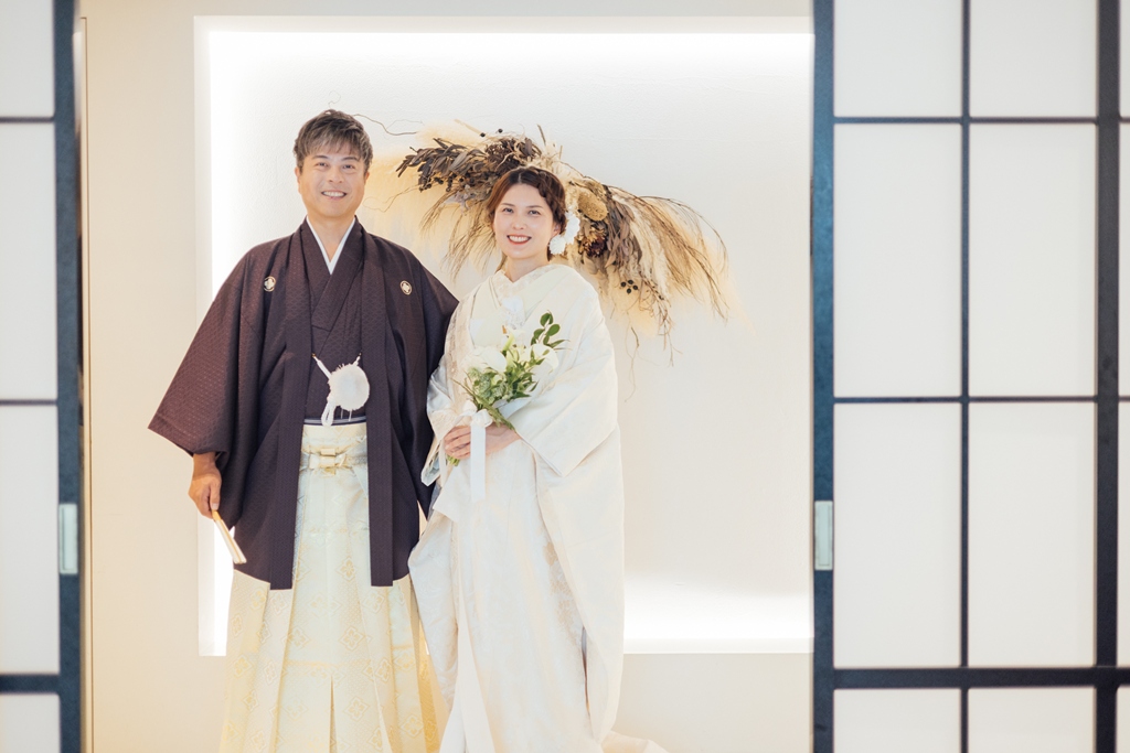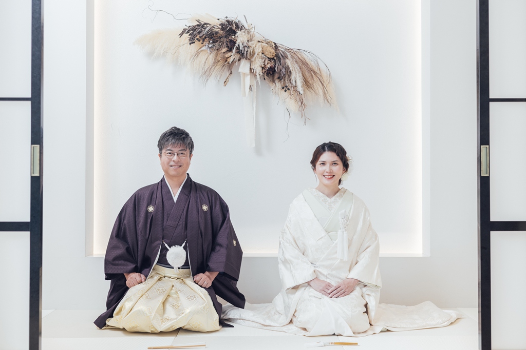 東京都のスタジオで、洋装と和装の両方をお選びいただき、前撮りという大切な時間を共に過ごさせていただき、本当にありがとうございました。お二人が纏う洋装の洗練された美しさと、和装の格式ある優雅さ——その両方を一日で体験できることは、まさに特別なひとときです。