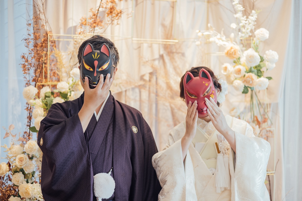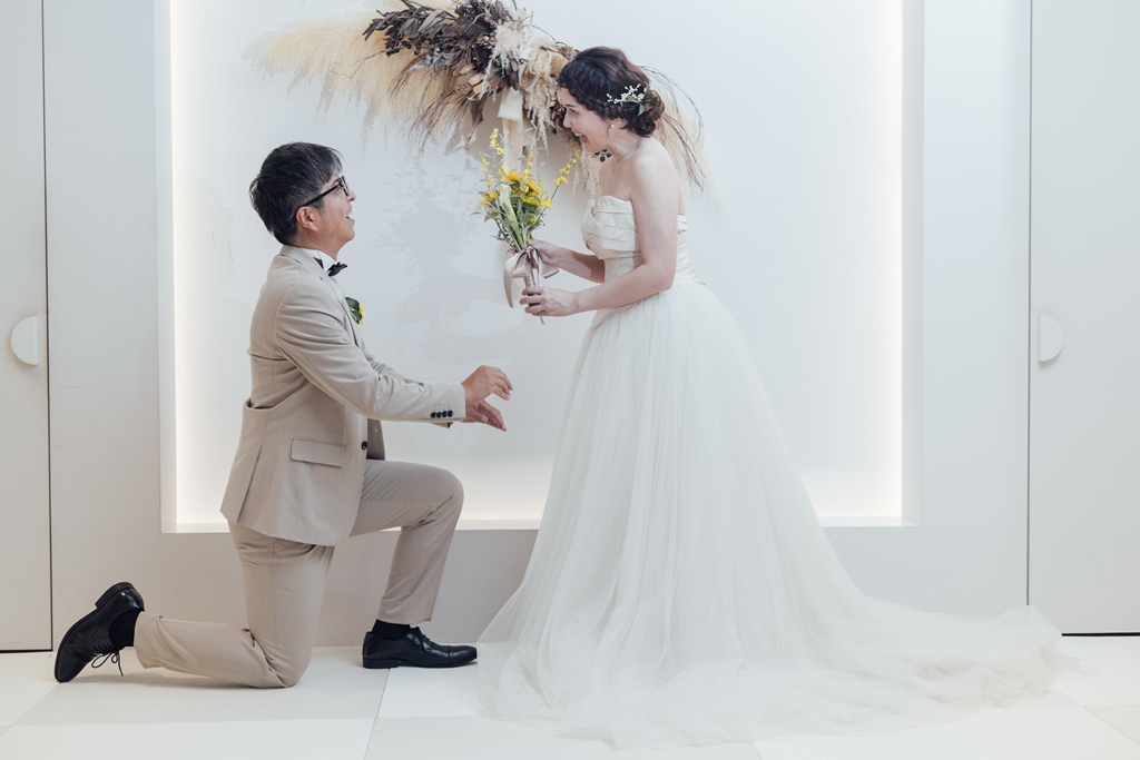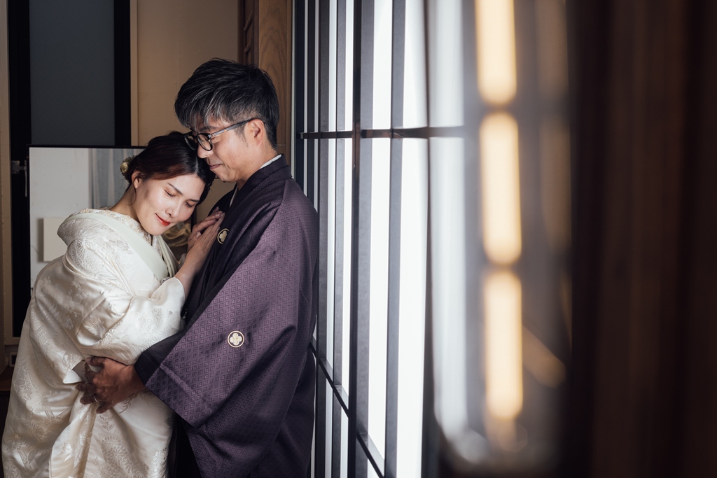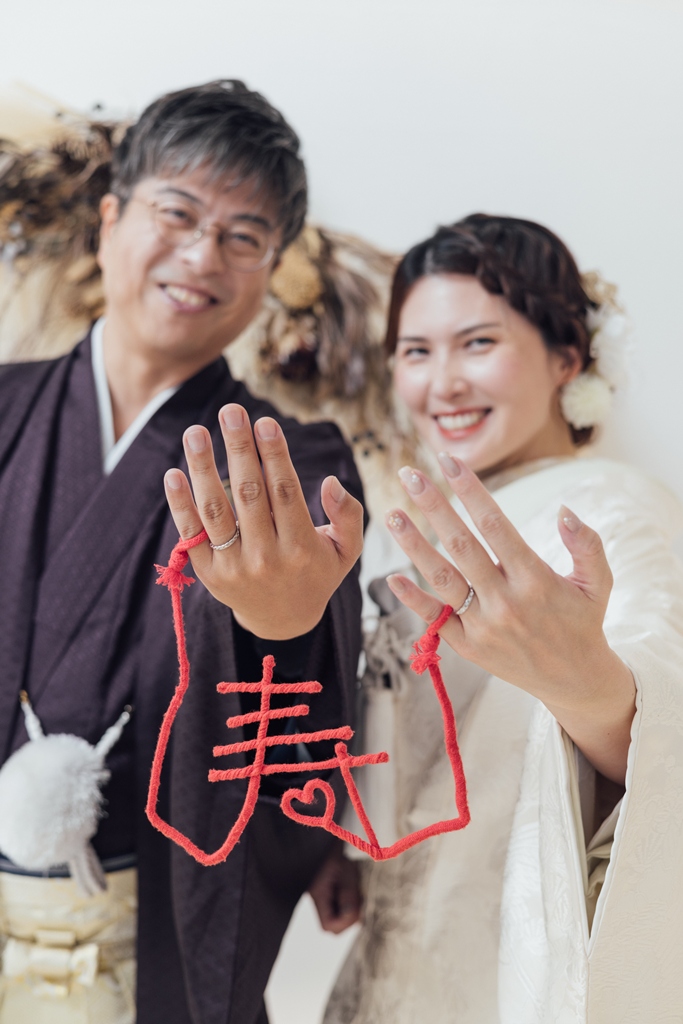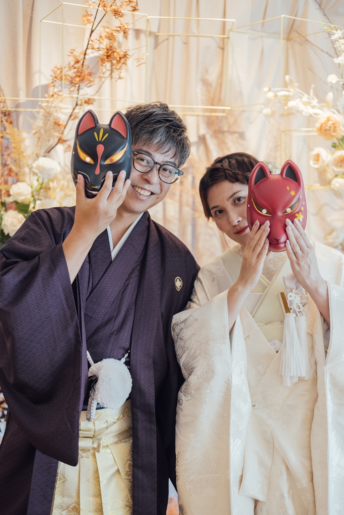東京都のスタジオで、洋装と和装の両方をお選びいただき、前撮りという大切な時間を共に過ごさせていただき、本当にありがとうございました。お二人が纏う洋装の洗練された美しさと、和装の格式ある優雅さ——その両方を一日で体験できることは、まさに特別なひとときです。