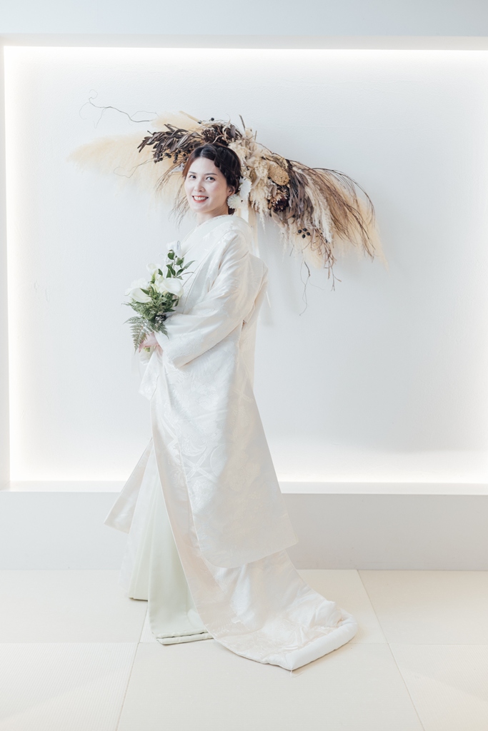 和装ではオーソドックスな白無垢を選択しましたが、結婚式ならではな絵が撮れて良かったです。またしっかりいい意味で固い写真が撮れたのと、いつもとは違う雰囲気で撮れてよかったです。