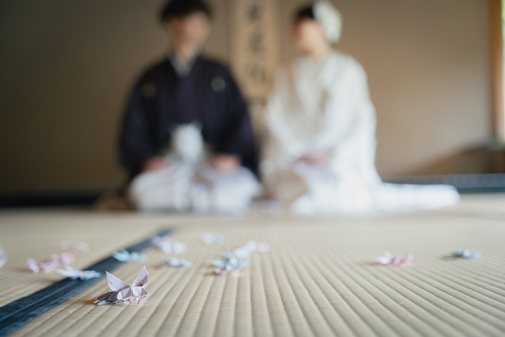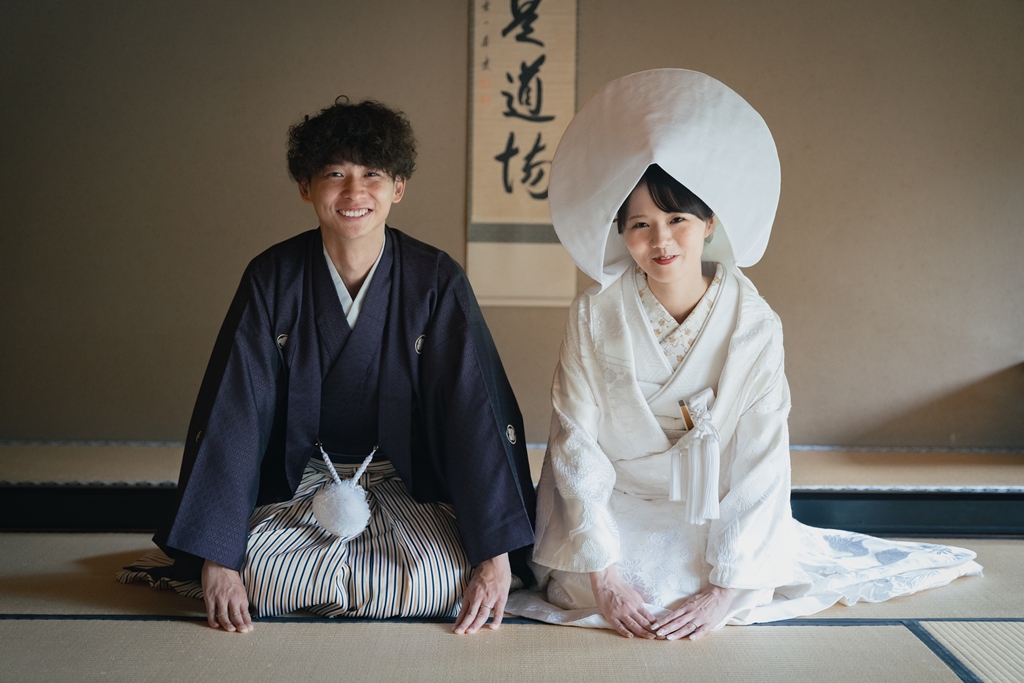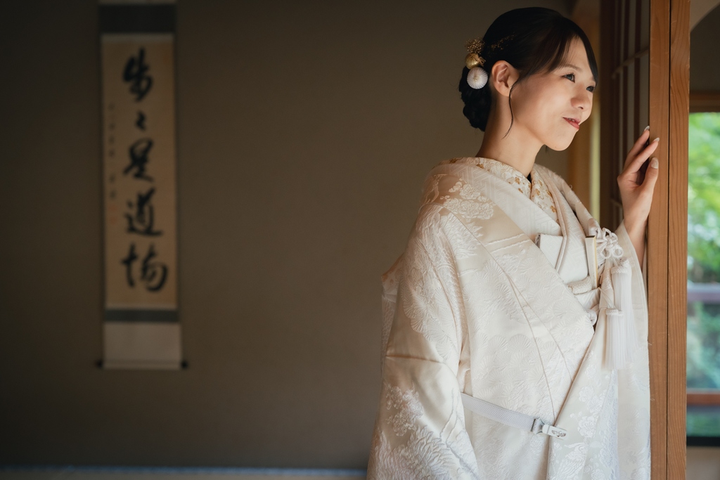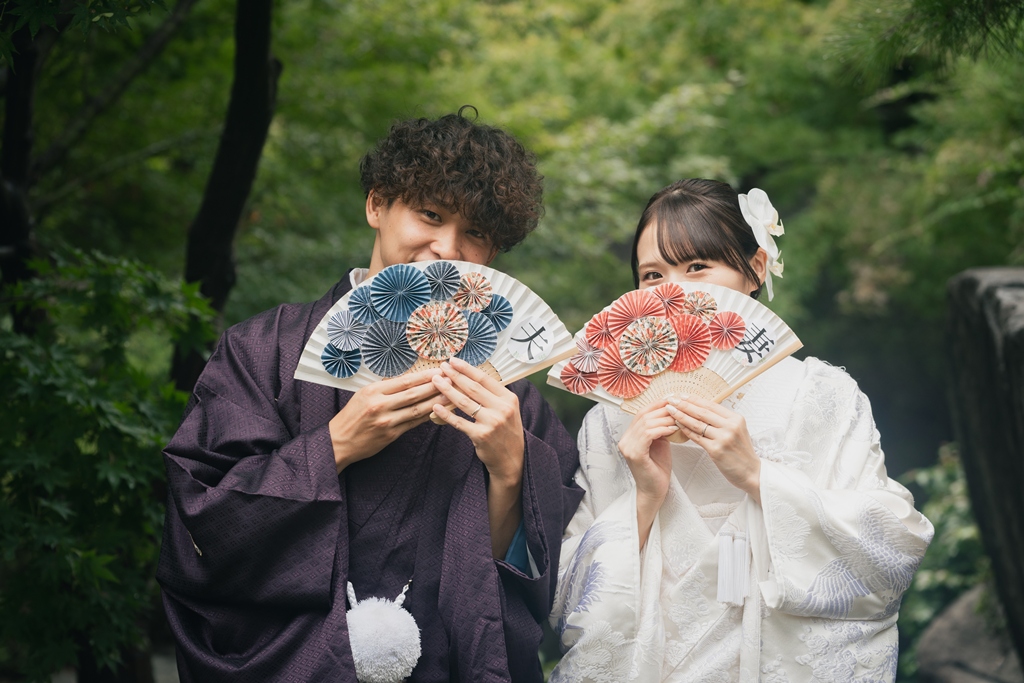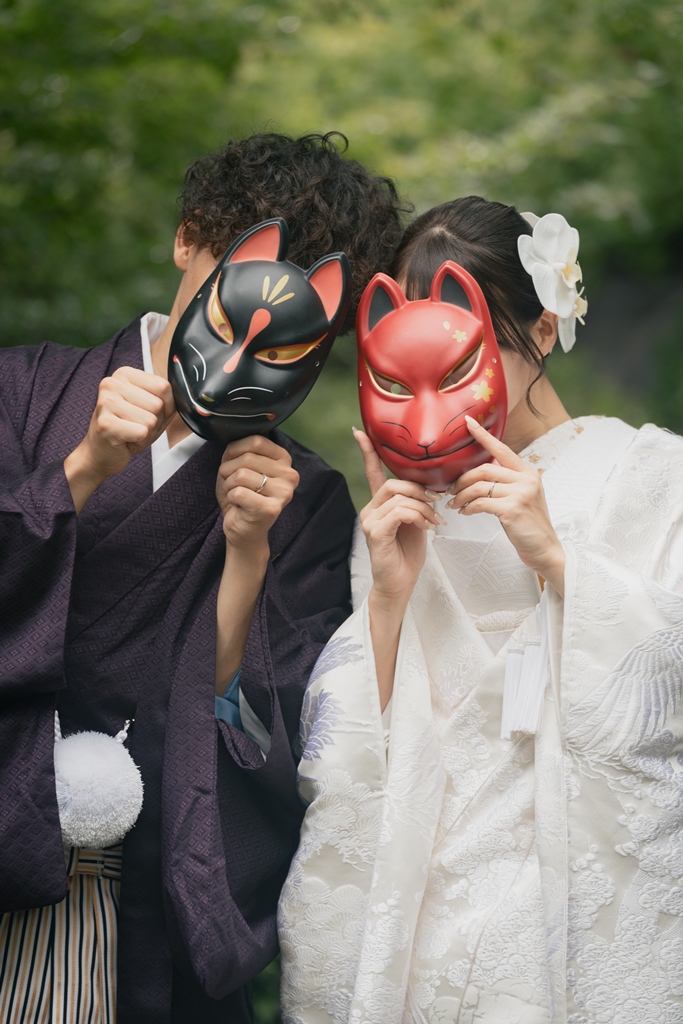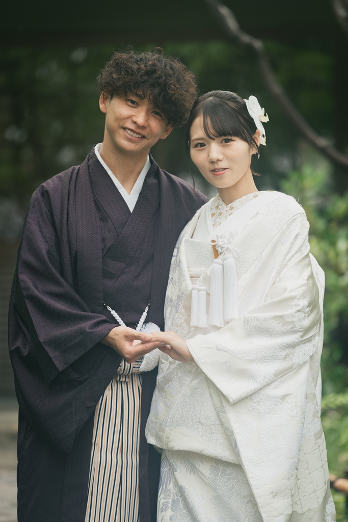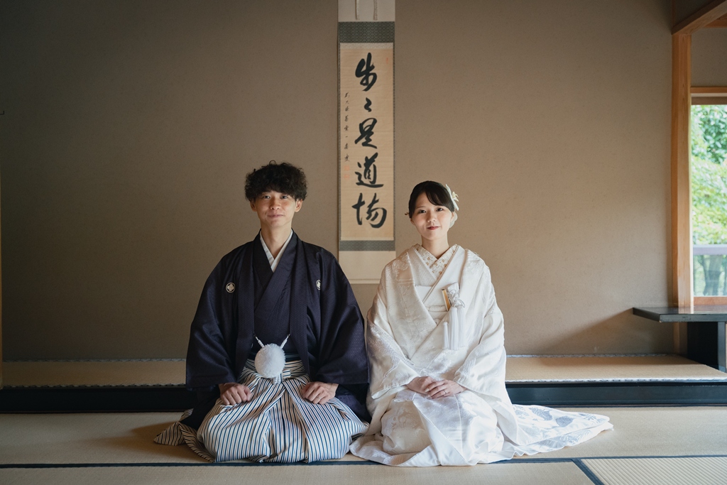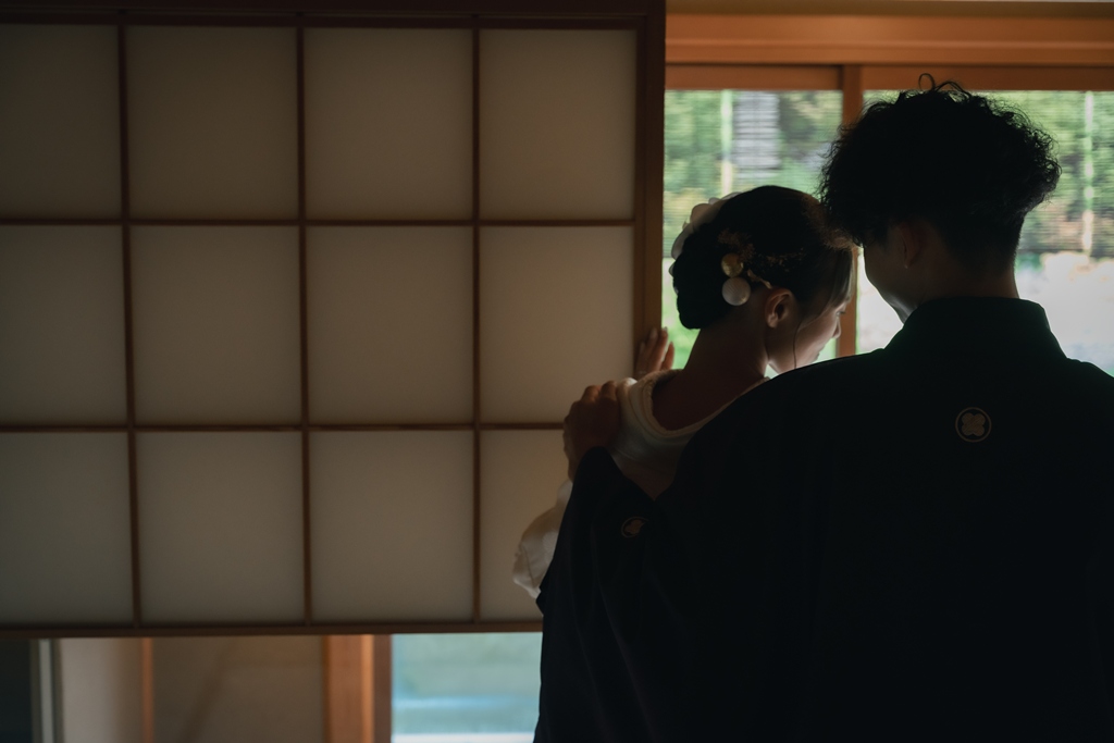 日本の伝統美を纏い、緑豊かな庭園の静けさの中で過ごす時間は、まるで時が止まったかのような特別な瞬間だったことと思います。お二人の美しい姿は、まるで絵巻物から抜け出してきたかのようで、和装の格式と気品が、庭園の風景に溶け込み、唯一無二の物語を紡ぎました。