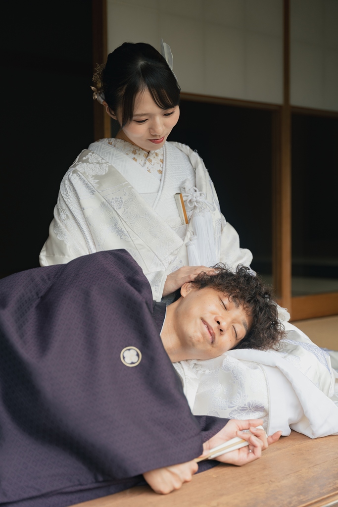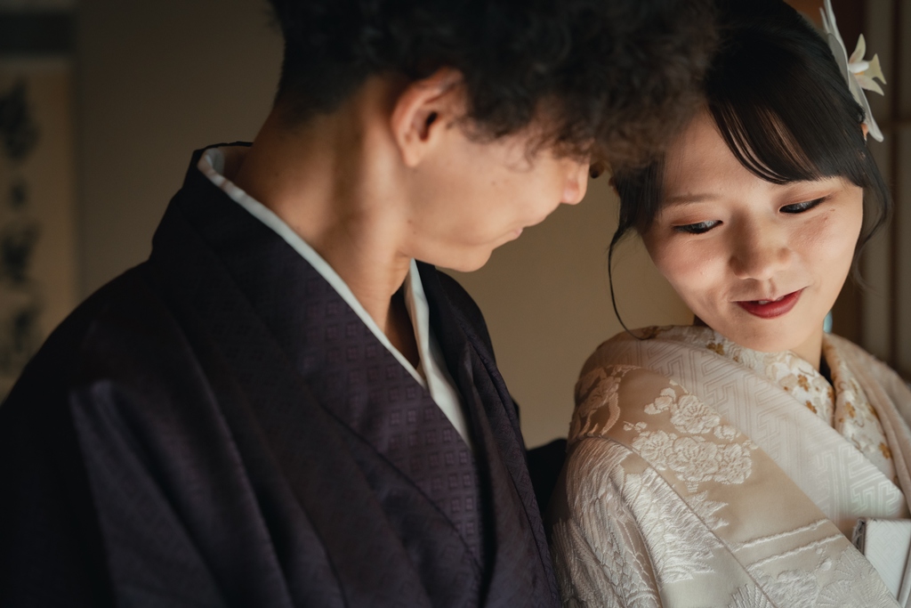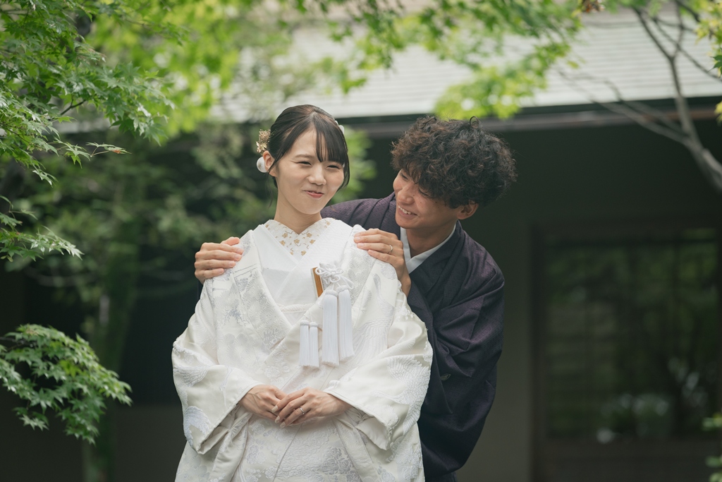撮影中、光と影が織りなす一瞬一瞬、風に揺れる樹々や季節の香りまでもが、お二人の思い出として写真に刻まれています。お二人が選ばれた和装は、ただ美しいだけでなく、お互いの想いと、人生の新たな一歩を象徴するものでもあります。その特別な日を、私たちにお手伝いさせていただけたことを心より光栄に思います。