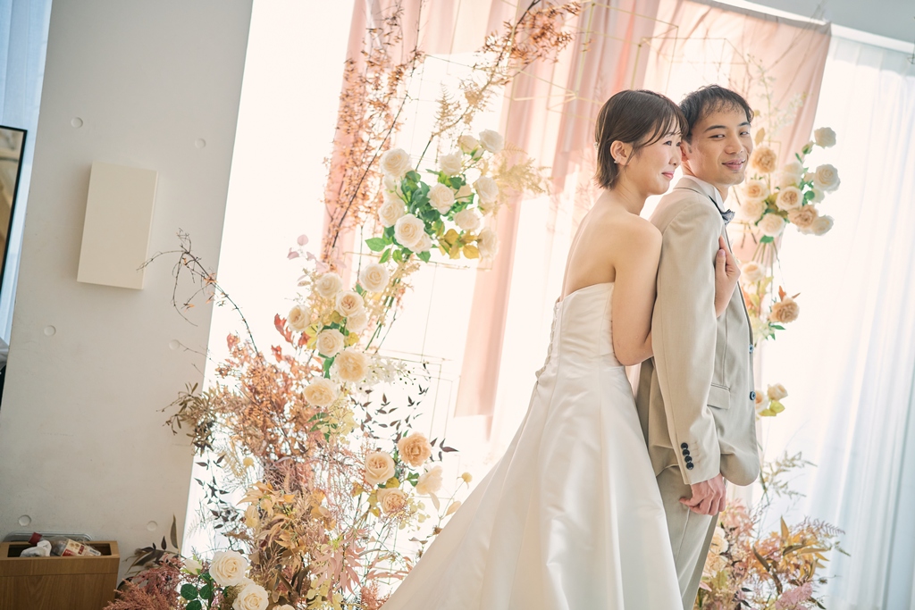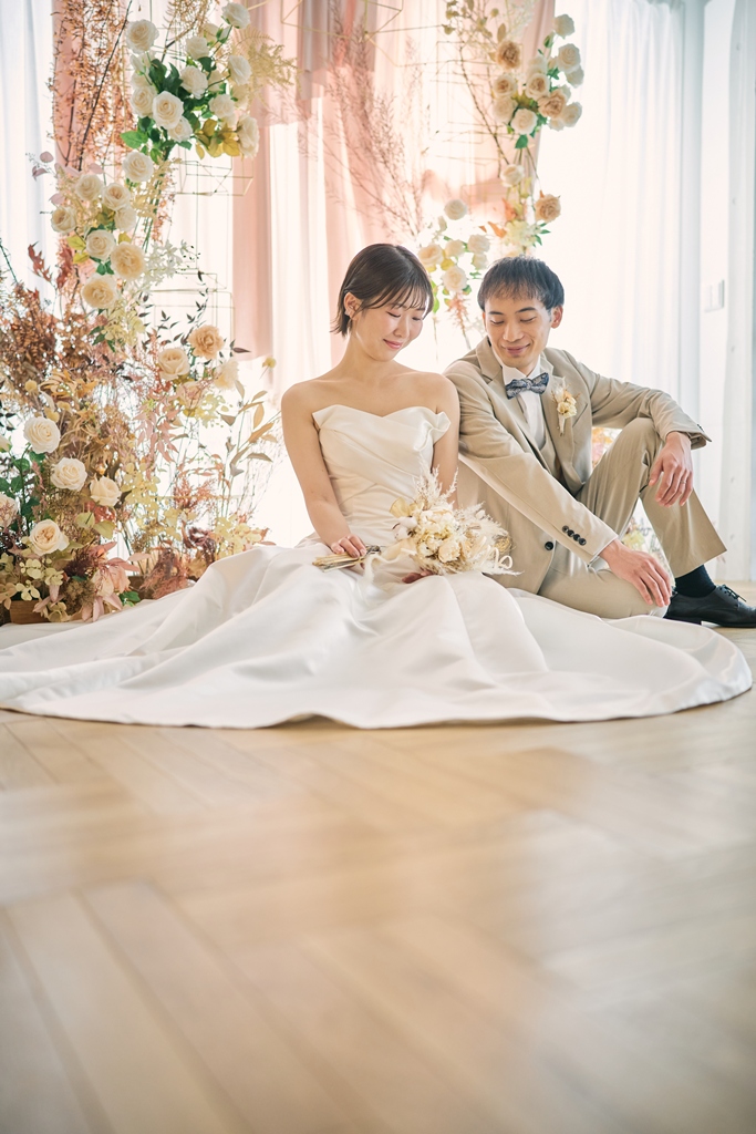 おふたりの特別な一日をお手伝いできましたこと、スタッフ一同心より嬉しく思っております。スタジオならではの上質な光と洗練された空間の中で、おふたりの自然な笑顔や優しいまなざしが溢れていました。