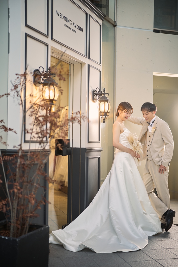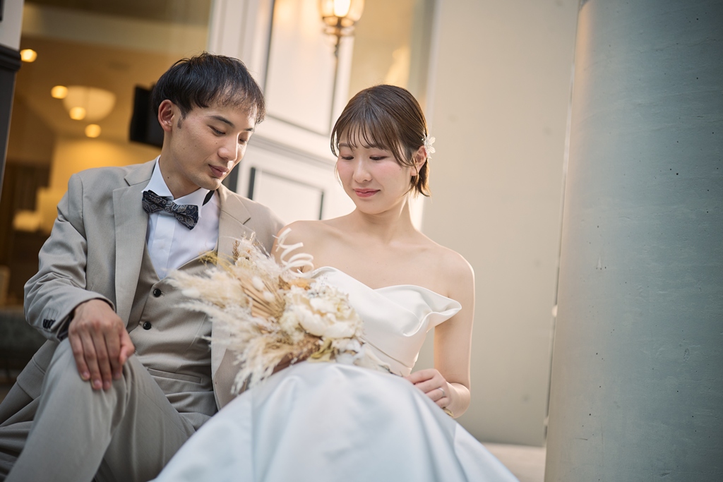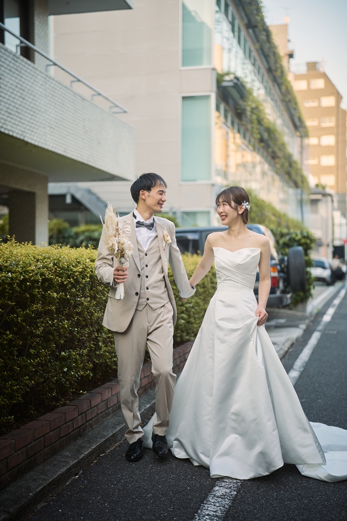洋装ならではのエレガントさとおふたりの雰囲気が見事に調和し、まるで映画のワンシーンのような瞬間が次々と生まれたのを今でも鮮明に覚えています。撮影を通して感じられたおふたりの絆や想いが、これからの人生をさらに輝かせていくことを心より願っております。