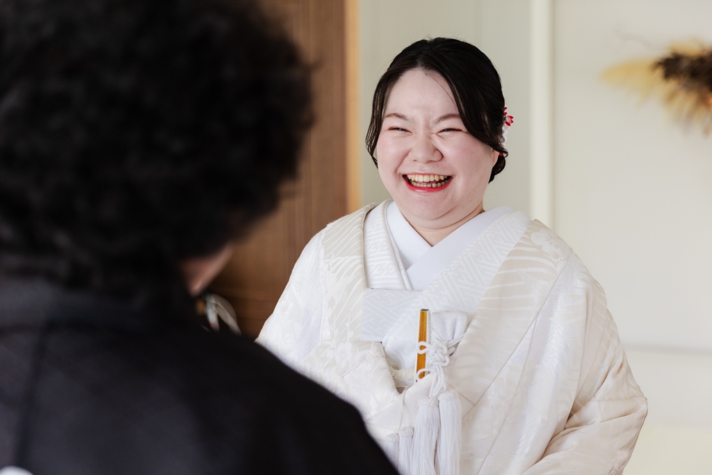 おふたりがそっと寄り添い、目が合った瞬間にこぼれた柔らかな笑顔は、まるで絵画のような美しさで、スタッフ一同思わず息をのむほどでした。