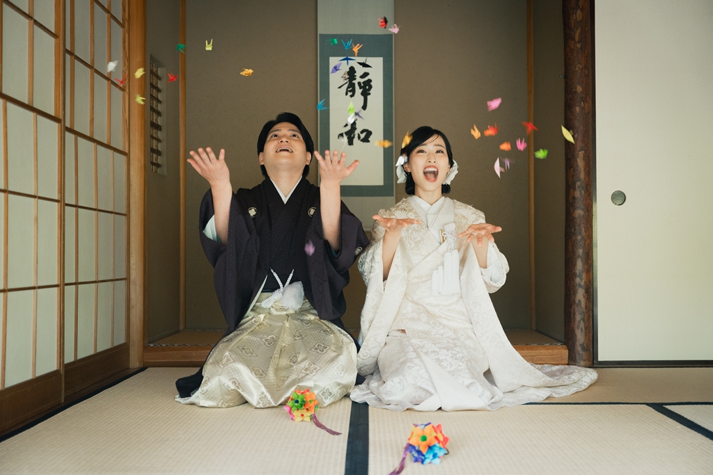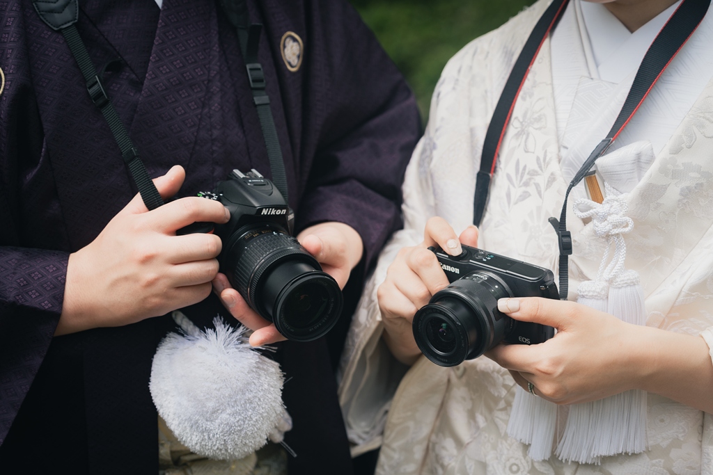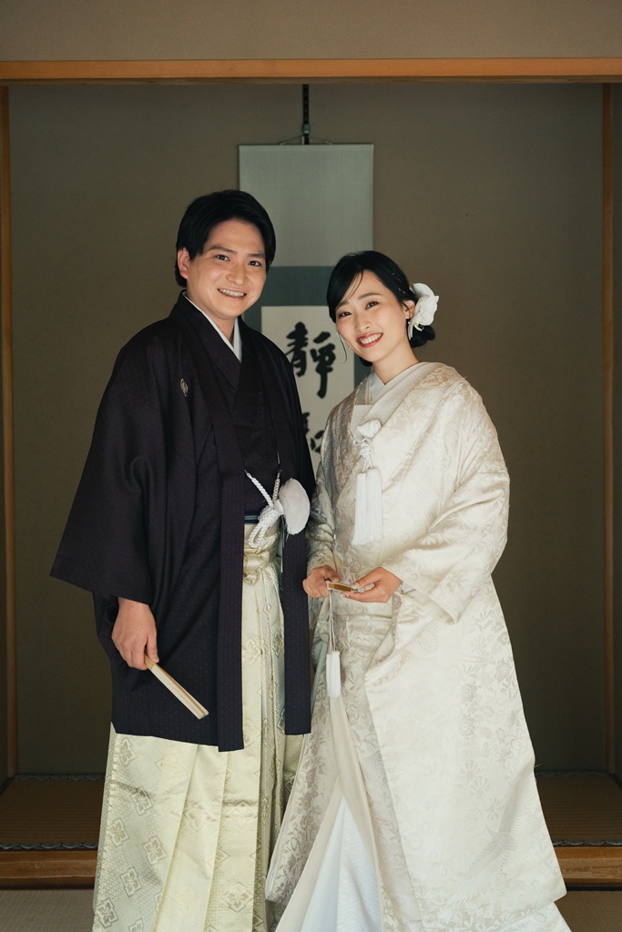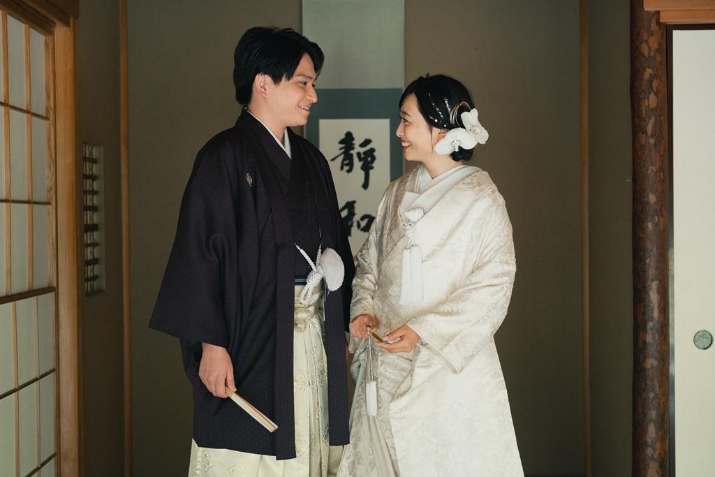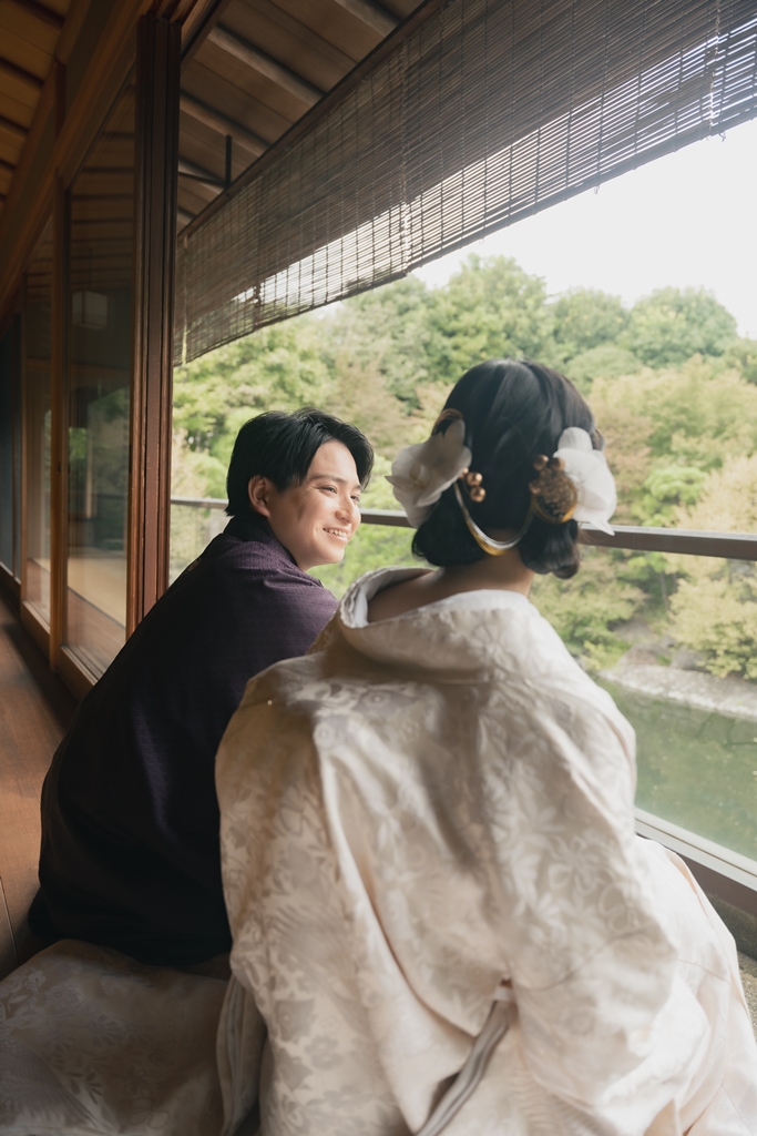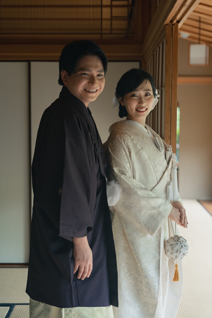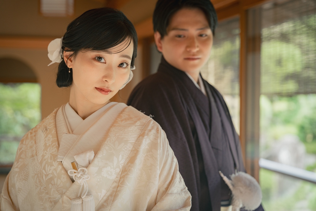 おふたりが並んで歩く姿は、まるで物語の一章を切り取ったような美しさで、私たちスタッフの心を深く惹きつけました。撮影の途中でふと見せてくださる微笑み、そっと手を取り合う仕草、和装ならではの袖の揺れなど、一つひとつの瞬間から、お互いを大切に思う気持ちと未来への温かな願いが伝わってまいりました。