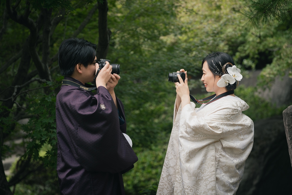 目白庭園の穏やかな空気と水の音が、その優しさをさらに柔らかく包み込み、おふたりの物語に深い彩りを添えていました。ロケーション撮影は、光や風、季節の空気がつくり出す一瞬がすべて思い出となります。