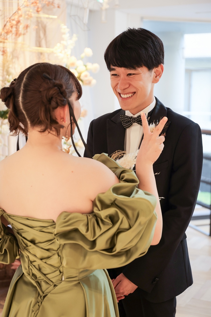 手をそっと添える仕草、ふとした瞬間に見つめ合う視線、その一つひとつから、おふたりが大切に重ねてきた時間と深い絆を感じました。