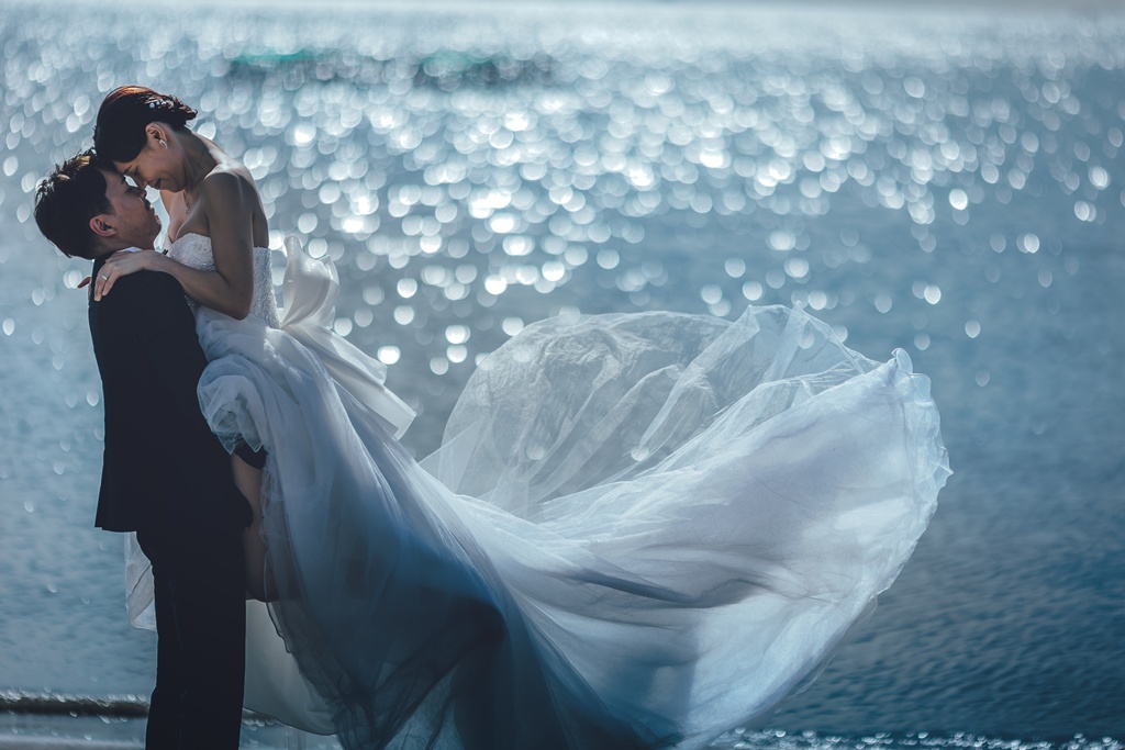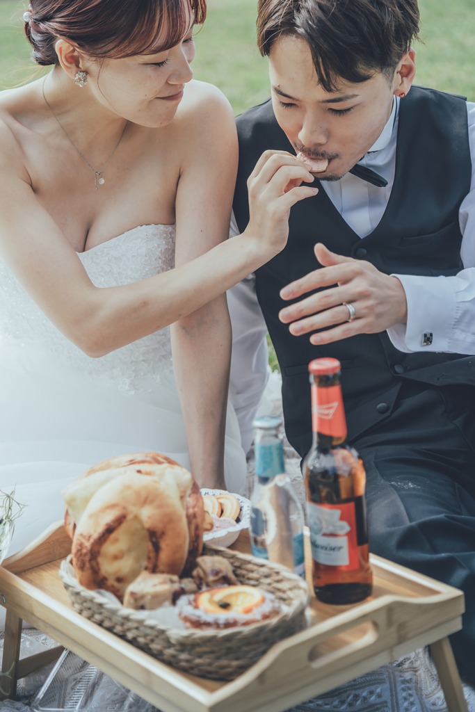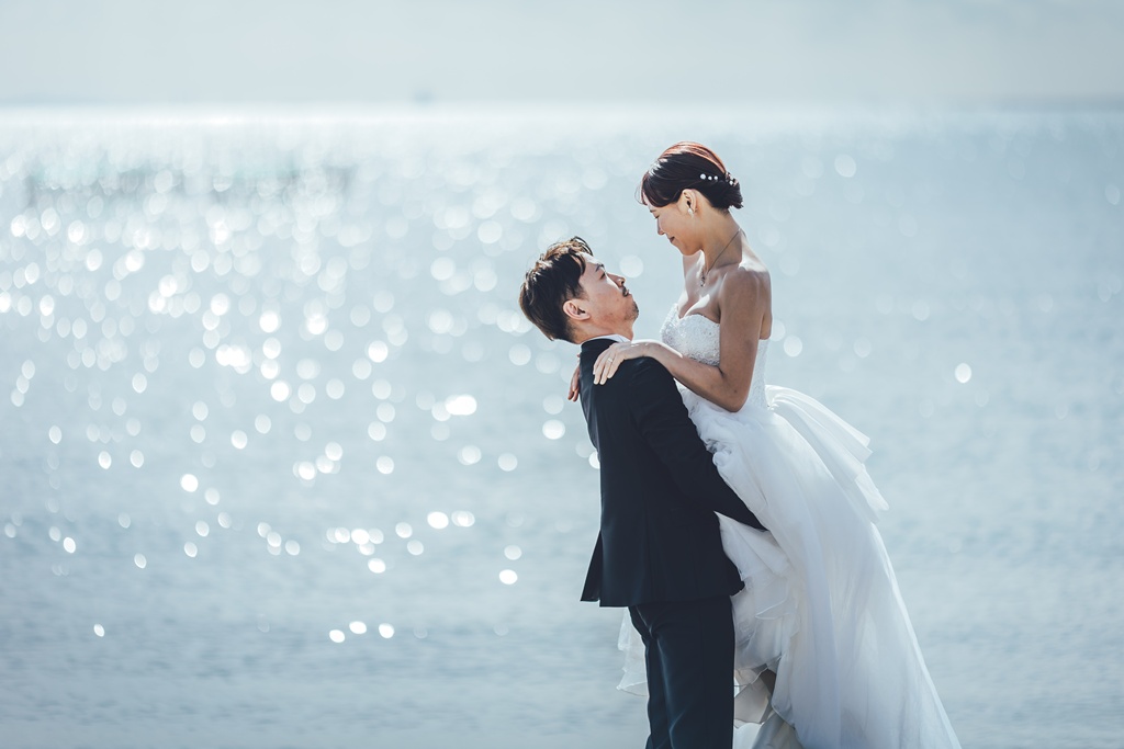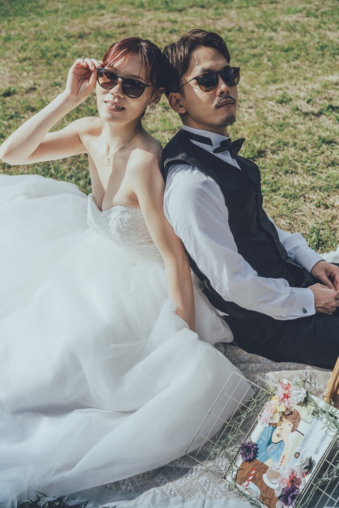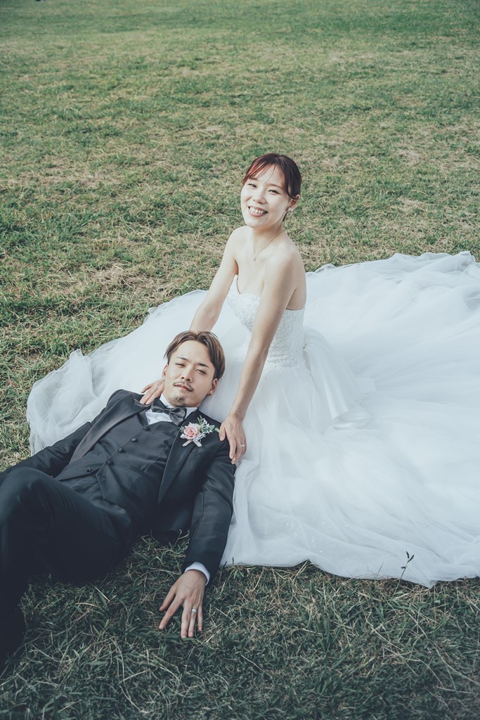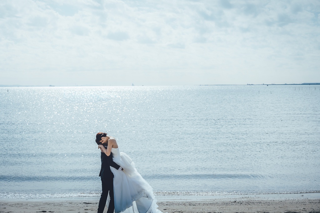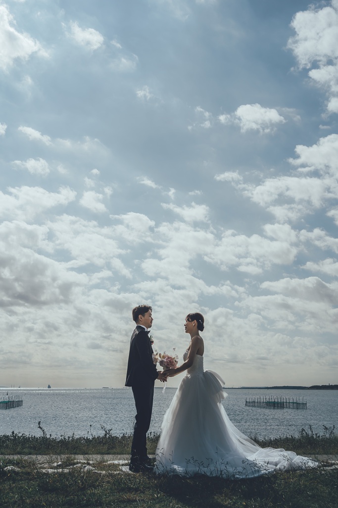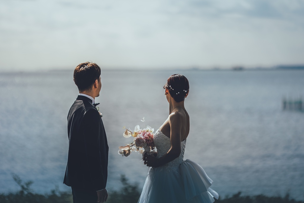 かしこまらず、でも特別で、肩の力を抜いたその瞬間一つ一つが、おふたりらしさそのものだったと感じています。ドレスとタキシードが海辺のロケーションに映え、まるで映画のワンシーンのような時間でした。