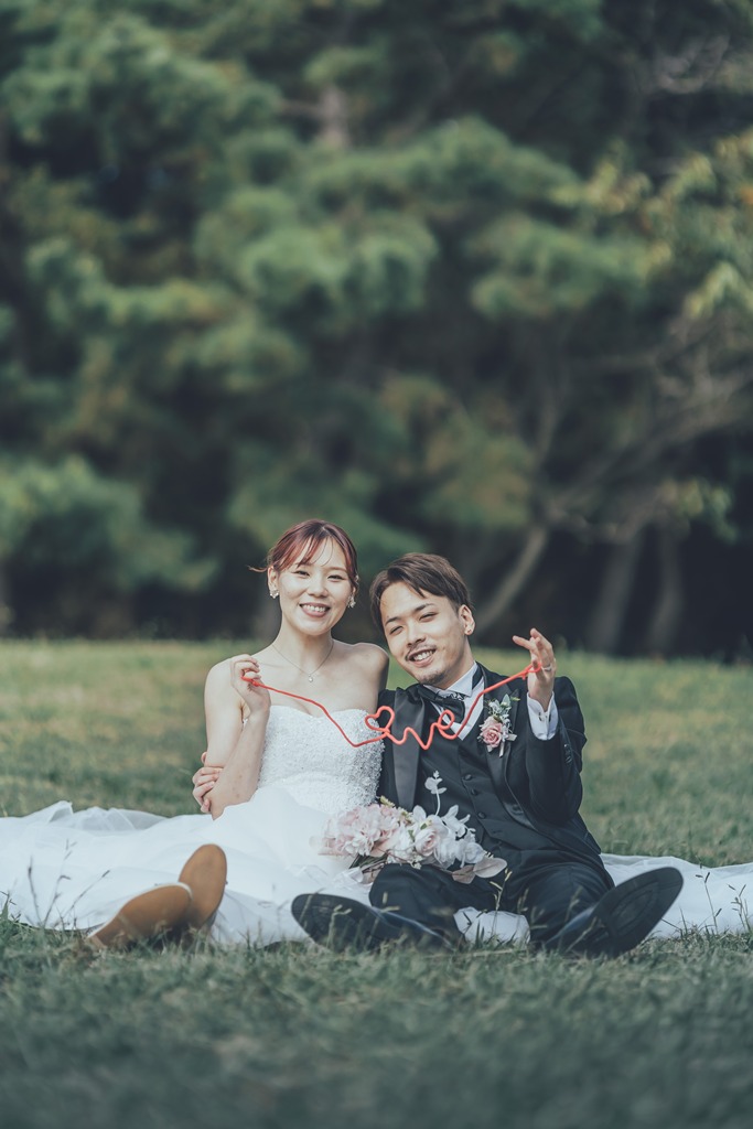 笑い合う表情も、ふと見つめ合う静かな瞬間も、これから先何度見返しても、その日の空気や想いがよみがえるお写真になっていると思います。この前撮りが、これからのおふたりの人生の中で