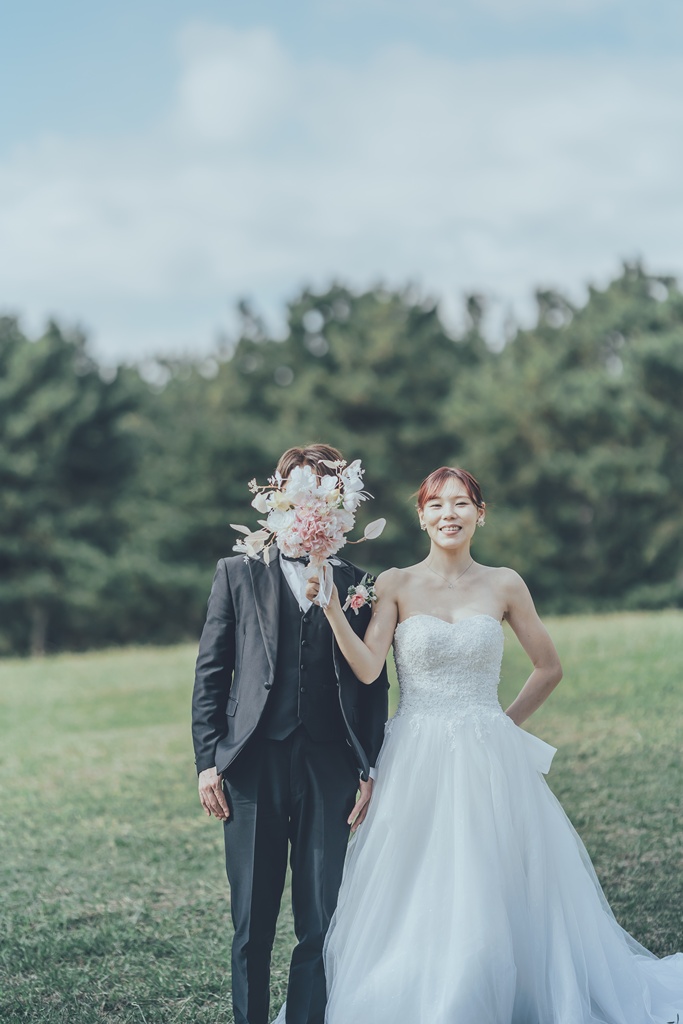 そして大切な一日を私たちにお任せいただき、心よりありがとうございました。青く広がる空と海、やわらかな潮風、どこまでも続く開放的な景色の中で、おふたりが並んで歩く姿は本当に美しく、自然体の笑顔がとても印象的でした。