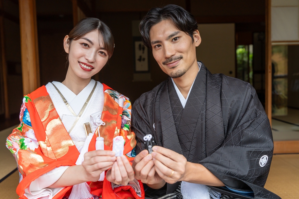 その中で、和装に身を包んだおふたりが並ぶ姿はとても上品で、穏やかな時間が流れているように感じられました。撮影が進むにつれ、おふたりの緊張も少しずつほぐれ、自然な笑顔ややさしい表情がたくさん見られたことが印象に残っています。