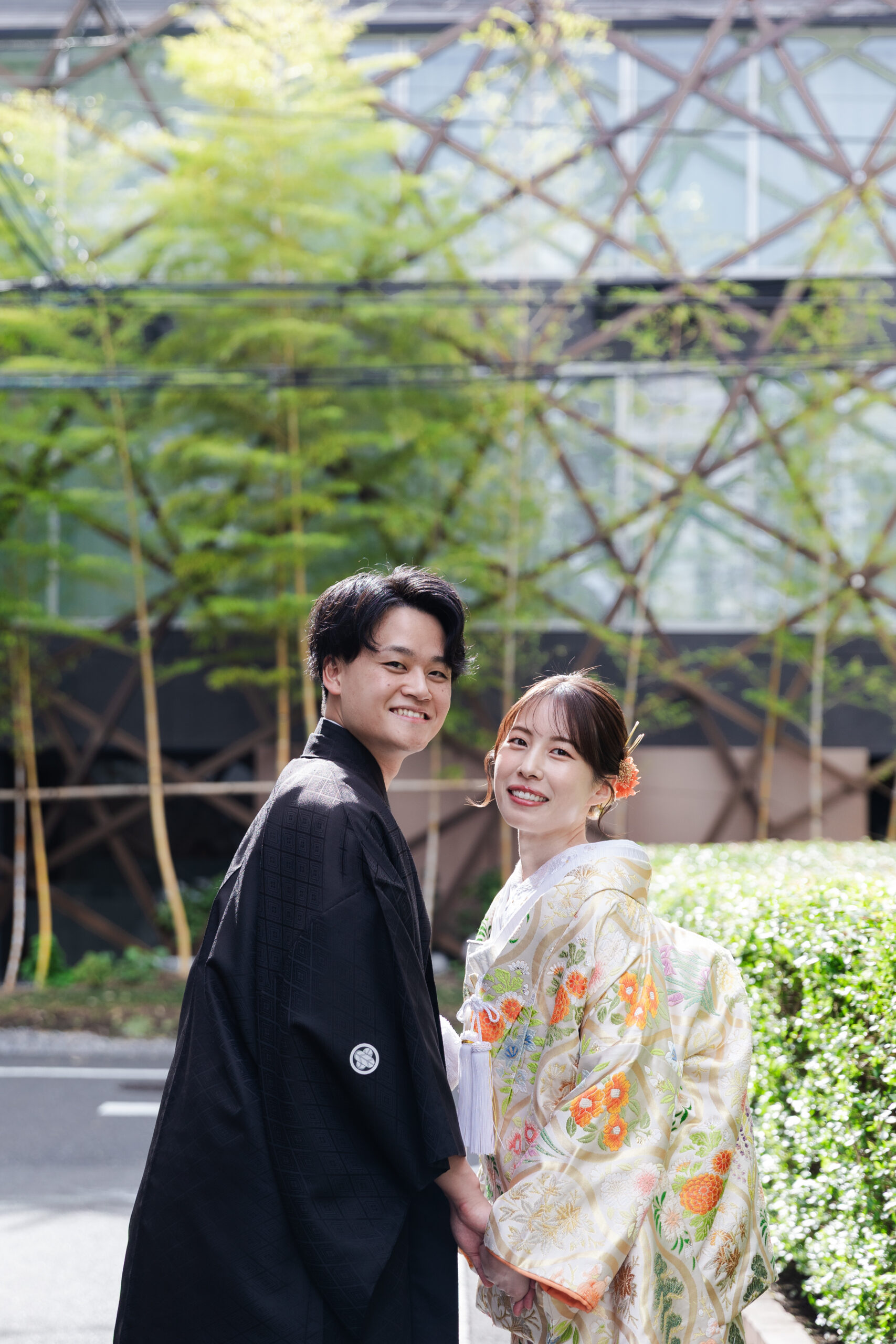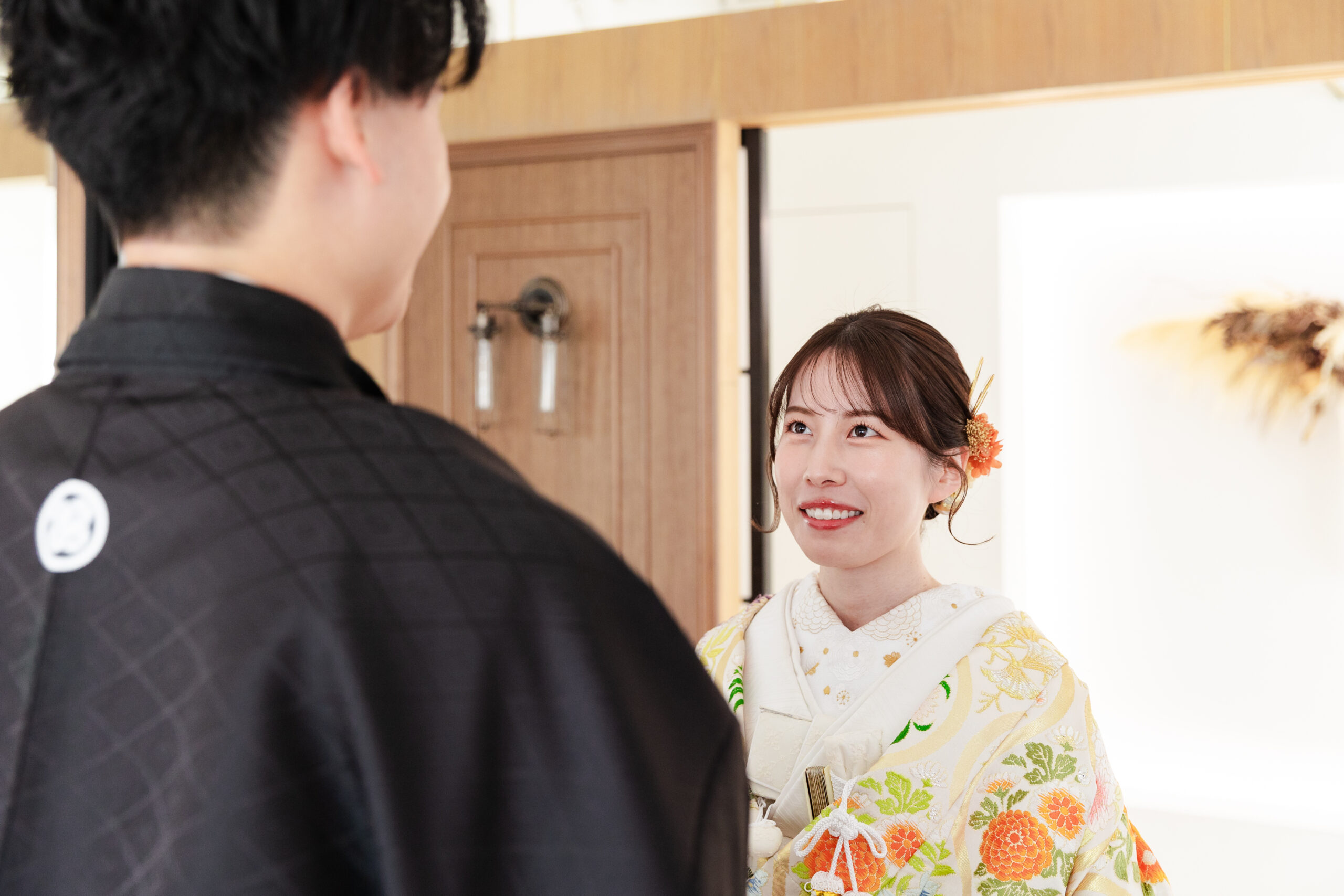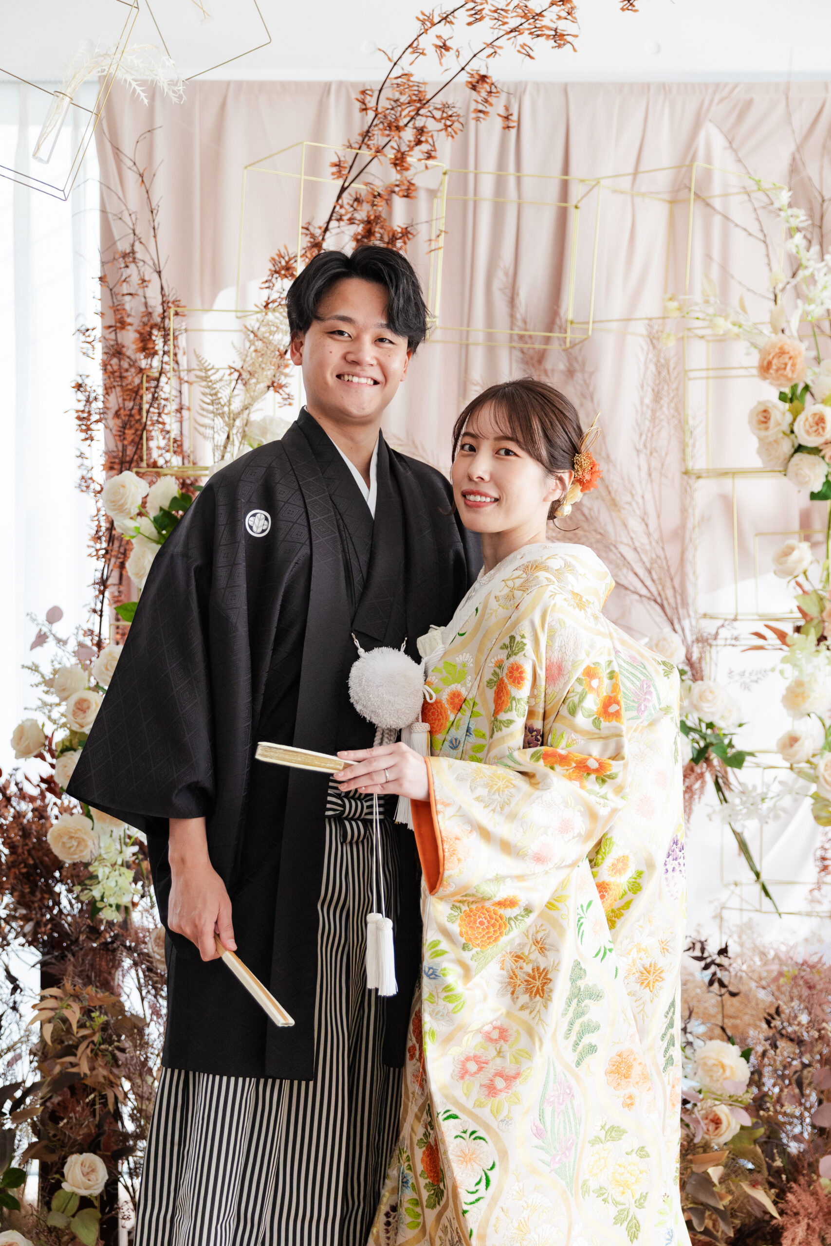 華やかなお着物も本当によくお似合いで、お二人のやわらかく上品な雰囲気がより一層引き立ち、見ているだけで幸せな気持ちになるようなお写真に仕上がったと感じております。また、撮影後にこのような嬉しいお言葉をお寄せいただき、心より感謝申し上げます。