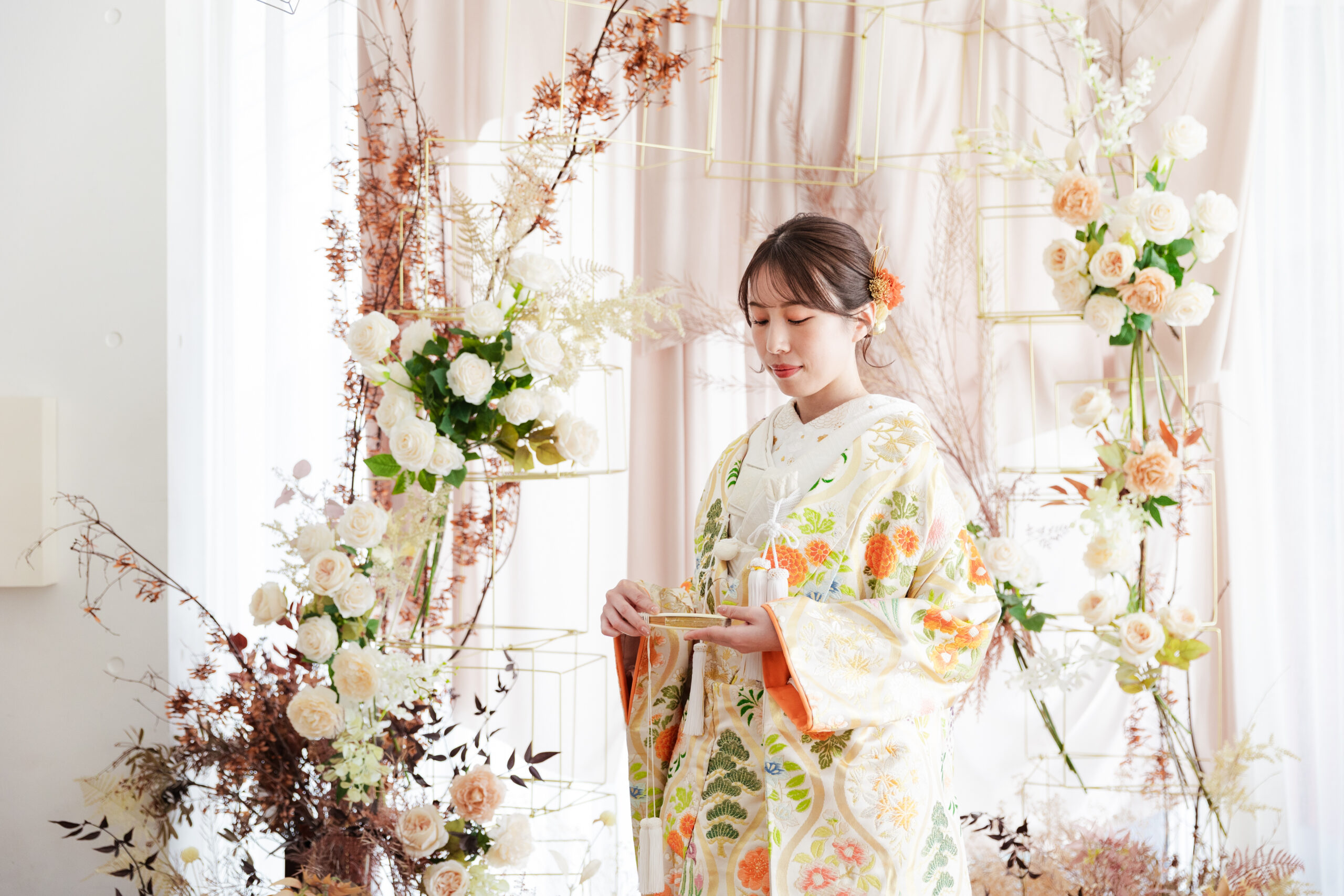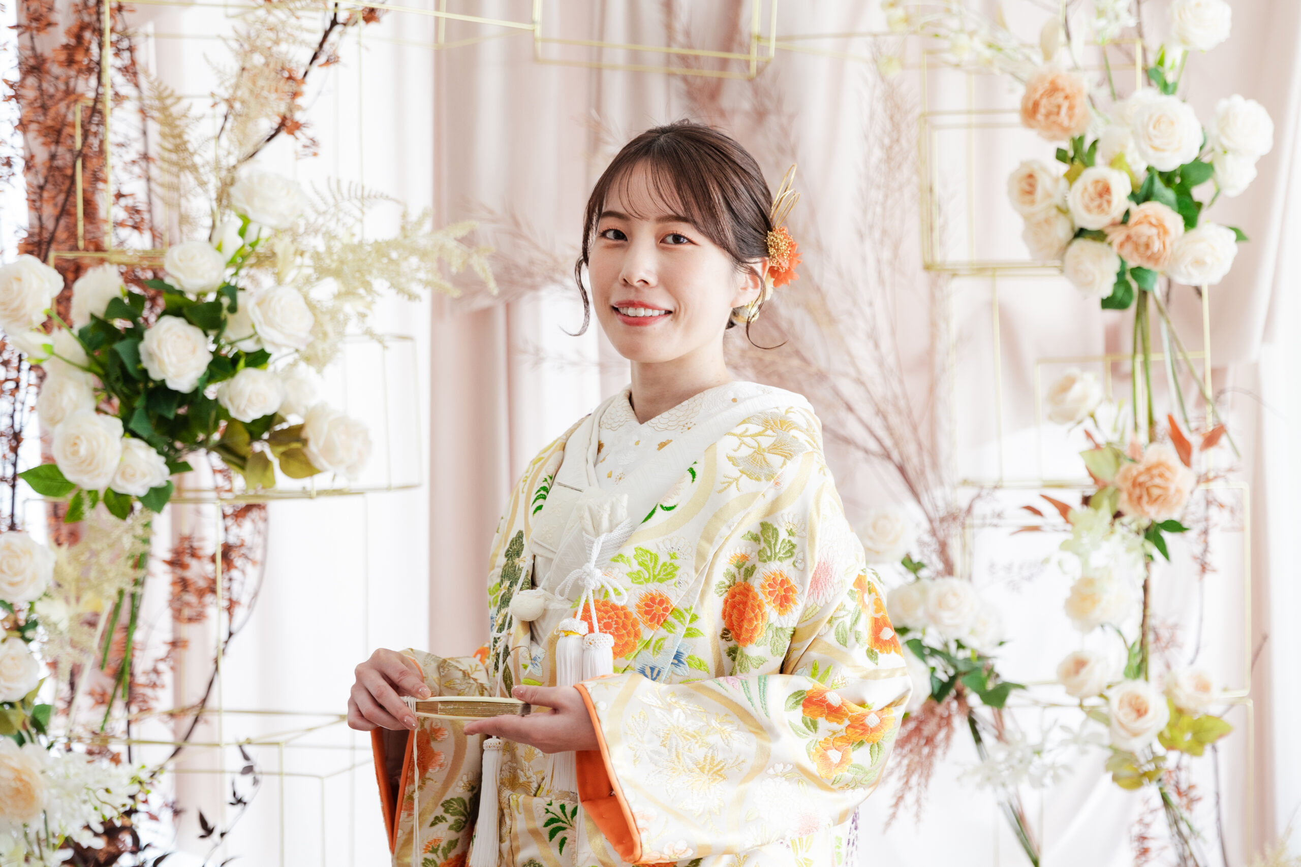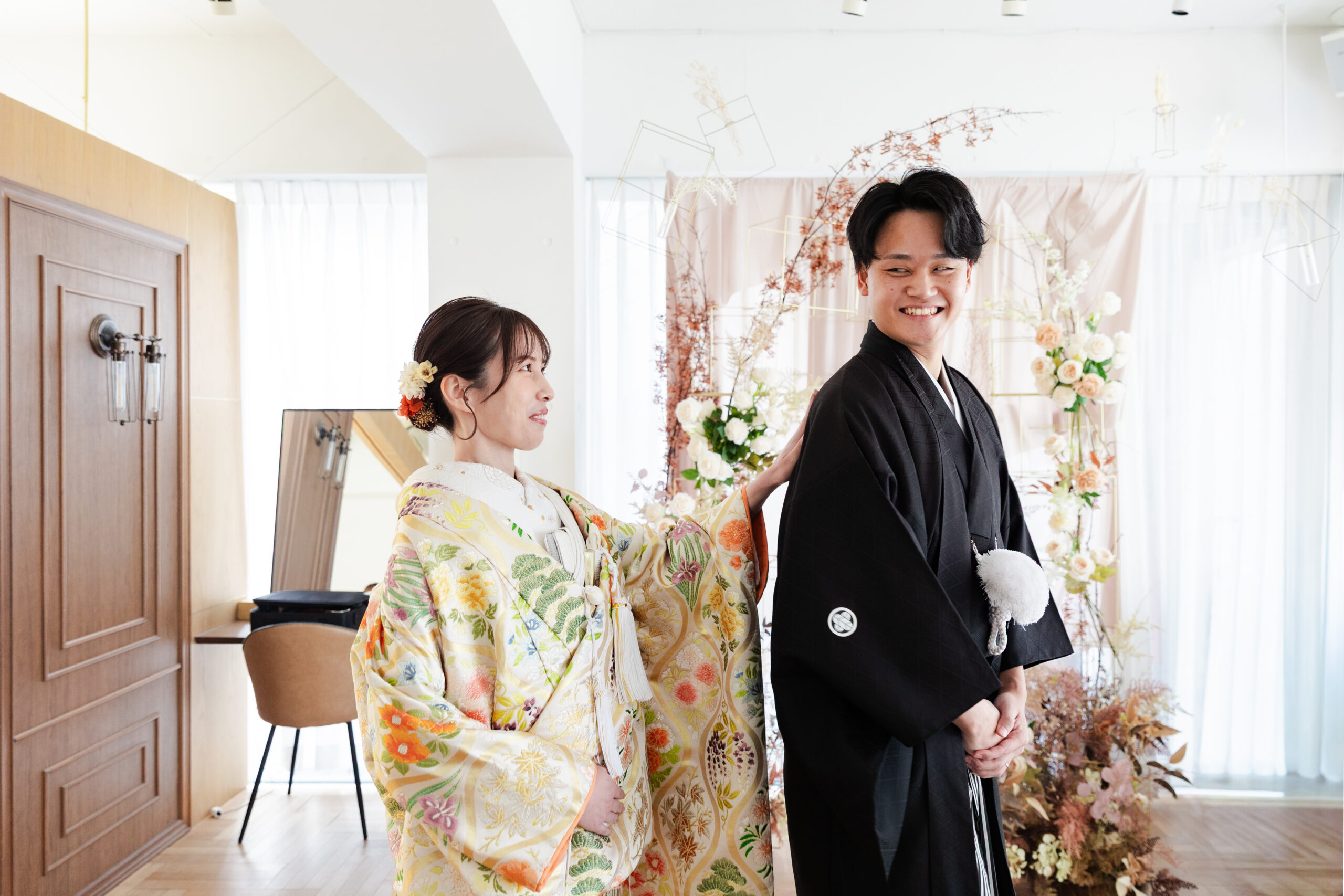 華やかなお着物も本当によくお似合いで、お二人のやわらかく上品な雰囲気がより一層引き立ち、見ているだけで幸せな気持ちになるようなお写真に仕上がったと感じております。また、撮影後にこのような嬉しいお言葉をお寄せいただき、心より感謝申し上げます。