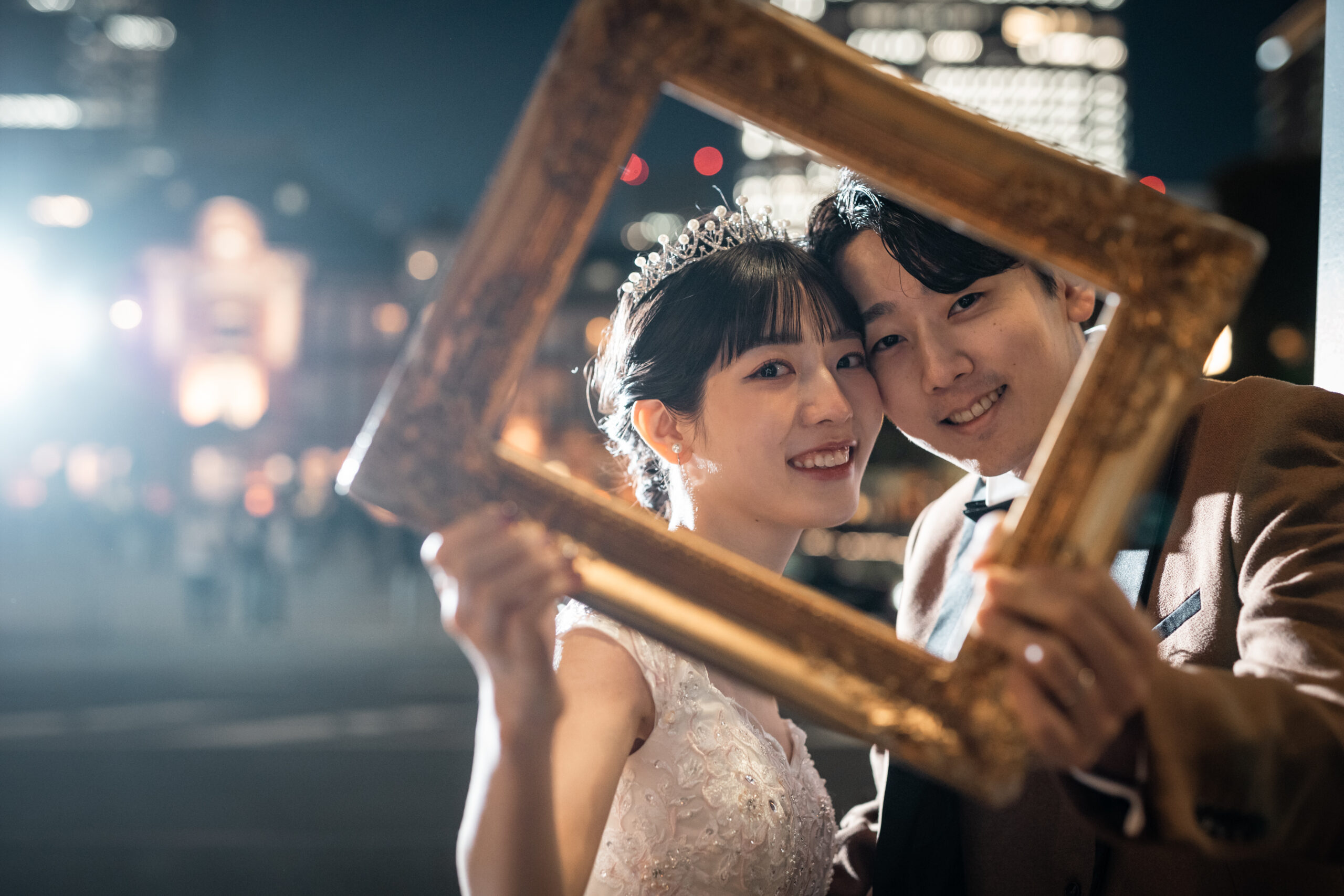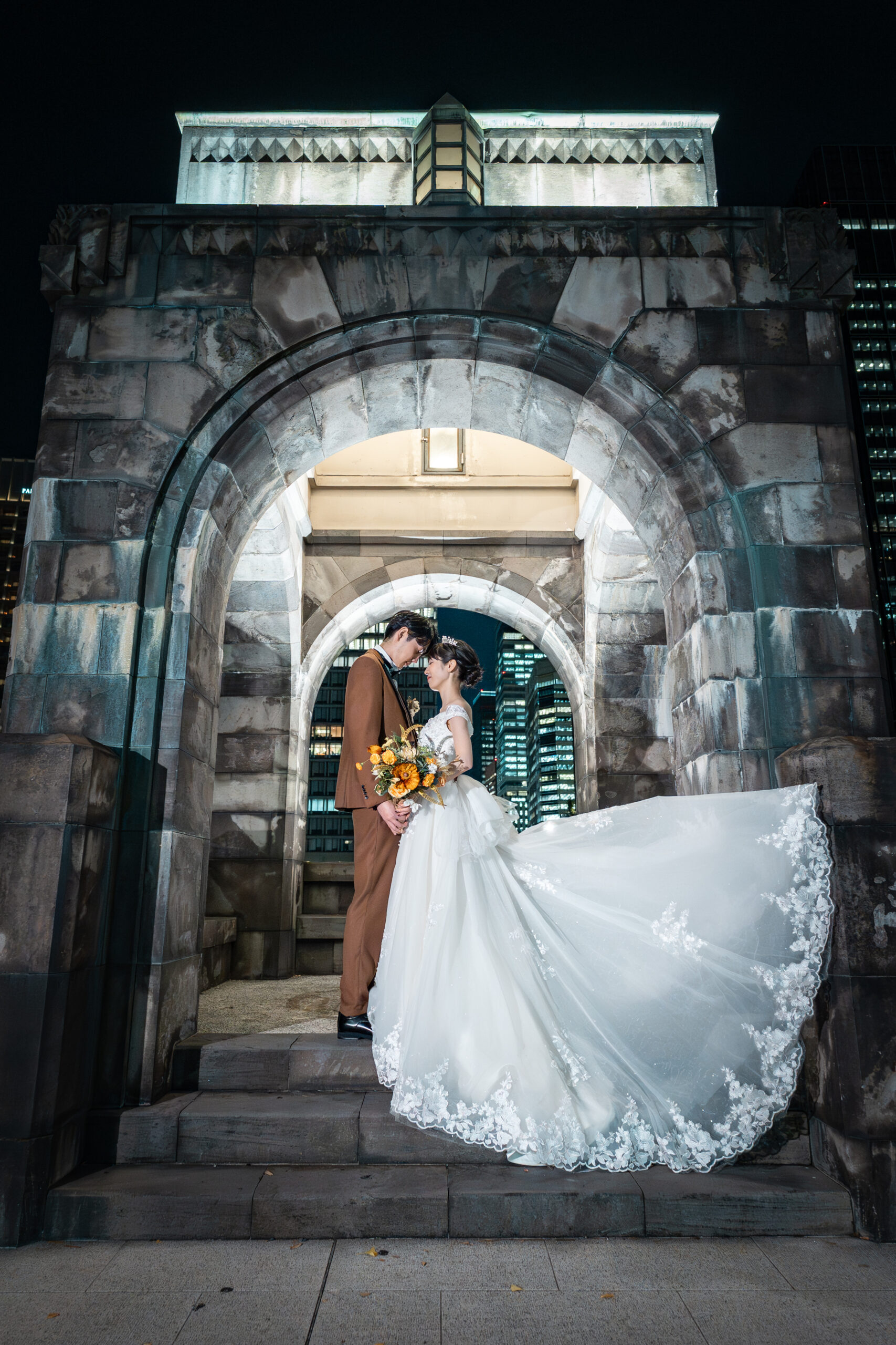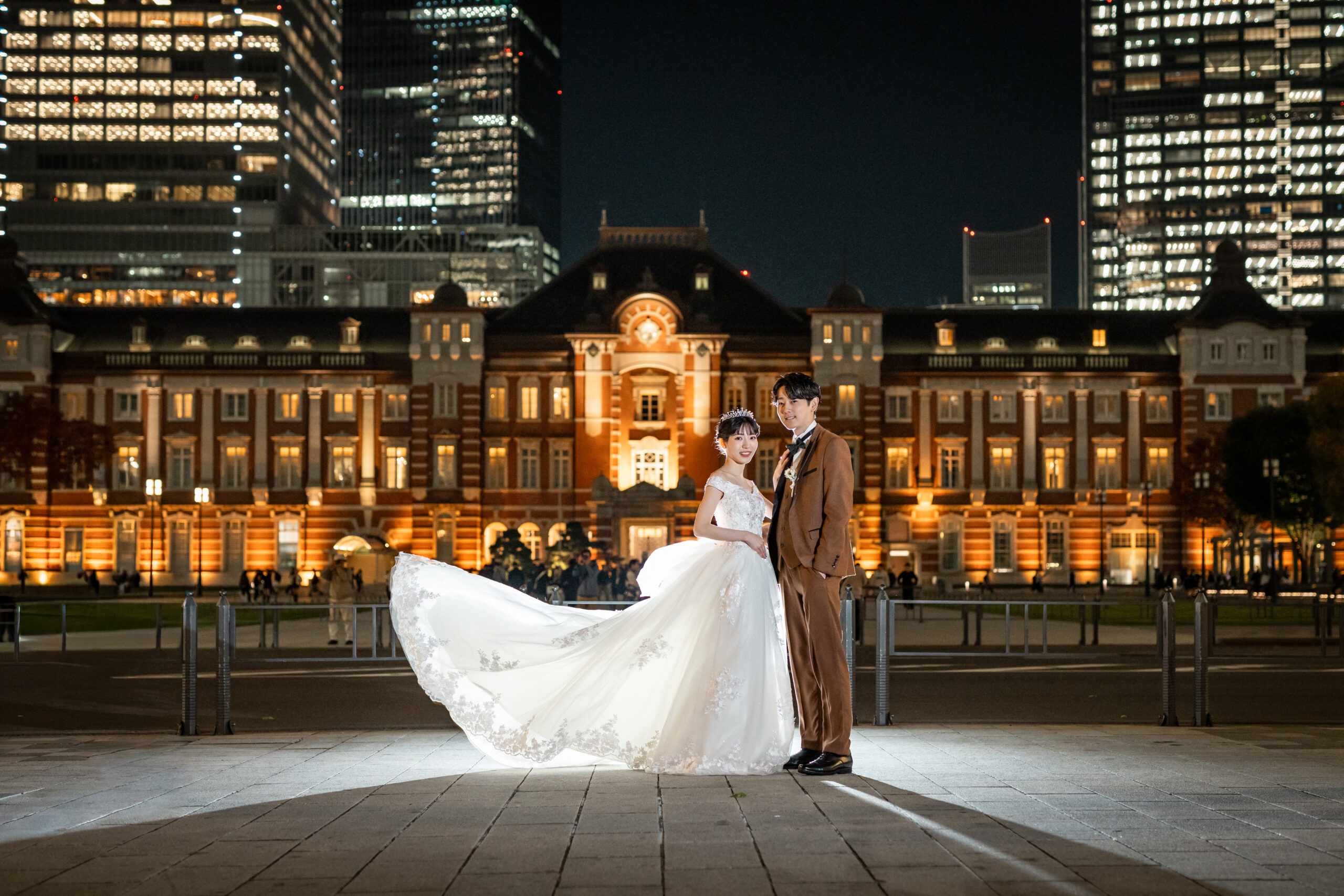夜景が祝福する、東京駅ナイトフォトウェディング
