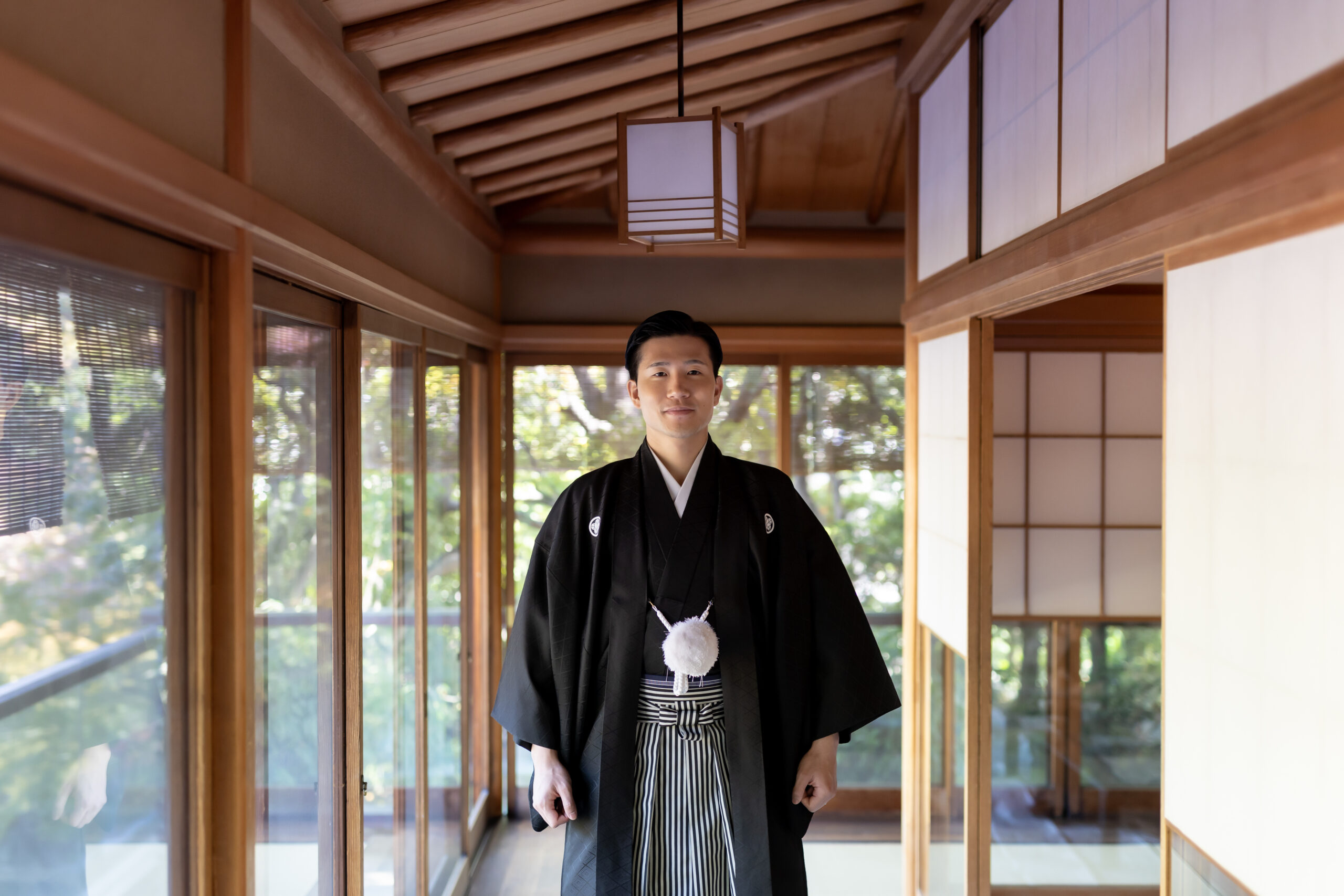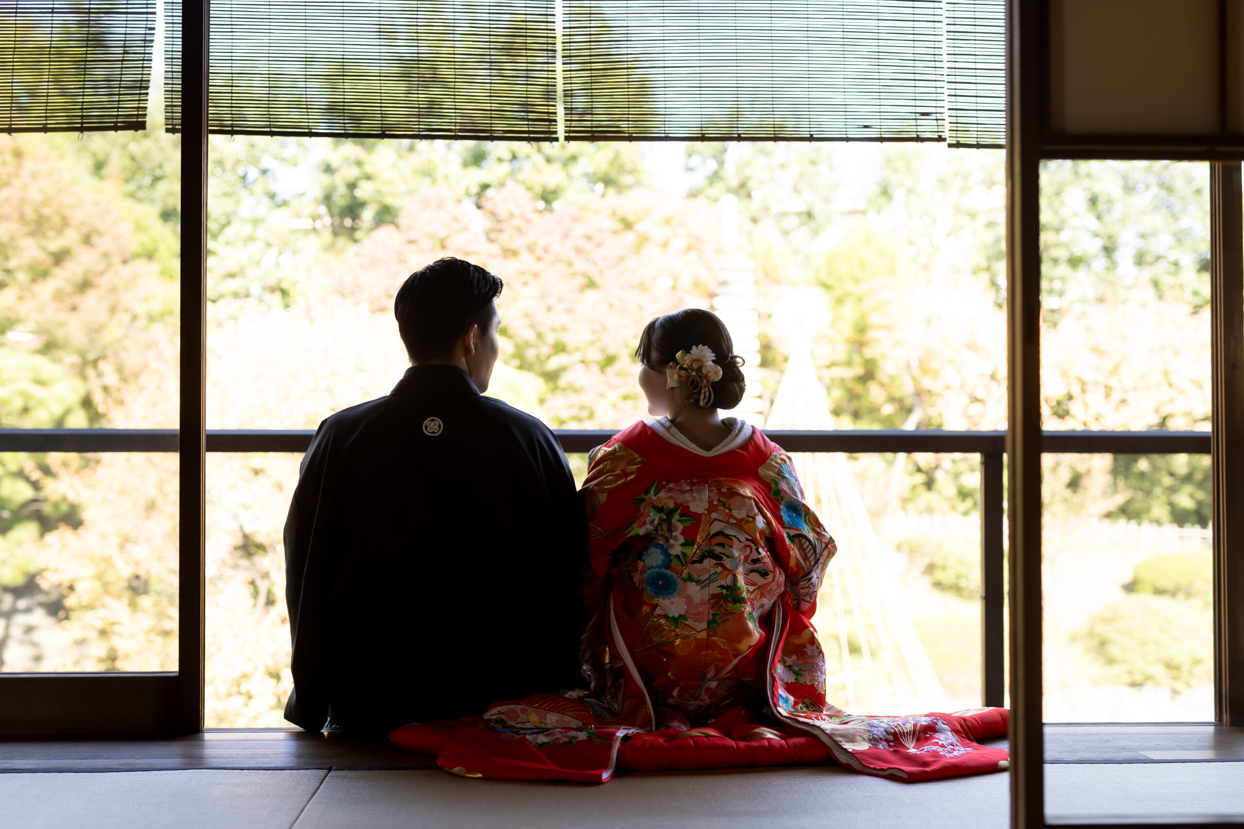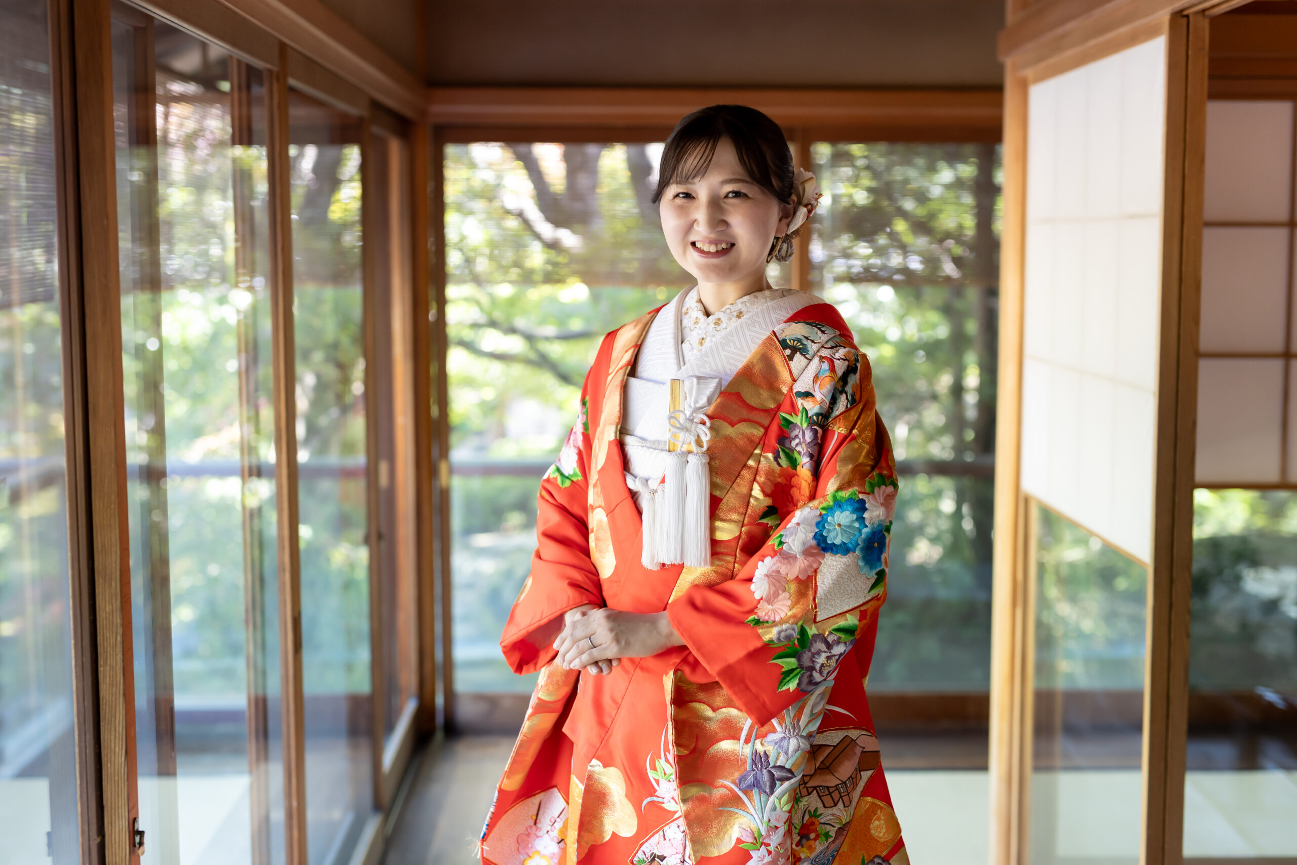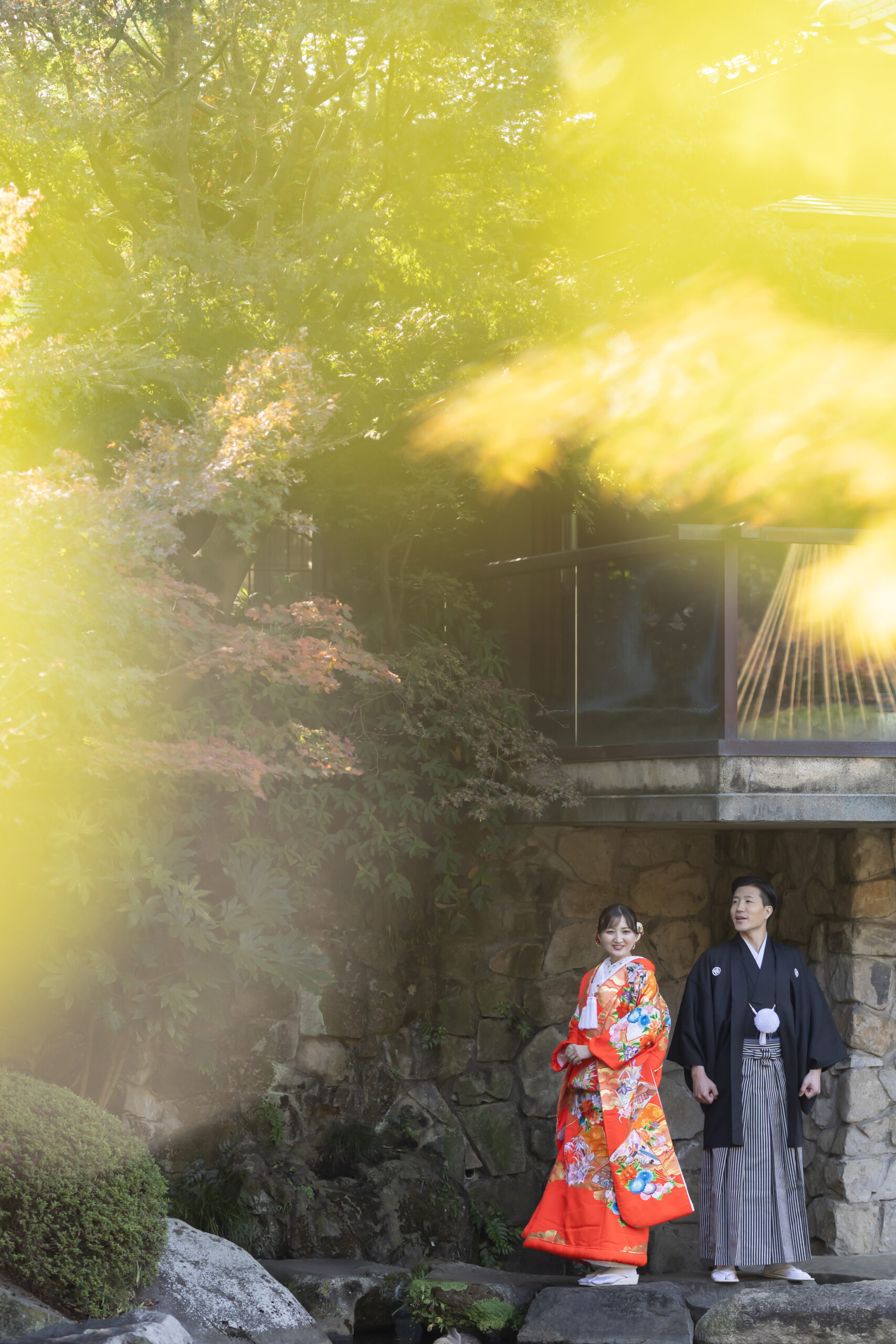 新郎様の紋付袴、新婦様の色打掛といった格式ある和装は、日本庭園の景色と美しく調和し、家族の節目を写真として丁寧に残すことができます。