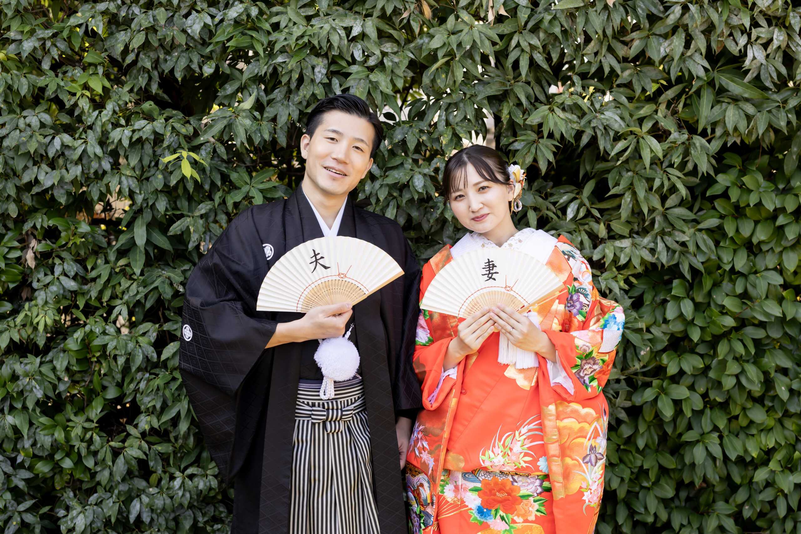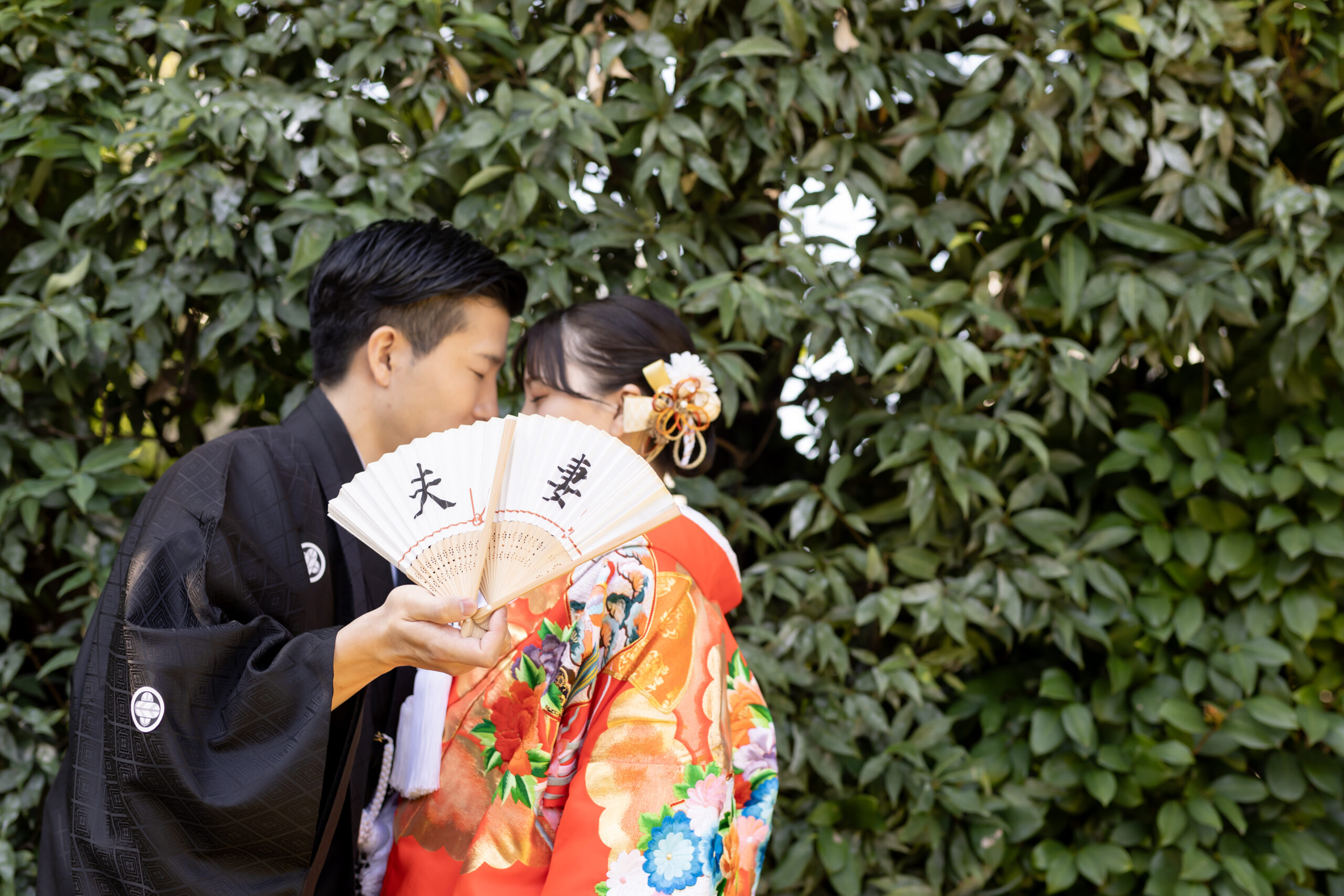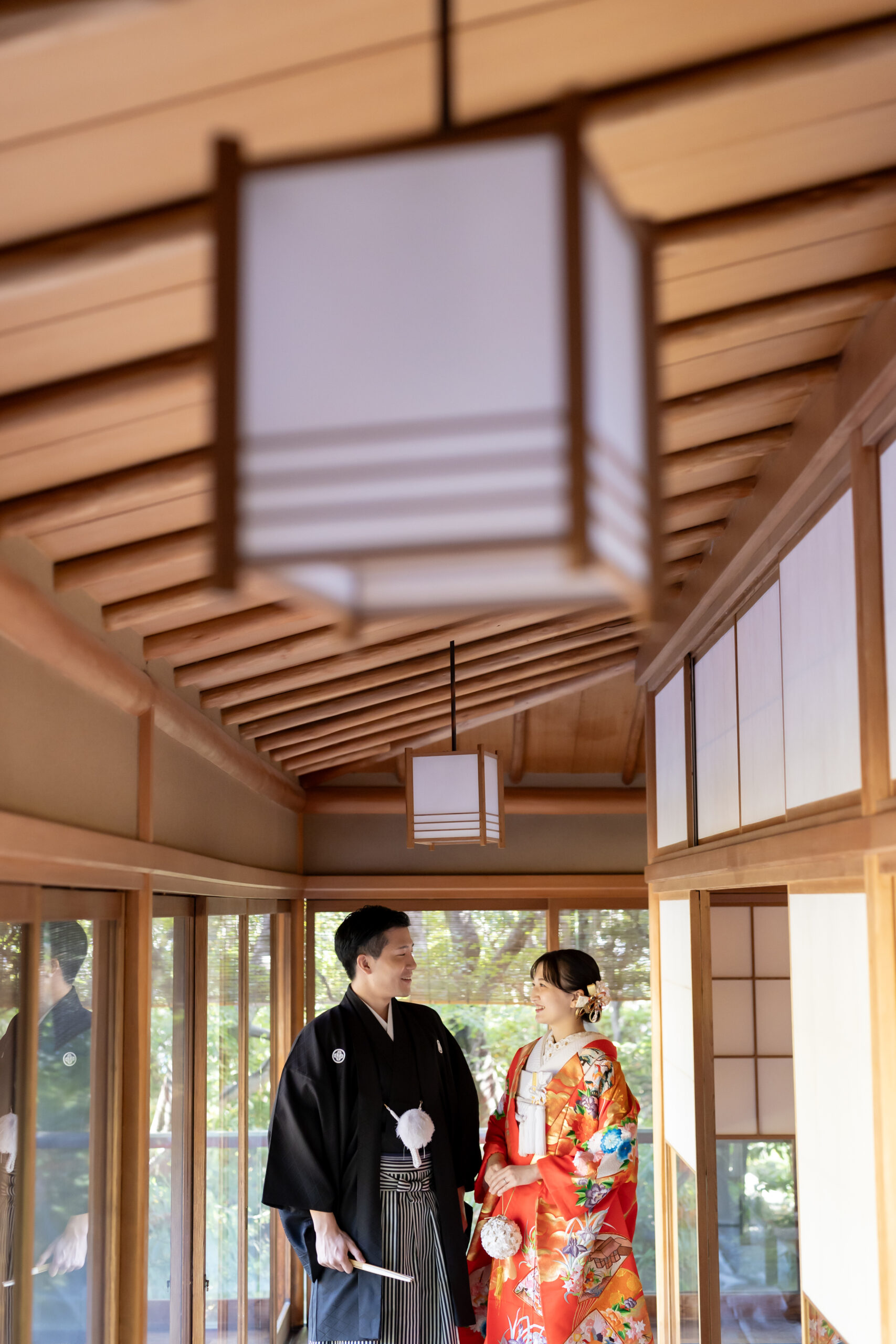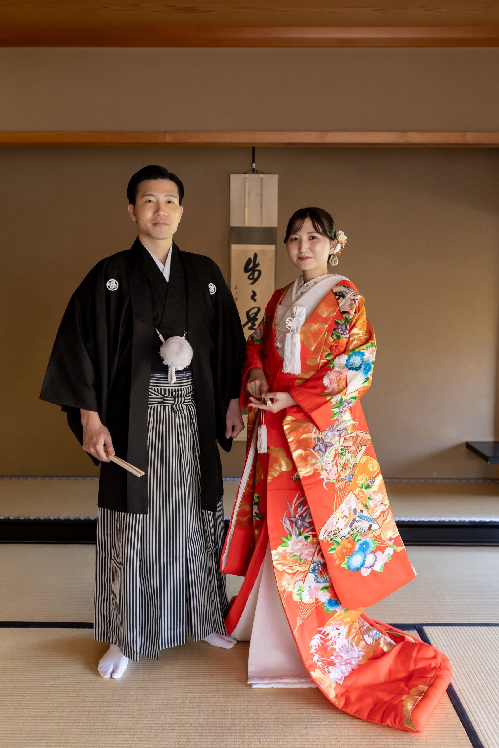 新郎様の紋付袴、新婦様の色打掛といった格式ある和装は、日本庭園の景色と美しく調和し、家族の節目を写真として丁寧に残すことができます。