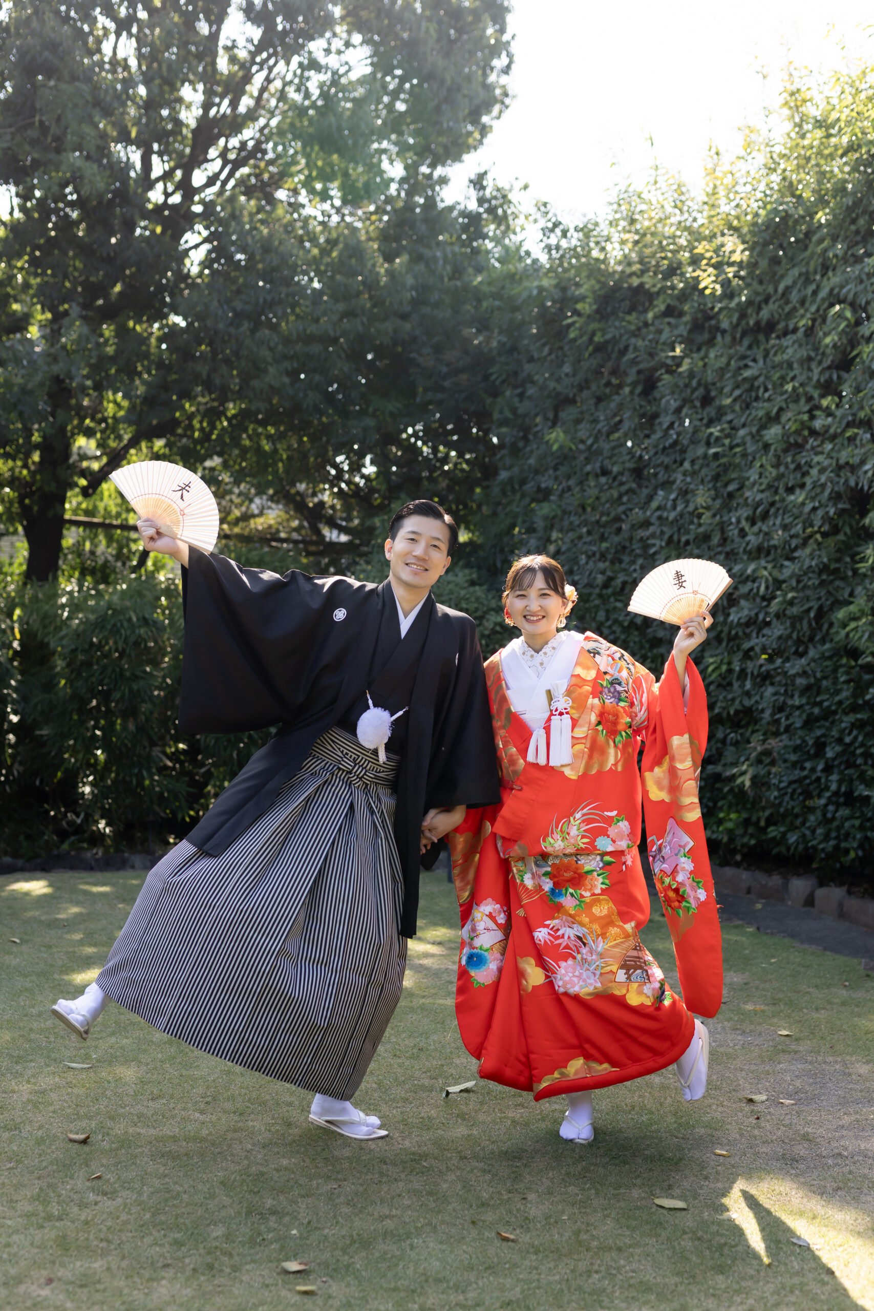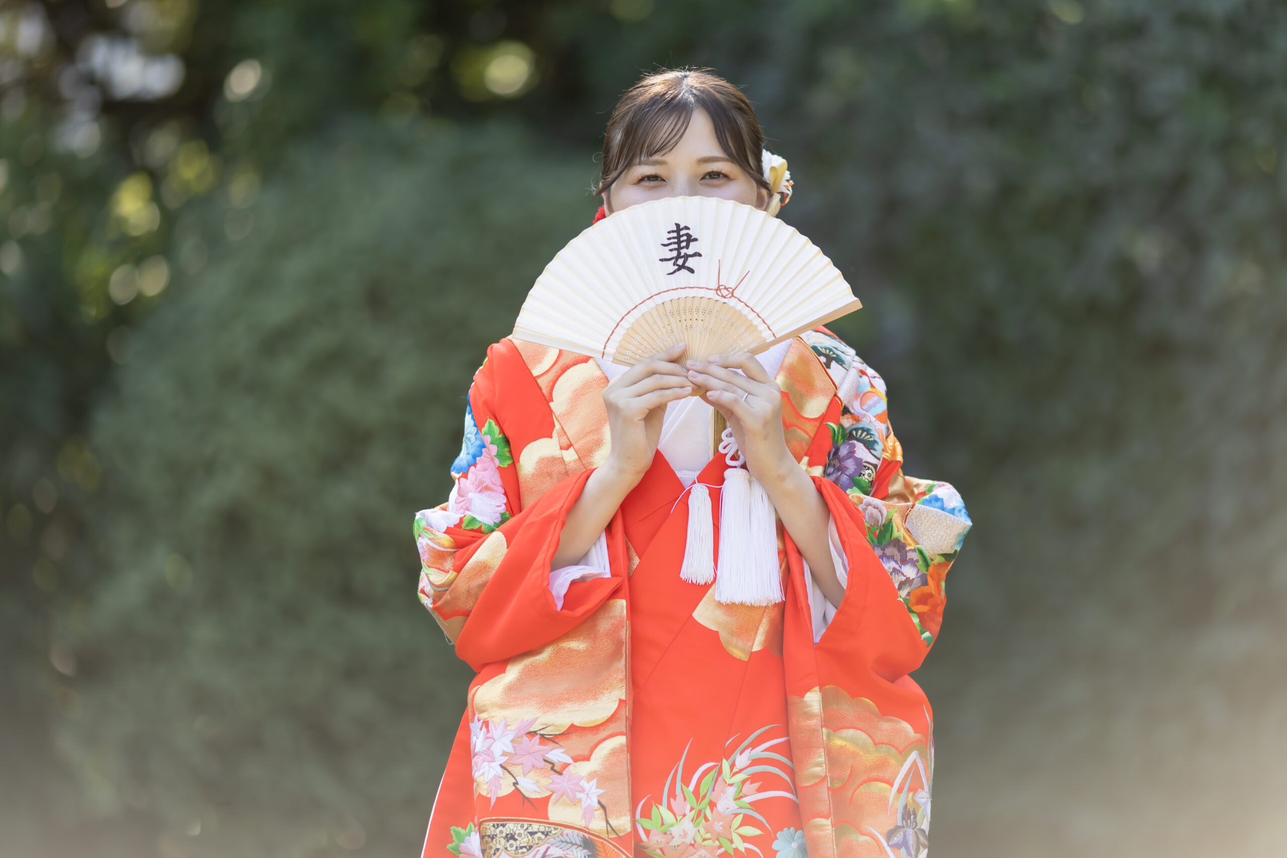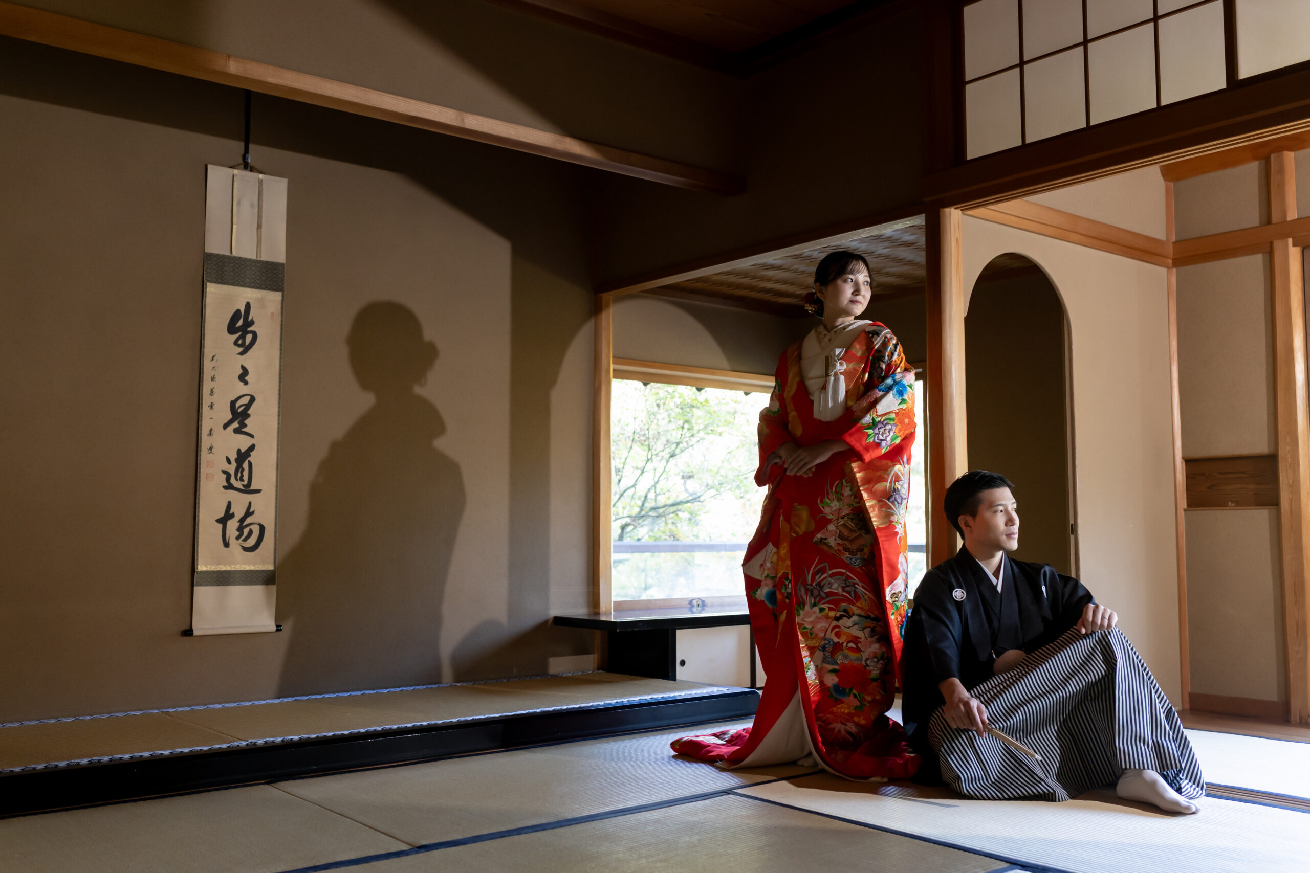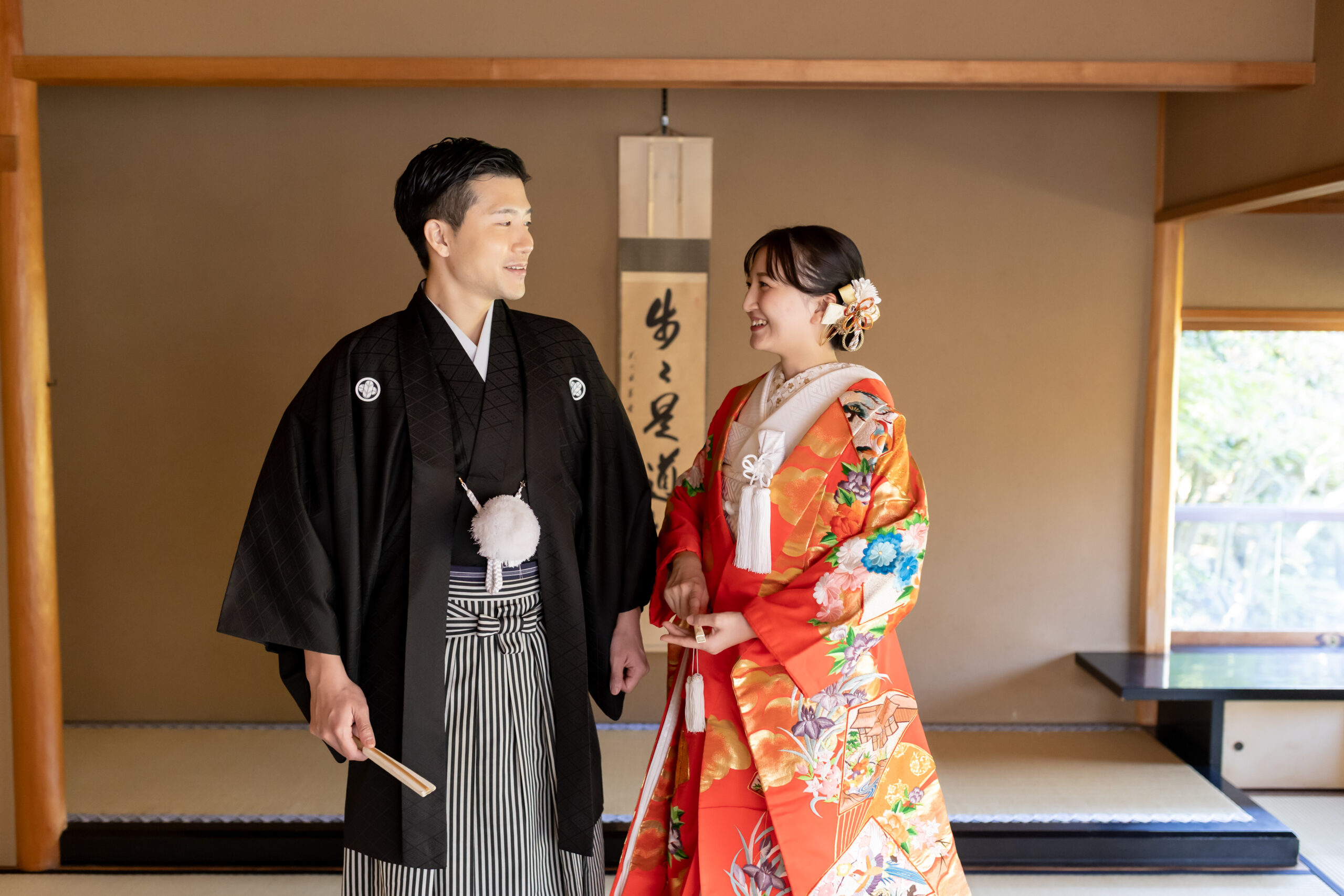 新郎様の紋付袴、新婦様の色打掛といった格式ある和装は、日本庭園の景色と美しく調和し、家族の節目を写真として丁寧に残すことができます。