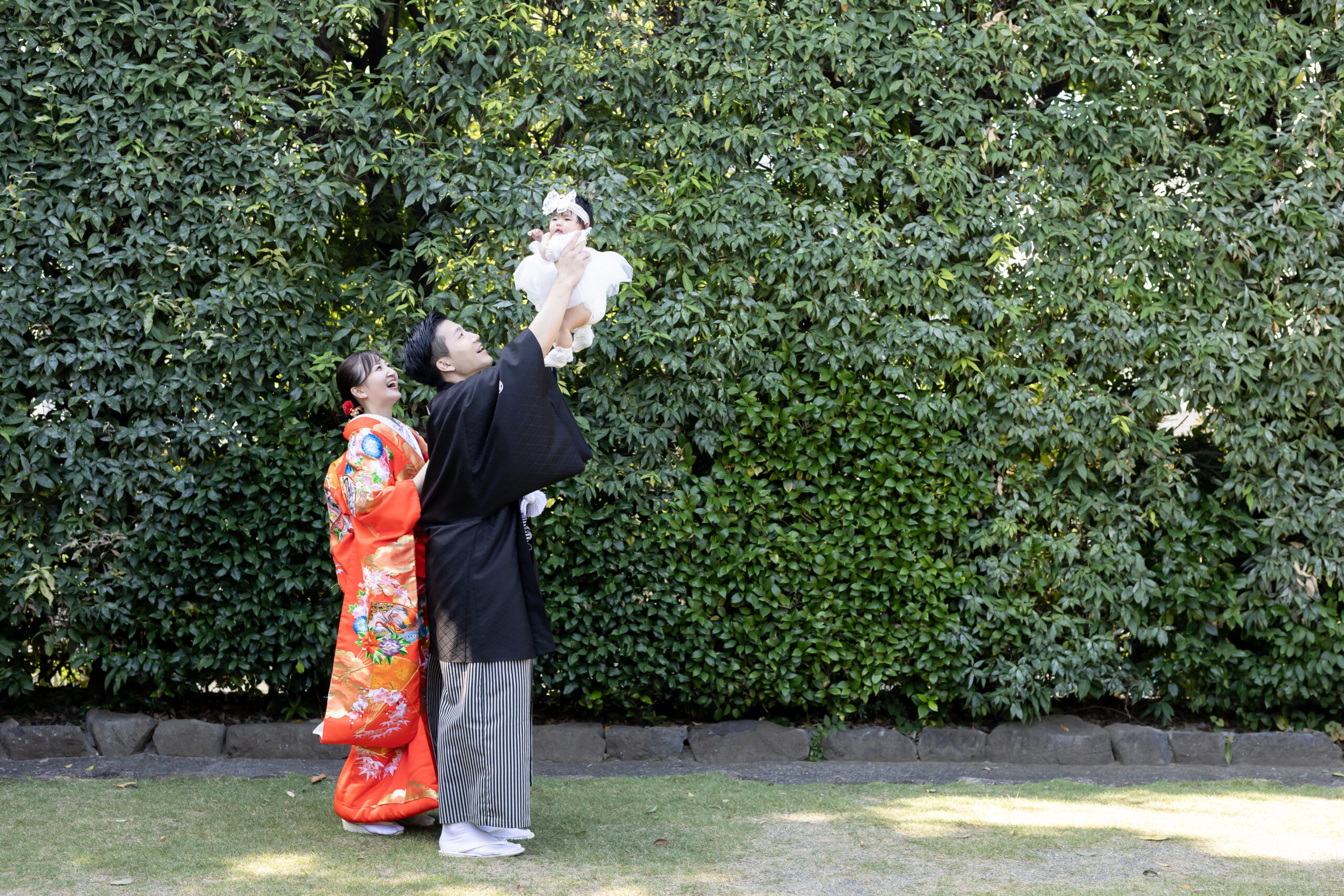 ご家族の大切な節目となるお写真を残すお手伝いができましたこと、心より御礼申し上げます。紋付袴と色打掛の和装姿が、目白庭園の落ち着いた景色にとてもよく映え、そこにお子様の愛らしい表情が加わることで