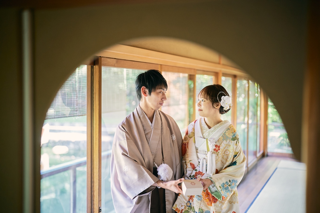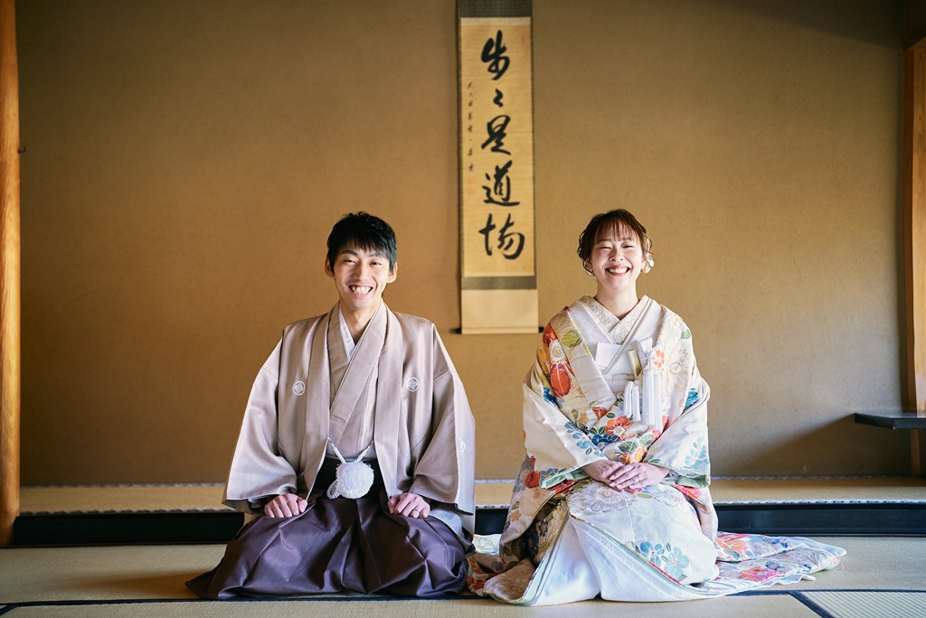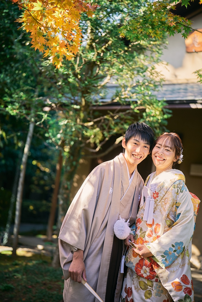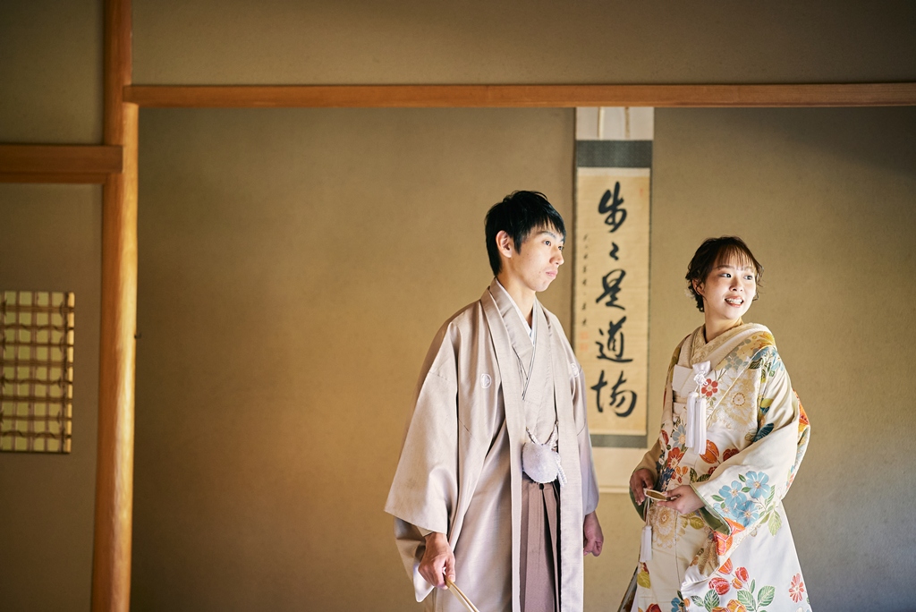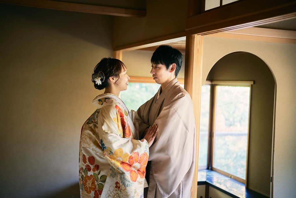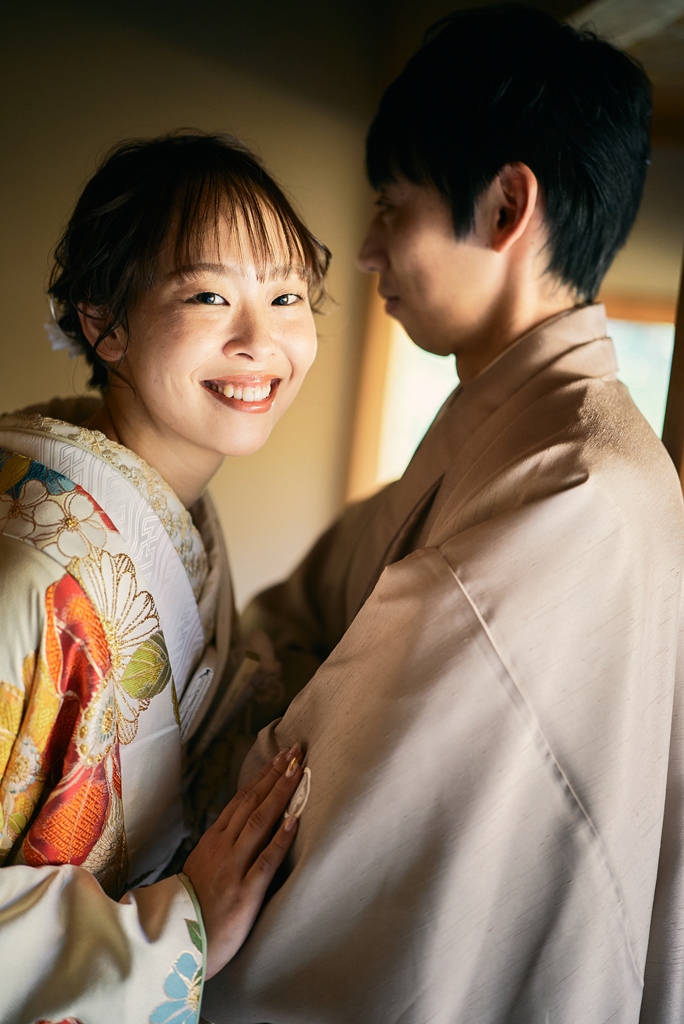 優しい色味の和装姿でウェディング撮影